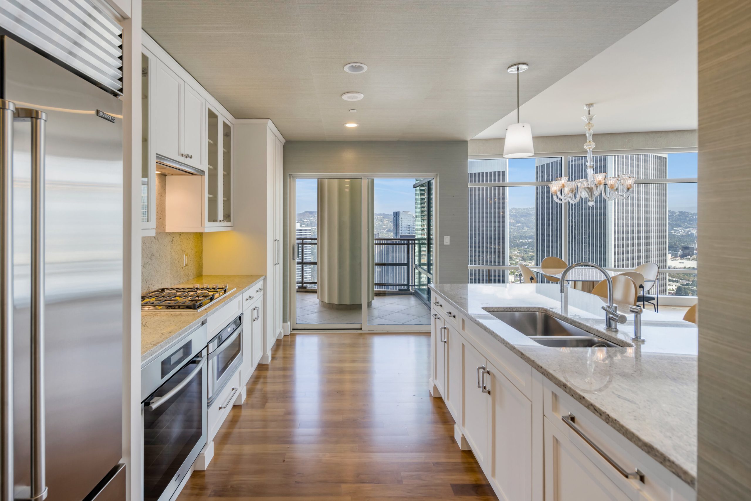 Featuring this stunning 2-bedroom, 3-bath residence at The Century, welcomed by a private double-door entry and showcasing sweeping city-to-mountain vistas through floor-to-ceiling windows. An expansive private terrace seamlessly extends the living spaces outdoors, ideal for entertaining or a quiet retreat. The open-concept design features a sophisticated living room with fireplace, elegant dining area, and a functional kitchen appointed with professional-grade appliances, marble island countertops with an island, and custom cabinetry. A chic powder room is adorned with designer wallpaper, while a bonus space with custom built-ins offers versatility as an office. The primary suite boasts terrace access, a spa-inspired bath with marble finishes, and generous walk-in closets. A spacious laundry room enhances convenience. Renowned architect Robert A.M. Stern designed The Century, one of the West Coast's most prestigious full-service communities, set on 4 acres of landscaped gardens with private pathways, outdoor dining rooms, a wine cellar, screening room, fitness center, resort-style pool with spa and cabanas, valet service, 24-hour guarded gate, and concierge. Minutes from Beverly Hills and the Westside, The Century offers an unmatched lifestyle of elegance and effortless living.