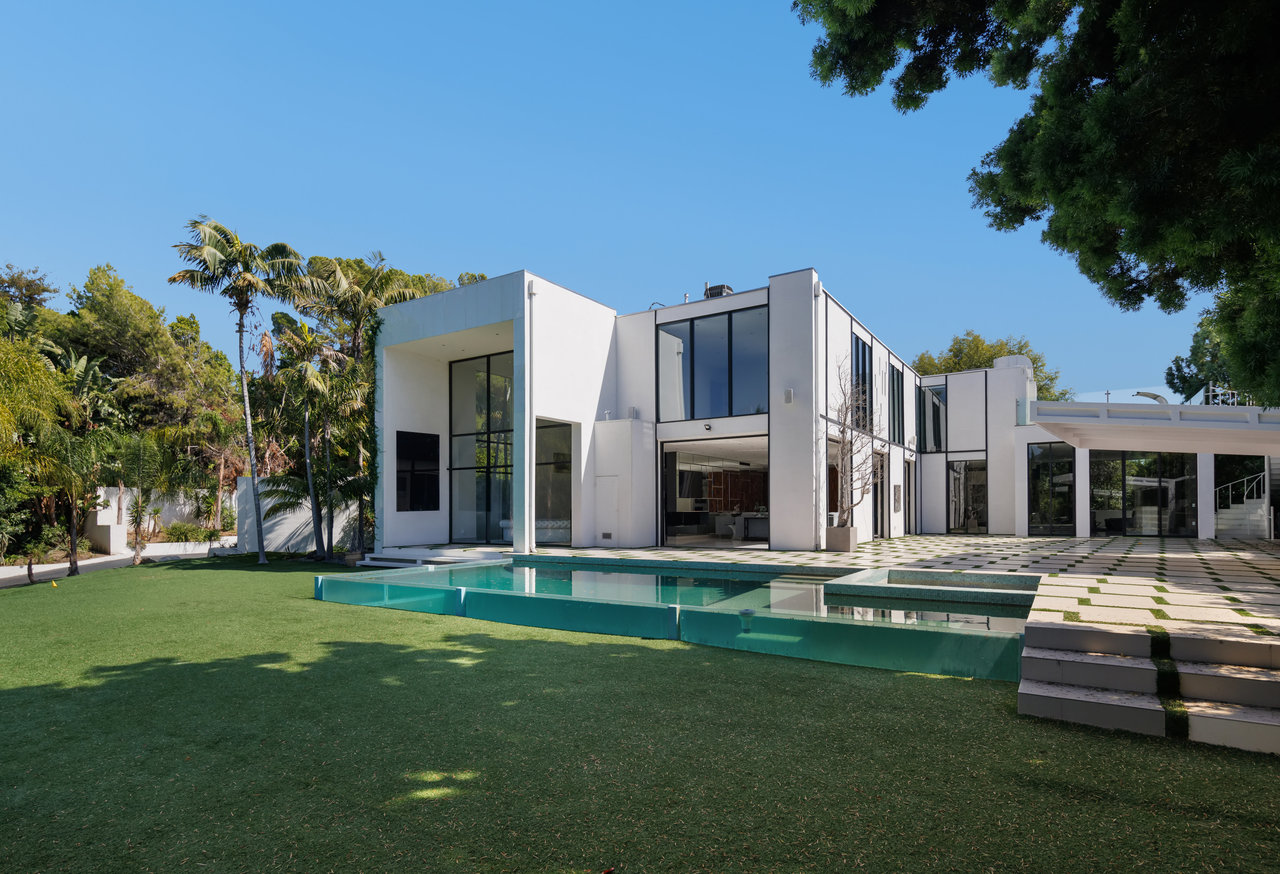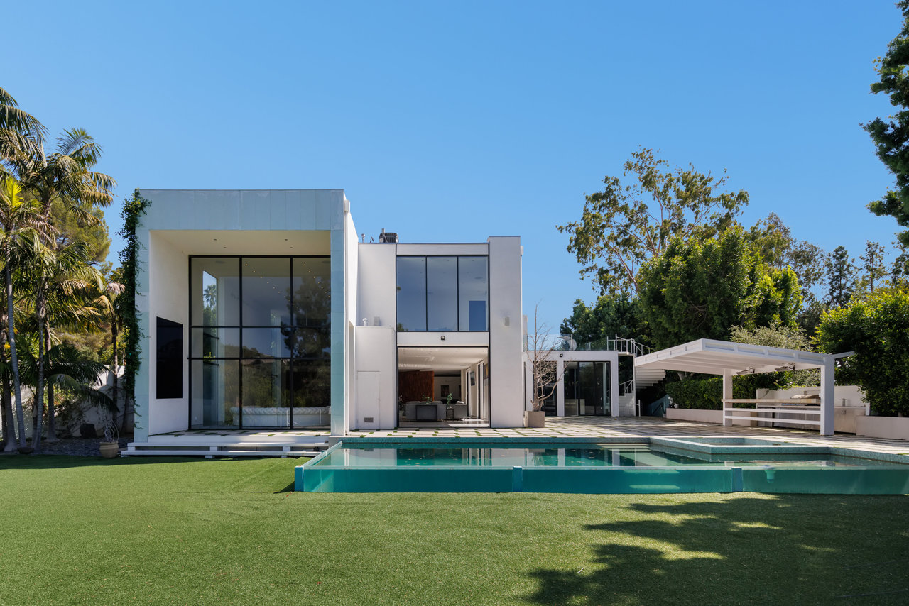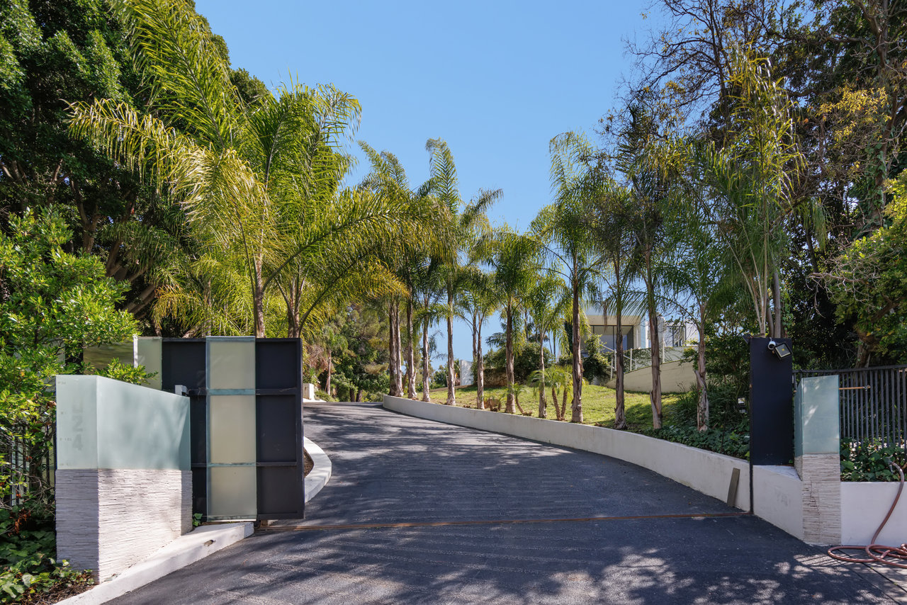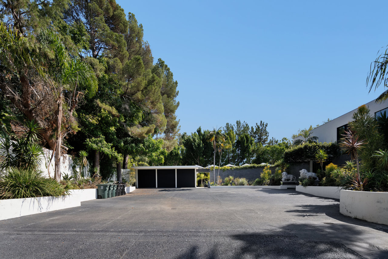 Nestled on an exclusive street in Beverly Hills, this magnificent estate commands attention as you approach it via a winding, private and gated drive. Mere moments from the bustling heart of Sunset Blvd., it combines the convenience of Beverly Hills with the serene seclusion of a gated compound. Crafted by the renowned architect, William S. Beckett, this contemporary masterpiece has been graced by cultural icons and industry titans throughout its storied history. Following an extensive restoration in 2012, the property now stands as a haven for entertainers. The interior boasts grandeur with its soaring ceilings, floor-to-ceiling glass windows, and exquisite walls adorned with wood, stone, and pristine white porcelain tile. A Crestron smart home system, complete with built-in speakers throughout, enhances the living experience. The expansive gourmet chef's kitchen, accompanied by a separate prep kitchen, game room, wine cellar, and state-of-the-art home theater, ensures that every desire is catered to. The primary suite indulges with two colossal walk-in closets, a private deck featuring a jacuzzi, and sweeping vistas of Beverly Hills. The outdoor oasis encompasses a generous tiled patio, a tranquil Zen garden, a poolside pavilion, a built-in bar and grill, and a stunning glass-walled pool and spa, all set on just under an acre of perfectly flat land. Replete with opulent finishes, this trophy estate represents the pinnacle of luxury real estate.