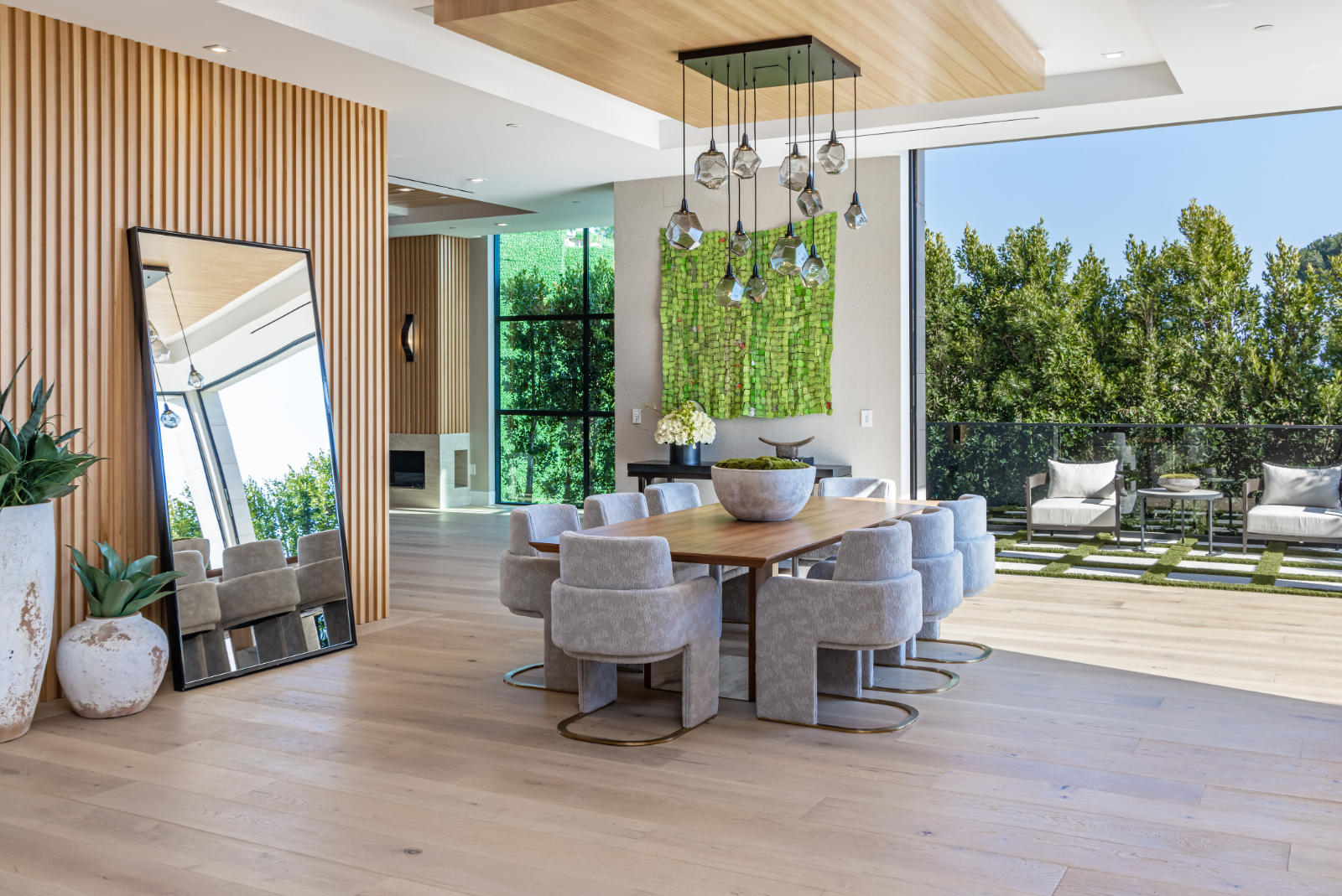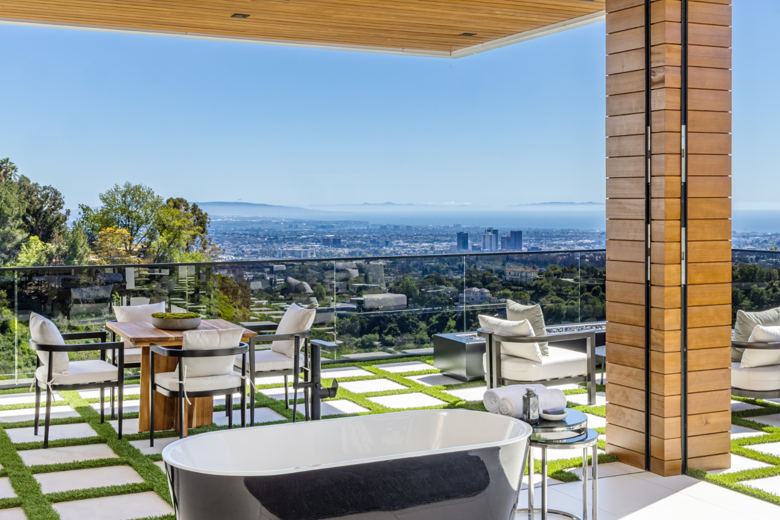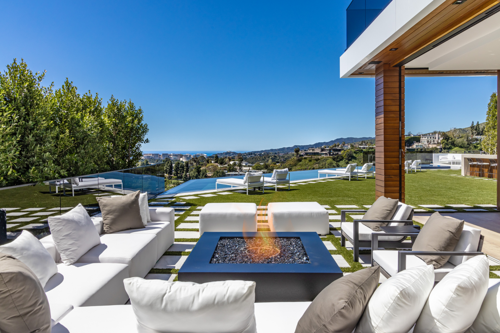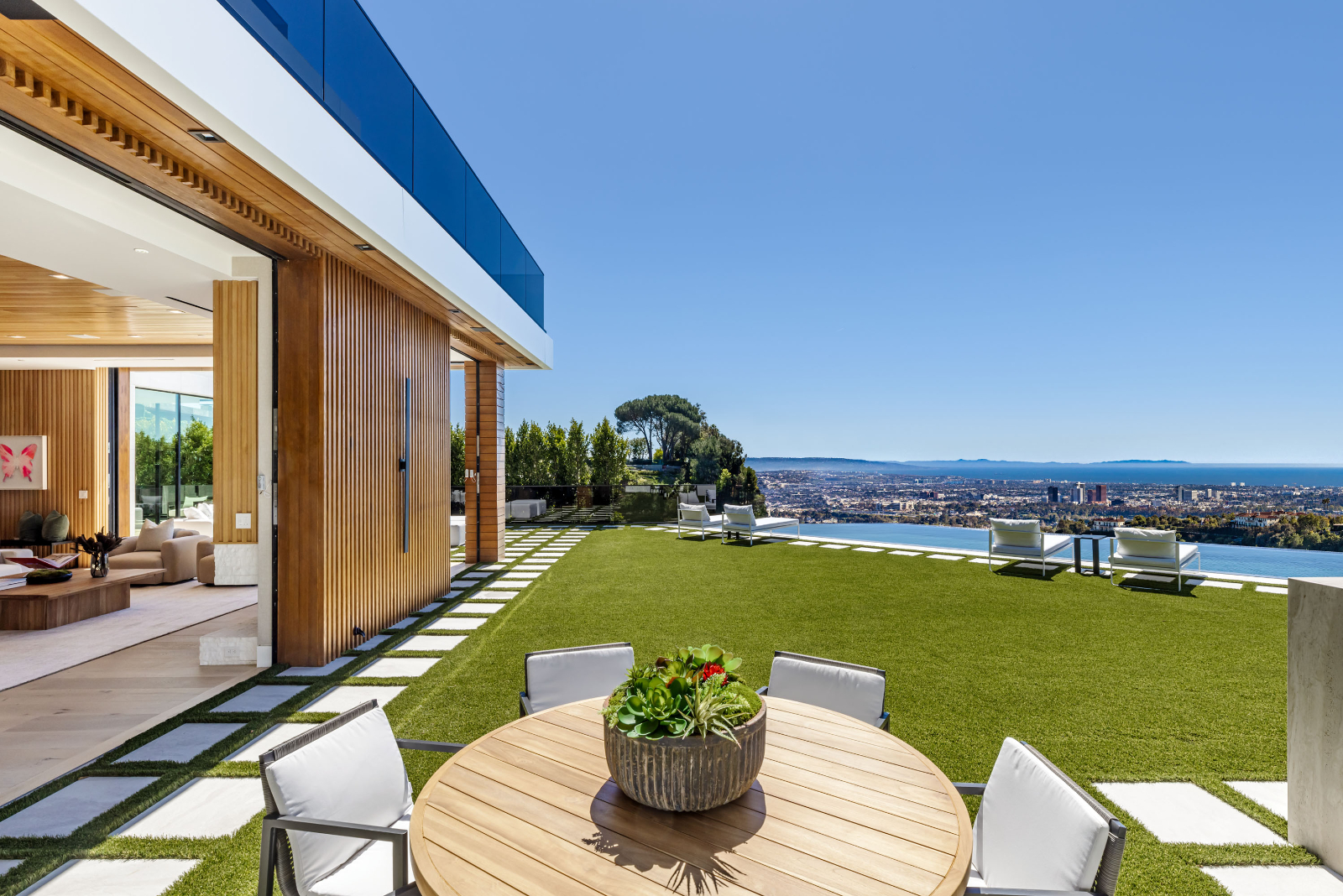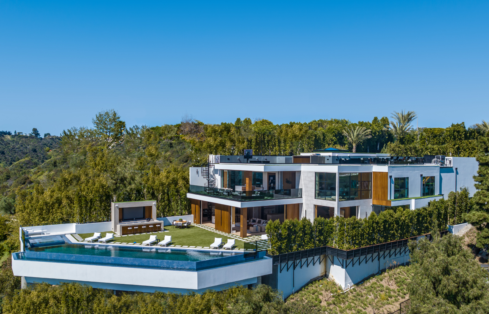 string(3422) "Presenting the resplendent and unmissable Bel Air Escape, a newly completed 2023 masterpiece imagined and constructed by award-winning designer/developer Ramtin Ray Nosrati. With flawless execution and superior design, this immaculate residence of stylish appeal provides a fantastic refuge in one of the most prestigious and coveted locales with spectacular ocean views from every room. Enter through sleek oversize privacy gates and descend a long, estate-like driveway to discover a clean and warm contemporary frame unified in harmony with lush landscaping and rich, organic gardens. Upon arrival, guests are greeted by soothing water features and a reflecting pool alongside a vertical living plant wall. Inside, the home's foyer is a celebration of life and nature, as a cylindrical awe-inspiring living moss wall is illuminated by natural light via a16-foot circular skylight overhead. Down the spiral staircase, open living spaces are positioned with quintessential indoor/outdoor lifestyle in mind. Walls of glass frame spellbinding vistas, and the finest materials converge to form an environment of optimal comfort and luxury. An elegant dining room flows effortlessly into the massive great room with picturesque stone fireplace and oversize wine room with tasting area that is as functional as it is beautiful. A showpiece of the public entertaining spaces, an immaculate travertine-clad bar rivals even the poshest speakeasy. Nearby, the family room is centered by an additional fireplace with fine wood detail, flanked by giant pops of blue sky, ocean, cityscape, and Getty. The custom culinary center is a gourmand's dream, with state-of-the-art appliances, adjacent chef's prep area with restaurant-grade walk-in refrigerator, striking finishes, oversize island, and artistic geometric cutouts for displaying art pieces and chic decor. The show-stopping gym will impress the most devout fitness enthusiast, and the home cinema affords ample room for visitors to stretch, recline, and relax while screening films. Impressive woodwork is repeated in the primary suite with its fireplace and wraparound deck with fire pit and sweeping views. The decadent spa-inspired bath has an oversize rainwater shower dressed in dazzling book matched stone slabs, a zen soaking tub, and sizable dual-sink vanity. A jaw-dropping double walk-in dream closet and dressing room showcases the highest in fashion and finery.Other amenities in this expansive open floorplan include high ceilings throughout, resort-style tropical landscaping, parking for six cars, smart-home system, and automated security. Outside, experience supreme entertainment atop multiple lounging patios and viewing decks. Enjoy a rooftop lounge complete with bar, large tv, built-in barbecue, and putting green. There is also an outdoor dining room, outdoor kitchen with bar plus huge flat-screen tv for your outdoor entertainment, grassy play areas, spa, and a massive 80-foot zero-edge infinity-edge pool looking out to incredible city and ocean vistas that truly must be seen to be believed. Apart from all of this, flat usable land is available and perfect for adding a sports court, pickleball court or tennis court. This remarkable property promises enduring amusement and endless leisure, secluded from the city yet located just moments to Beverly Hills, the famed Sunset Strip, and the very best of the Westside. Welcome to the extraordinary."
