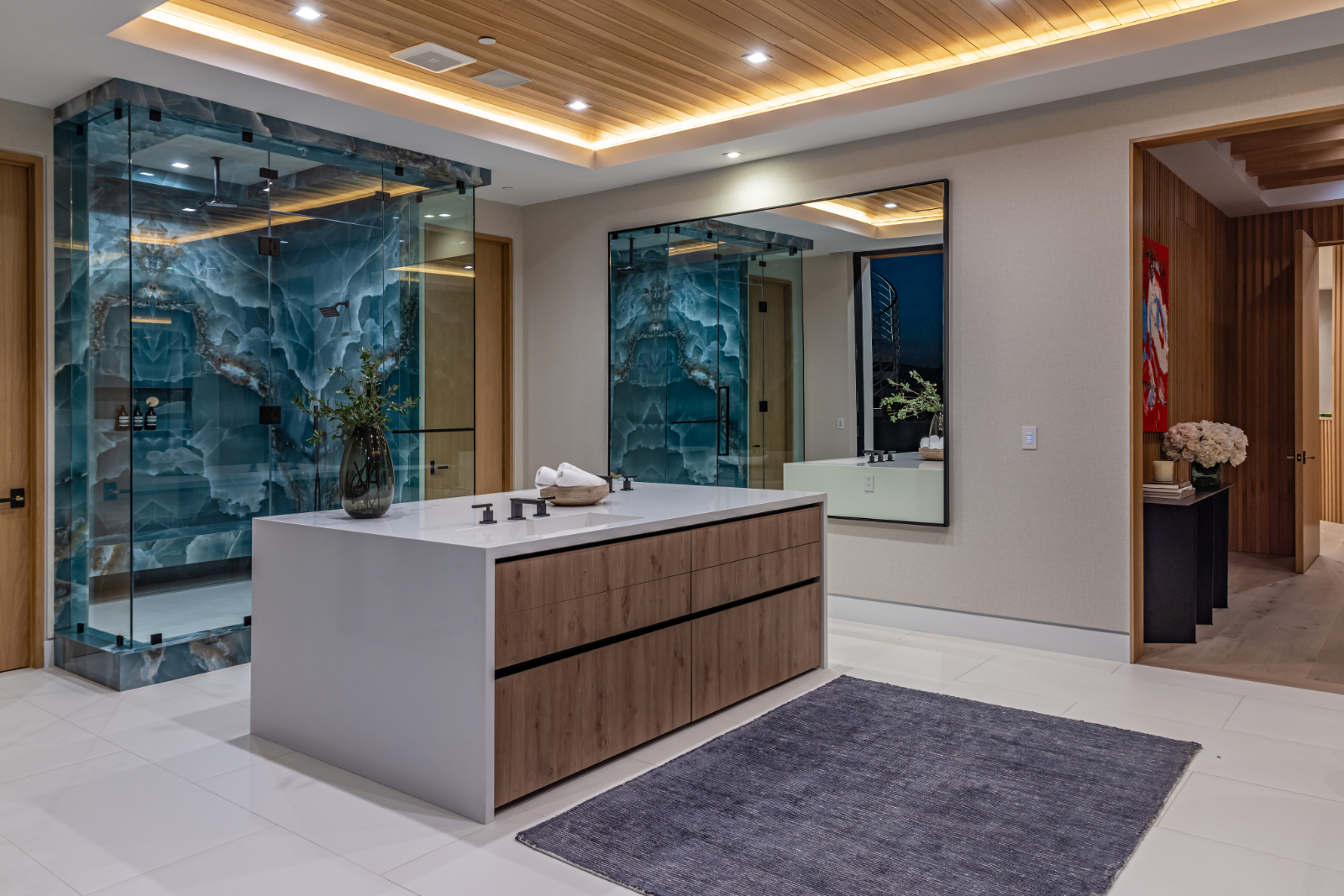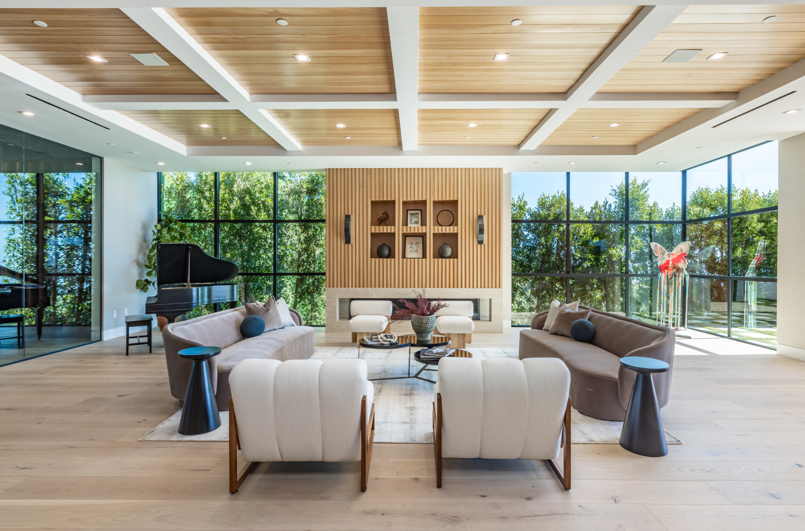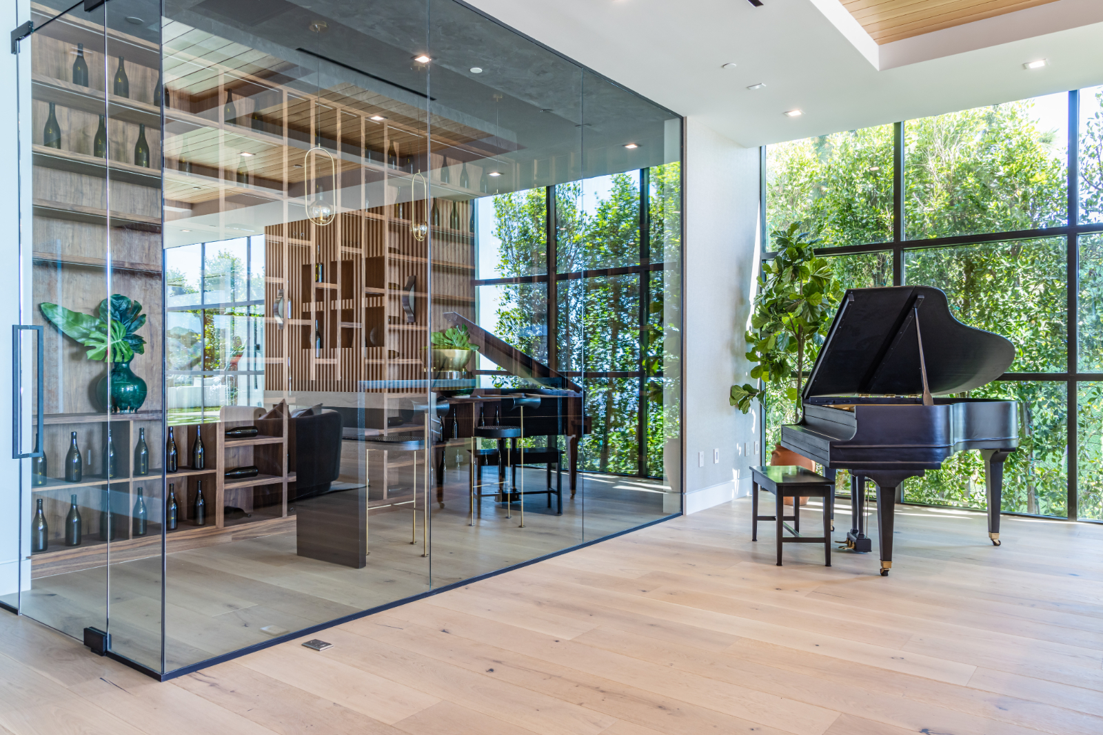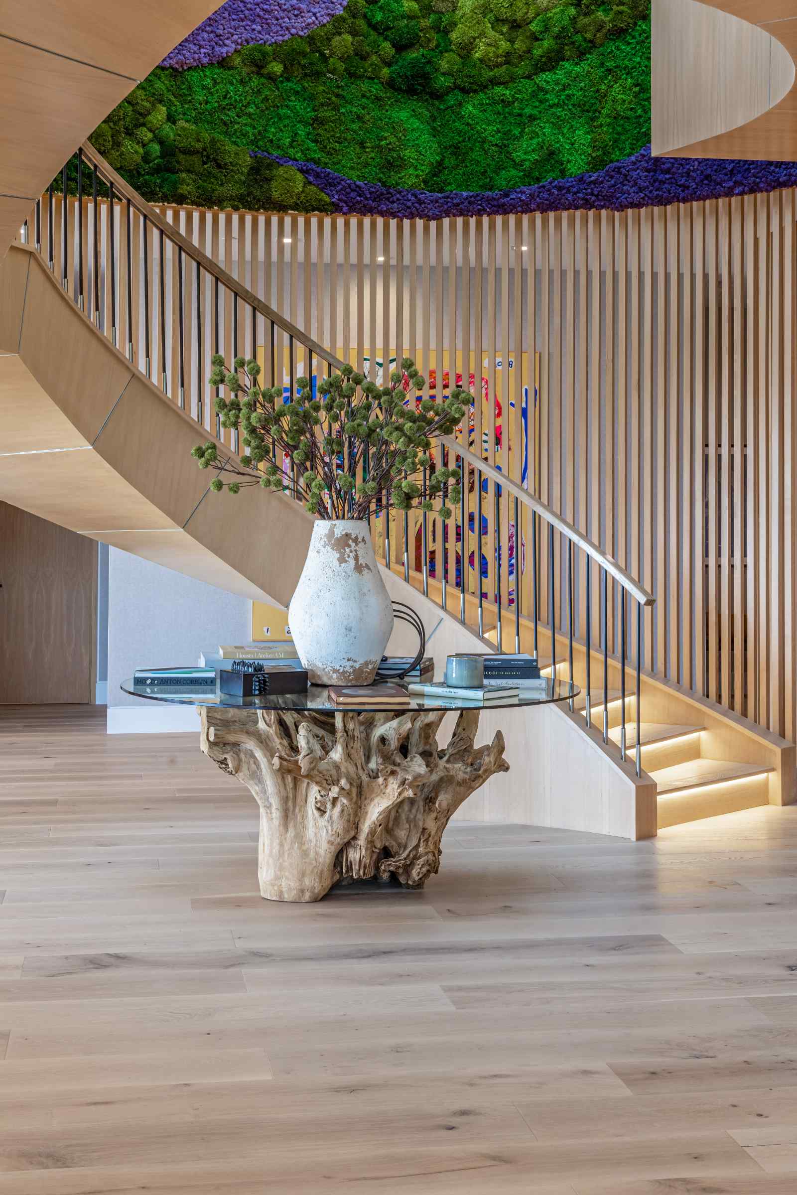 Presenting the resplendent and unmissable Bel Air Escape, a newly completed 2023 masterpiece imagined and constructed by award-winning designer/developer Ramtin Ray Nosrati. With flawless execution and superior design, this immaculate residence of stylish appeal provides a fantastic refuge in one of the most prestigious and coveted locales with spectacular ocean views from every room. Enter through sleek oversize privacy gates and descend a long, estate-like driveway to discover a clean and warm contemporary frame unified in harmony with lush landscaping and rich, organic gardens. Upon arrival, guests are greeted by soothing water features and a reflecting pool alongside a vertical living plant wall. Inside, the home's foyer is a celebration of life and nature, as a cylindrical awe-inspiring living moss wall is illuminated by natural light via a16-foot circular skylight overhead. Down the spiral staircase, open living spaces are positioned with quintessential indoor/outdoor lifestyle in mind. Walls of glass frame spellbinding vistas, and the finest materials converge to form an environment of optimal comfort and luxury. An elegant dining room flows effortlessly into the massive great room with picturesque stone fireplace and oversize wine room with tasting area that is as functional as it is beautiful. A showpiece of the public entertaining spaces, an immaculate travertine-clad bar rivals even the poshest speakeasy. Nearby, the family room is centered by an additional fireplace with fine wood detail, flanked by giant pops of blue sky, ocean, cityscape, and Getty. The custom culinary center is a gourmand's dream, with state-of-the-art appliances, adjacent chef's prep area with restaurant-grade walk-in refrigerator, striking finishes, oversize island, and artistic geometric cutouts for displaying art pieces and chic decor. The show-stopping gym will impress the most devout fitness enthusiast, and the home cinema affords ample room for visitors to stretch, recline, and relax while screening films. Impressive woodwork is repeated in the primary suite with its fireplace and wraparound deck with fire pit and sweeping views. The decadent spa-inspired bath has an oversize rainwater shower dressed in dazzling book matched stone slabs, a zen soaking tub, and sizable dual-sink vanity. A jaw-dropping double walk-in dream closet and dressing room showcases the highest in fashion and finery.Other amenities in this expansive open floorplan include high ceilings throughout, resort-style tropical landscaping, parking for six cars, smart-home system, and automated security. Outside, experience supreme entertainment atop multiple lounging patios and viewing decks. Enjoy a rooftop lounge complete with bar, large tv, built-in barbecue, and putting green. There is also an outdoor dining room, outdoor kitchen with bar plus huge flat-screen tv for your outdoor entertainment, grassy play areas, spa, and a massive 80-foot zero-edge infinity-edge pool looking out to incredible city and ocean vistas that truly must be seen to be believed. Apart from all of this, flat usable land is available and perfect for adding a sports court, pickleball court or tennis court. This remarkable property promises enduring amusement and endless leisure, secluded from the city yet located just moments to Beverly Hills, the famed Sunset Strip, and the very best of the Westside. Welcome to the extraordinary.