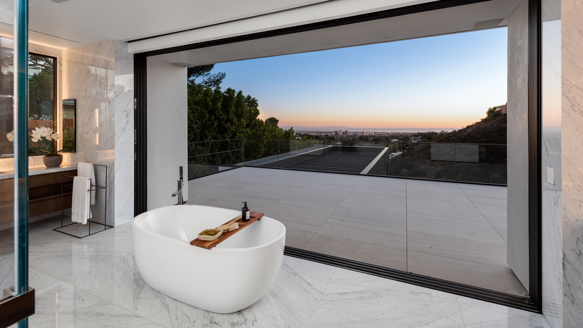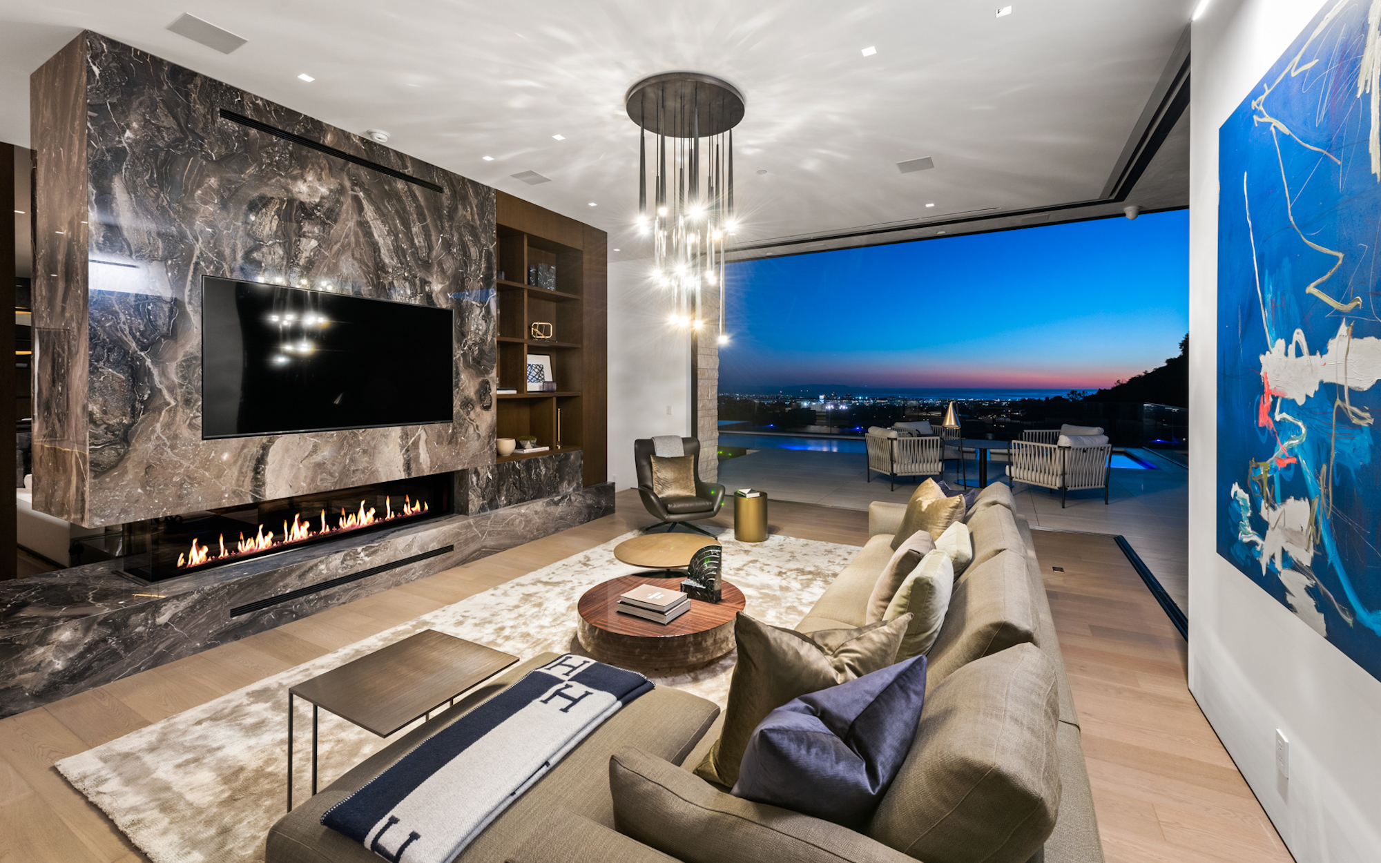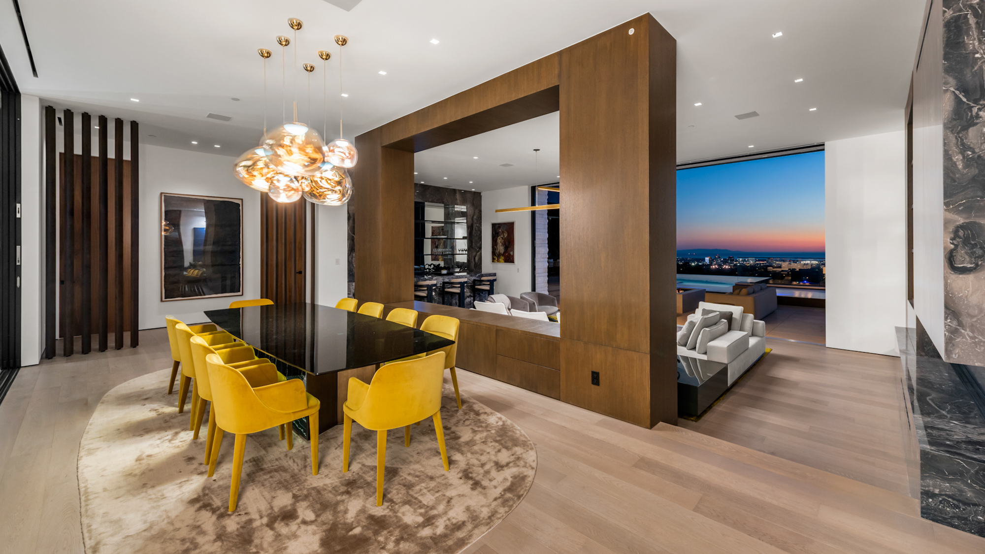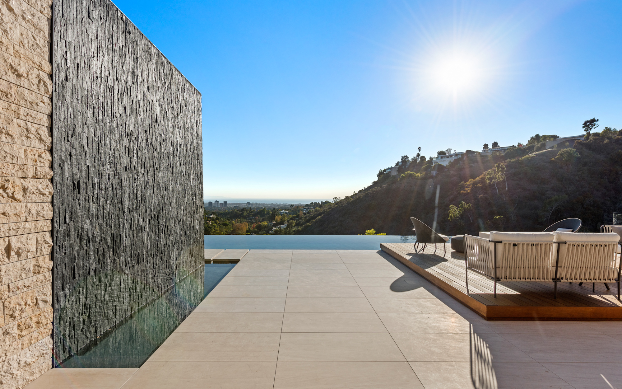 string(1095) "Situated on an ultra-private, tree-lined hillside in Bel Air, this spectacular, new estate is an entertainers paradise that captures magnificent, far-reaching city and ocean views. Envisioned by Bowery Design Group with interior design by Faye Resnick, the estate boasts 1.3 acres, 7 bedrooms, 14 bathrooms, 2 pools on different levels, amazing water features throughout such as a large indoor atrium and water wall and endless amenities for indoor-outdoor entertaining. Enjoy dual chefs kitchens, a pantry, and living/dining areas open through glass walls to lounging terraces, outdoor kitchen, custom bar, infinity-edged pool, and Jacuzzi. On the lower level, find a lounge, bar, 12-seat theater, wine room, and an indoor-outdoor gym with a steam room and sauna that leads to a 2nd, 73' pool that extends over the hillside. 7 bedroom suites include staff quarters and a stunning primary suite with 2 closets. Features include an office, oak floors, and 2 garages with parking for 5. Capturing sunrise to sunset views, enjoy the utmost privacy, minutes from the city's best shopping and dining."