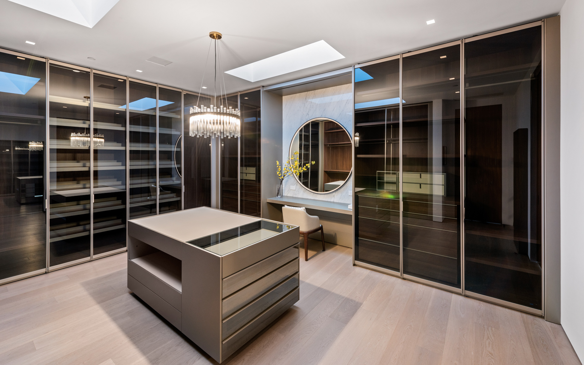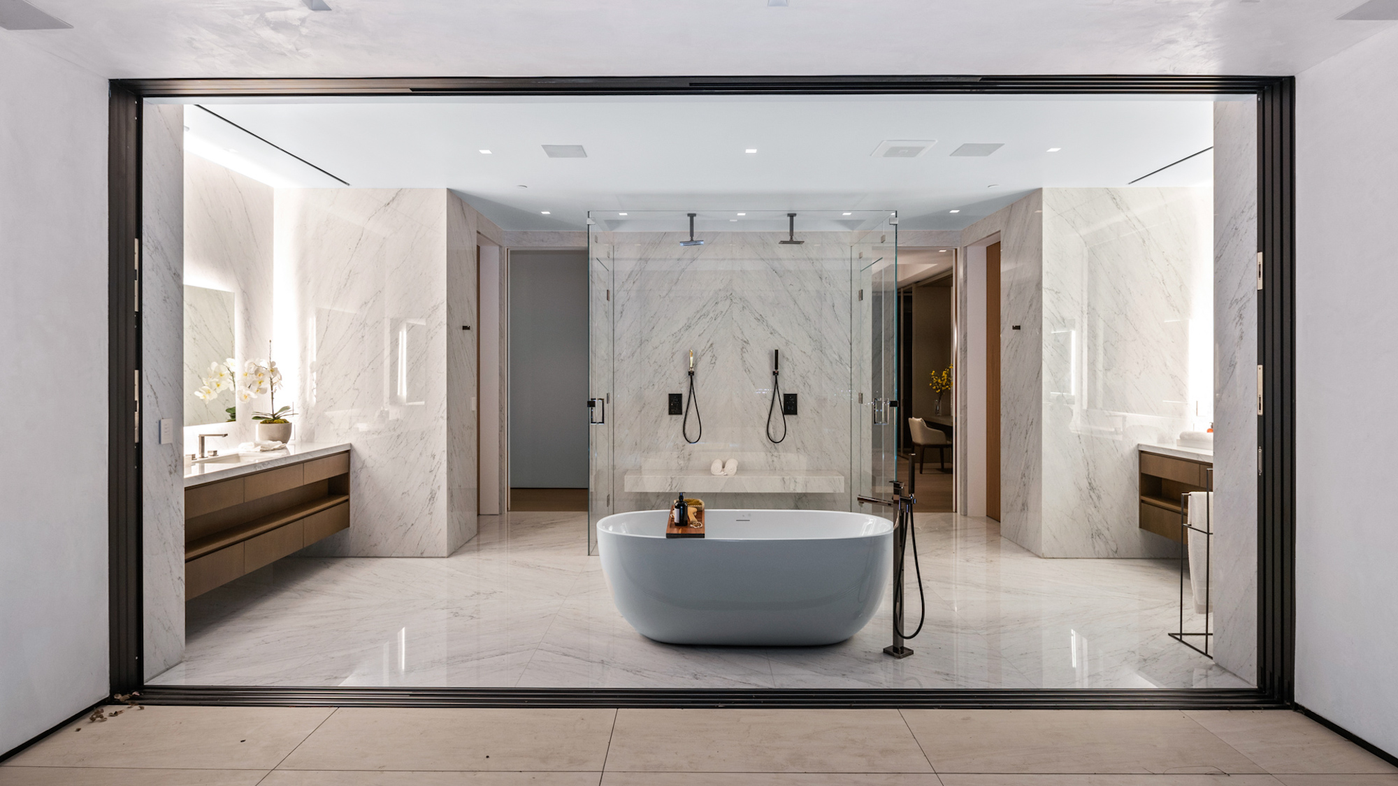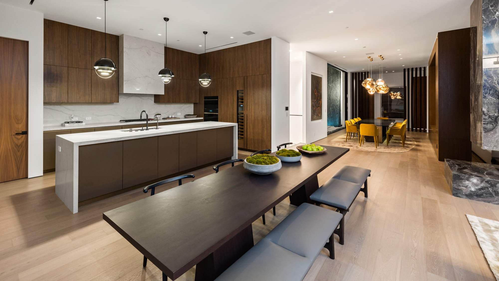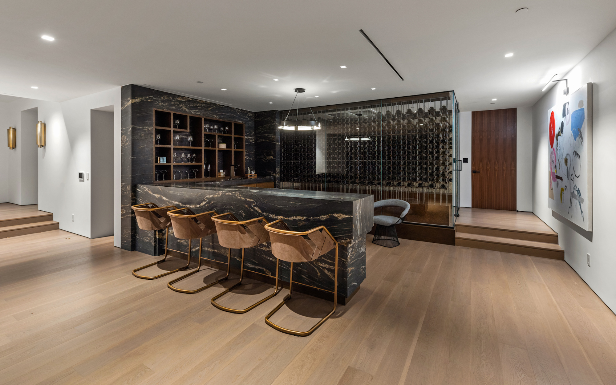 string(1095) "Situated on an ultra-private, tree-lined hillside in Bel Air, this spectacular, new estate is an entertainers paradise that captures magnificent, far-reaching city and ocean views. Envisioned by Bowery Design Group with interior design by Faye Resnick, the estate boasts 1.3 acres, 7 bedrooms, 14 bathrooms, 2 pools on different levels, amazing water features throughout such as a large indoor atrium and water wall and endless amenities for indoor-outdoor entertaining. Enjoy dual chefs kitchens, a pantry, and living/dining areas open through glass walls to lounging terraces, outdoor kitchen, custom bar, infinity-edged pool, and Jacuzzi. On the lower level, find a lounge, bar, 12-seat theater, wine room, and an indoor-outdoor gym with a steam room and sauna that leads to a 2nd, 73' pool that extends over the hillside. 7 bedroom suites include staff quarters and a stunning primary suite with 2 closets. Features include an office, oak floors, and 2 garages with parking for 5. Capturing sunrise to sunset views, enjoy the utmost privacy, minutes from the city's best shopping and dining."