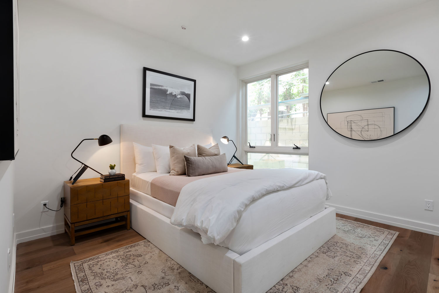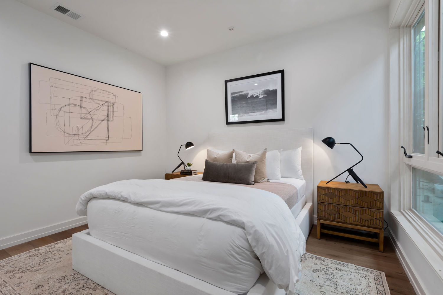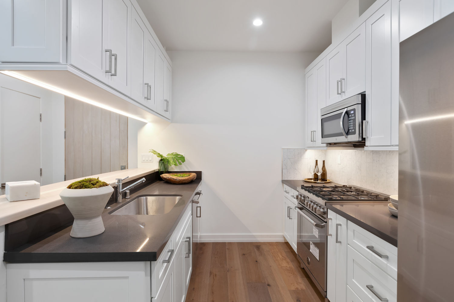 Spaulding Court offers 14 new construction townhome residences + garden flats in the Heart of West Hollywood! Comprised of 8 townhomes + 6 flats, floor plans range from 1 bed + 1 bath, 675sf to 3 bed + 3 bath, 1600sf featuring either patio or private rooftop terrace with BBQ kitchens and huge views of Runyon Canyon, Griffith Observatory, DTLA & Century City. Each residence is individually designed and thoughtfully crafted with a contemporary edge. Residences boasts state-of-the-art, yet timeless finishes to ingeniously make up Spaulding Court. This garden flat offers an open floor plan boasts 10 ft. ceilings, large tall stained wood windows and sliding doors, wide plank oak wood floors throughout, chef's kitchen w/custom shaker cabinets, Quartz slab counters & top of line appliances, private patio, private laundry room& 2 car gated parking. Spaulding Court is a must see!
