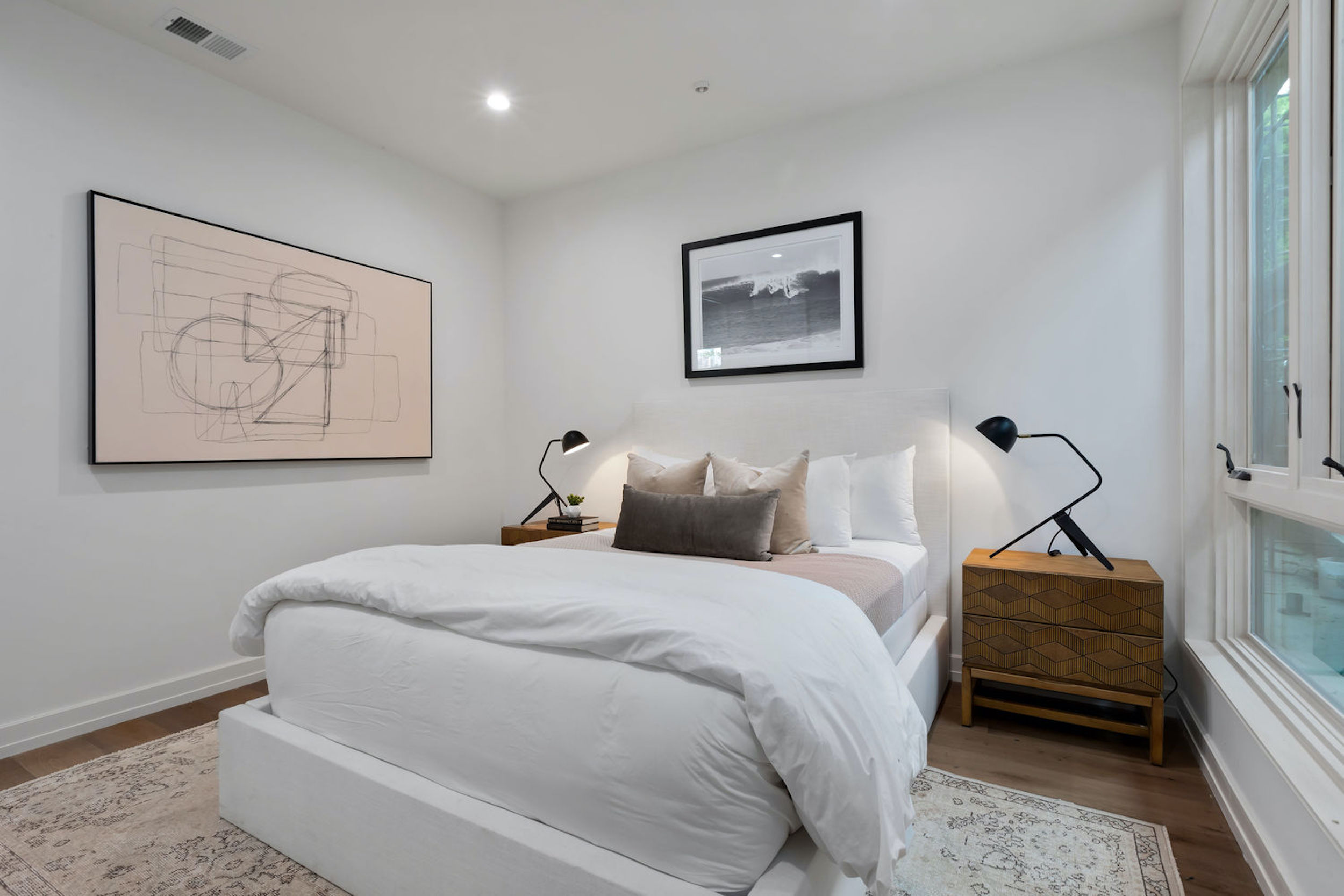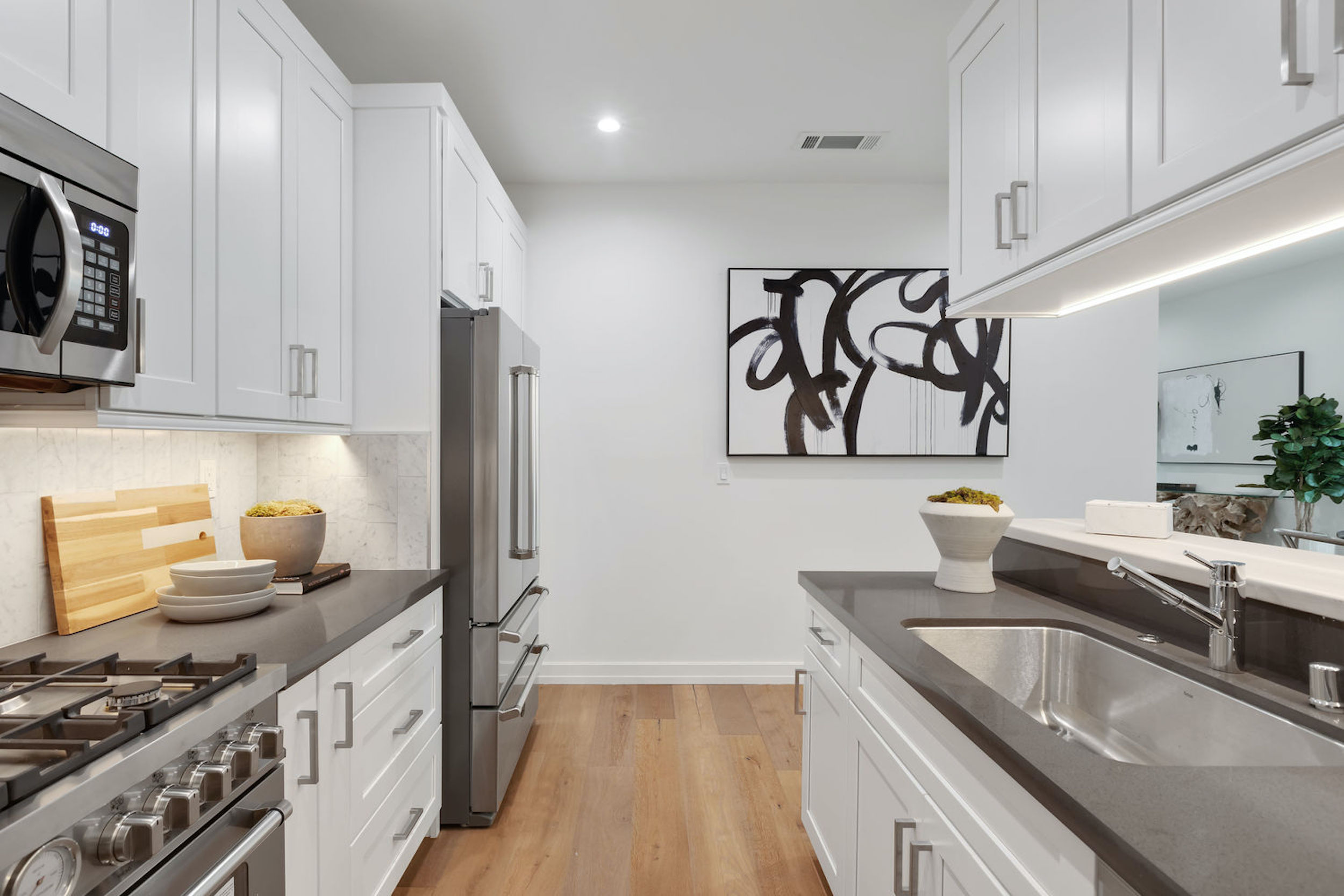Spaulding Court offers 14 new construction townhome residences + garden flats in the Heart of West Hollywood! Comprised of 8 townhomes + 6 flats, floor plans range from 1 bed + 1 bath, 675sf to 3 bed + 3 bath, 1600sf featuring either patio or private rooftop terrace with BBQ kitchens and huge views of Runyon Canyon, Griffith Observatory, DTLA & Century City. Each residence is individually designed and thoughtfully crafted with a contemporary edge. Residences boasts state-of-the-art, yet timeless finishes to ingeniously make up Spaulding Court. This garden flat offers an open floor plan boasts 10 ft. ceilings, large tall stained wood windows and sliding doors, wide plank oak wood floors throughout, chef's kitchen w/custom shaker cabinets, Quartz slab counters & top of line appliances, private patio, private laundry room & 2 car gated parking. Spaulding Court is a must see!