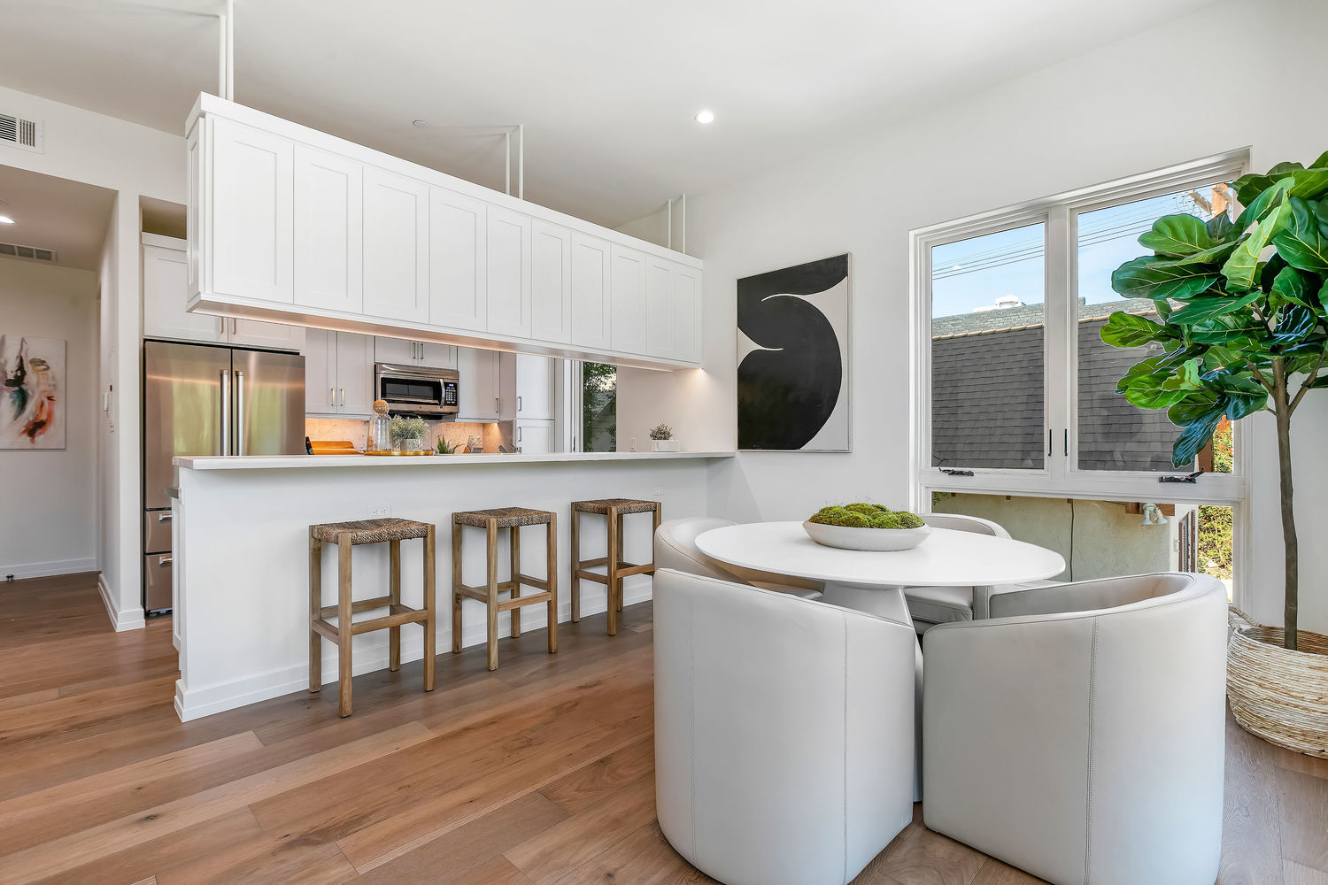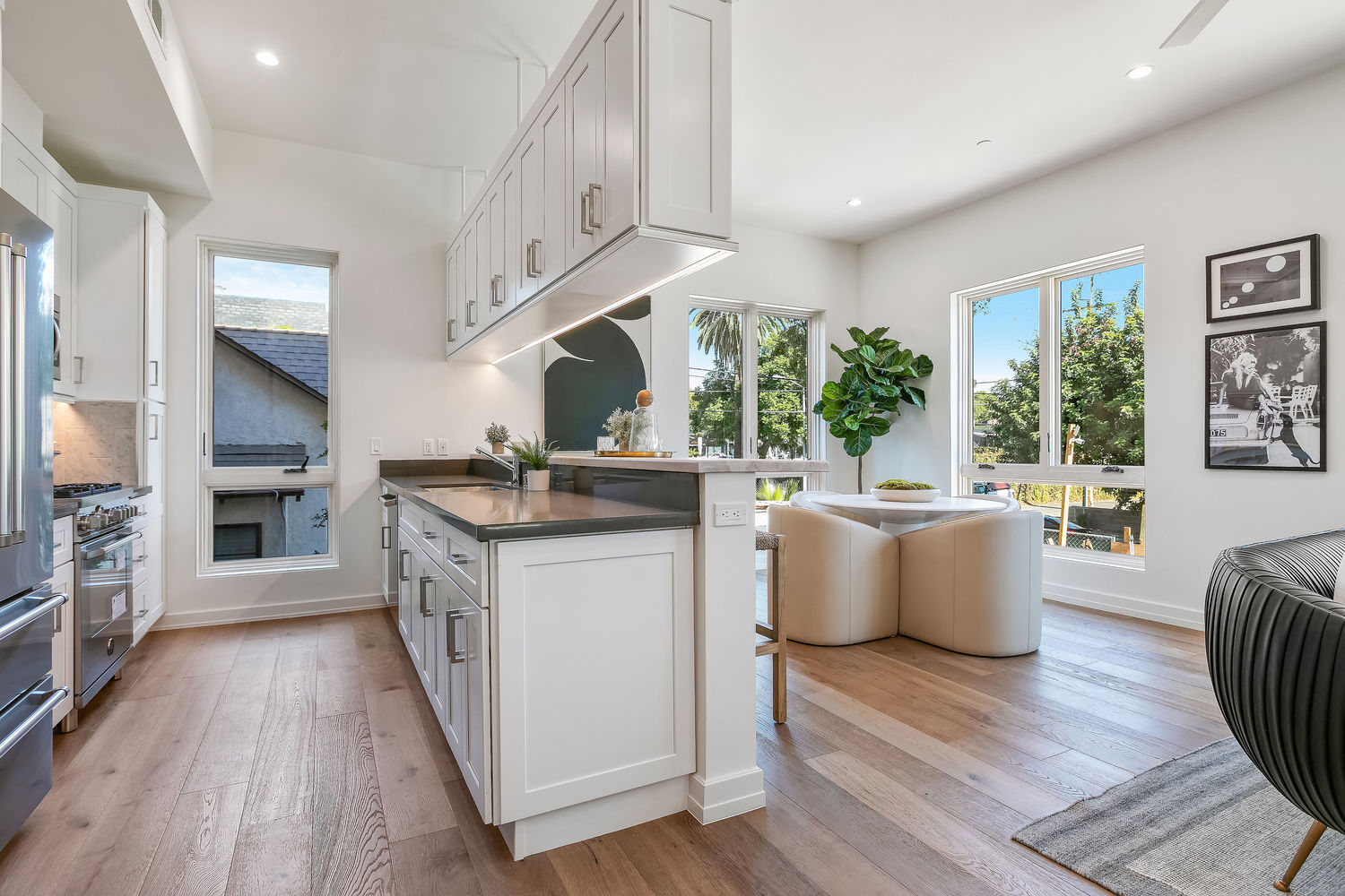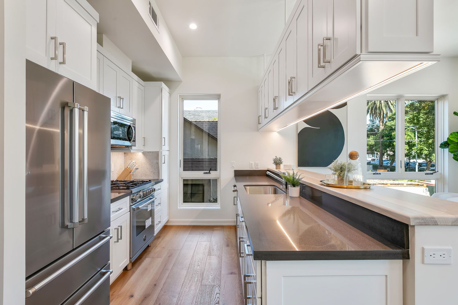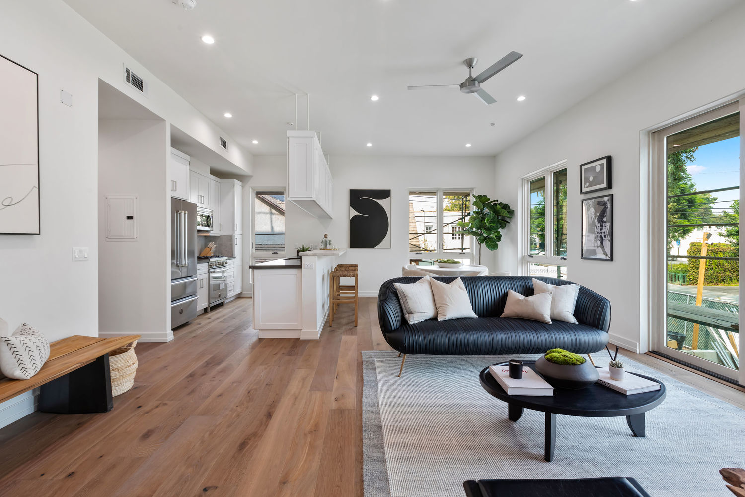 Spaulding Court offers 14 new construction townhome residences + garden flats in the Heart of West Hollywood! Comprised of 8 townhomes + 6 flats, floor plans range from 1 bed+1 bath, 675sf to 3 bed+3 bath, 1600sf featuring either patio or private rooftop terrace w/BBQ kitchens + huge views of Runyon Canyon, Griffith Observatory, DTLA & Century City. Each residence is individually designed + thoughtfully crafted w/a contemporary edge. Residences boasts state-of-the-art, yet timeless finishes. This residence features open floor plan w/10 ft ceilings w/top of the line designer finishes. Main level boasts open floor plan, private balcony, wide plank oak wood floors, chef's kitchen w/custom shaker cabinets, Quartz stone & top of line appliances + guest rm. 2 beds up. Master suite features all-stone bath, large walk in closet. Private laundry & 2 car gated parking. Private direct access oversized rooftop terrace features BBQ kitchens & incredible views! A must see!