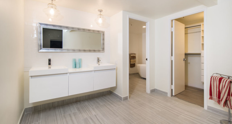 Situated in The Grand, this immaculately detailed twobedroom unit spares no expense. Upon entering you are greeted with floorto ceiling windows that bathe the entire unit in warm, natural sunlight. The open kitchen has topoftheline appliances as well as a moveable bar/table and wine rack. The open living area is perfect for entertaining. One side of the unit houses the impressive master suite with a large walkin closet as well as a refined bathroom which features a soaking tub. Opposite the open living room, a large guest bedroom equipped with it's on ensuite bathroom awaits. Other features include, but are not limited to; conveniently situated ensuite washer and dryer hookups as well as two parking spaces inside the secured garage with 24hour valet. HOA includes earthquake insurance.