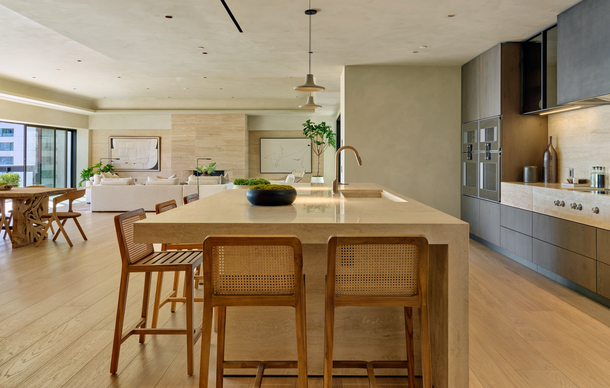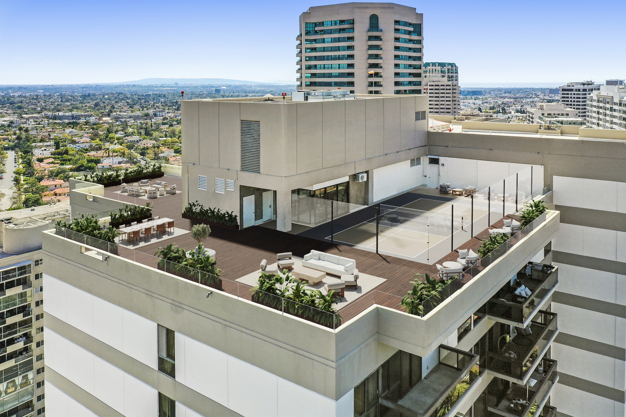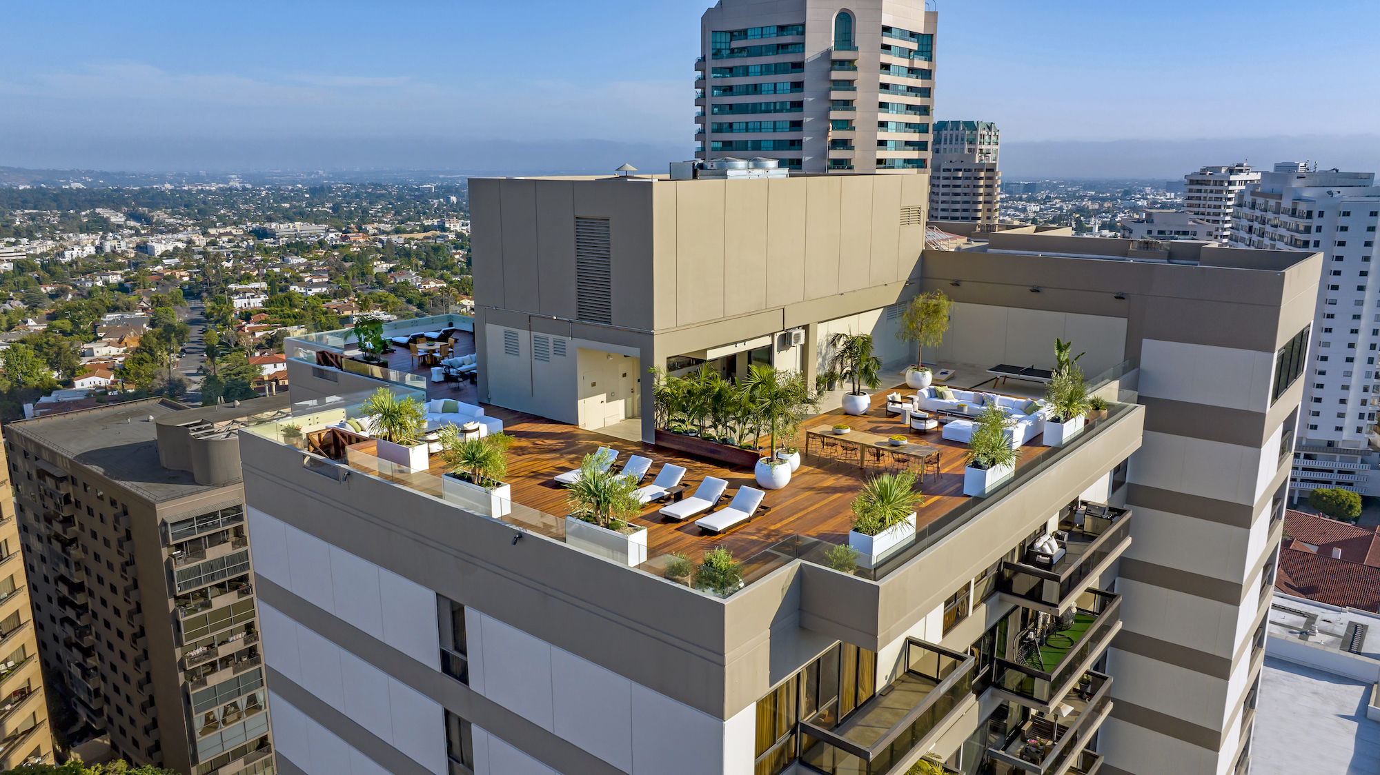 string(1835) " Welcome to the magnificent Penthouse that redefines luxury living. Spanning over 12,000 square feet of both indoor and outdoor space, this residence commands the entire top floor of the iconic Wilshire Grand and boasts one of Los Angeles' most expansive rooftop terraces, a lavish 5,540-square-foot outdoor haven. Boasting five bedrooms and six bathrooms, this residence offers an unrivaled level of privacy, only accessible through a discreet triple elevator entry and safeguarded by 24/7 security. Set high above the city and surrounded by seamless glass, the Penthouse unveils breathtaking 360-degree panoramic views, showcasing iconic landmarks like the Hollywood Sign, the vibrant Downtown city skyline, and the serene Pacific Ocean. The interiors are bathed in soft, natural light, seamlessly blending tranquil bedroom retreats with expansive entertaining spaces. The craftsmanship is impeccable, evident in details such as hand-painted Lime-washed walls, Roman Travertine stone, Mass Beverly kitchen cabinets, Gaggenau appliances, a Sonance stereo system, Articolo lighting fixtures, a Control 4 smart home system, not one but two fireplaces, and wide plank 10-inch European white oak flooring throughout. The spa-like primary bathroom features a custom sculptural stone soaking tub and brushed bronze Hansgrohe AXOR Citterio fittings. The outdoor spaces are a true spectacle with a massive rooftop terrace deck adorned with brand new Brazilian Ipe decking, an outdoor fireplace, and an elegant clubhouse with a full bar and bathroom. Enjoy unparalleled amenities including round-the-clock concierge services, valet parking, access to a top-of-the-line fitness center, a sparkling pool, and a private event room. This remarkable property includes three coveted parking spots. This Penthouse is a once in a lifetime opportunity!"