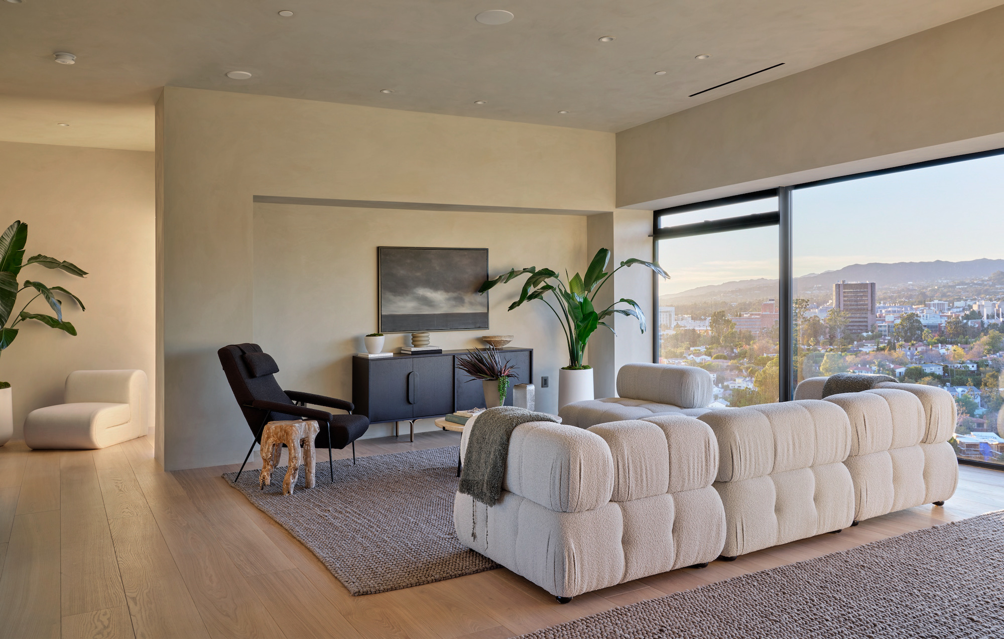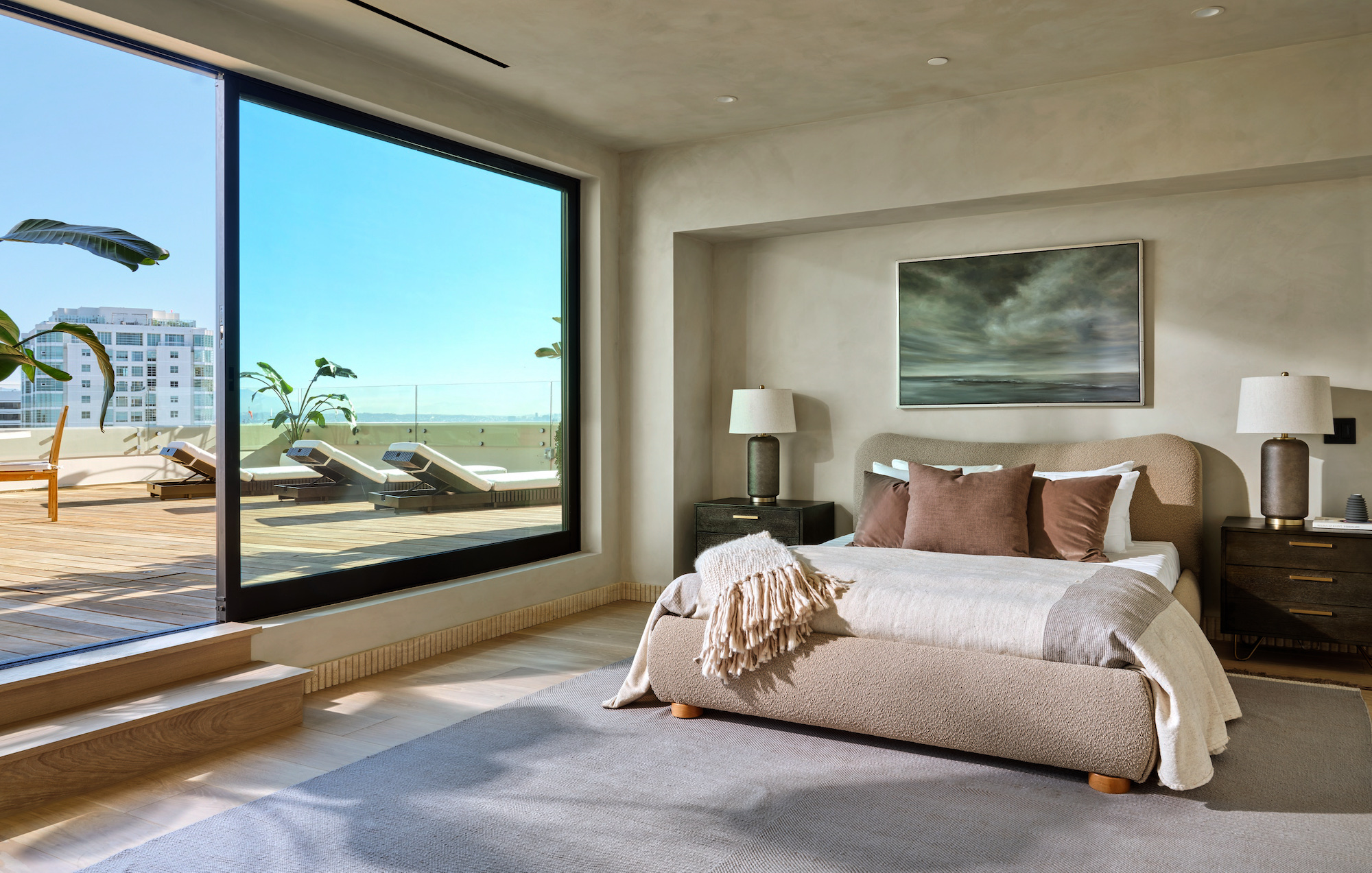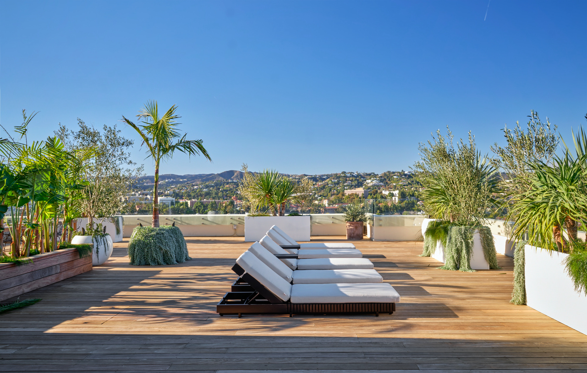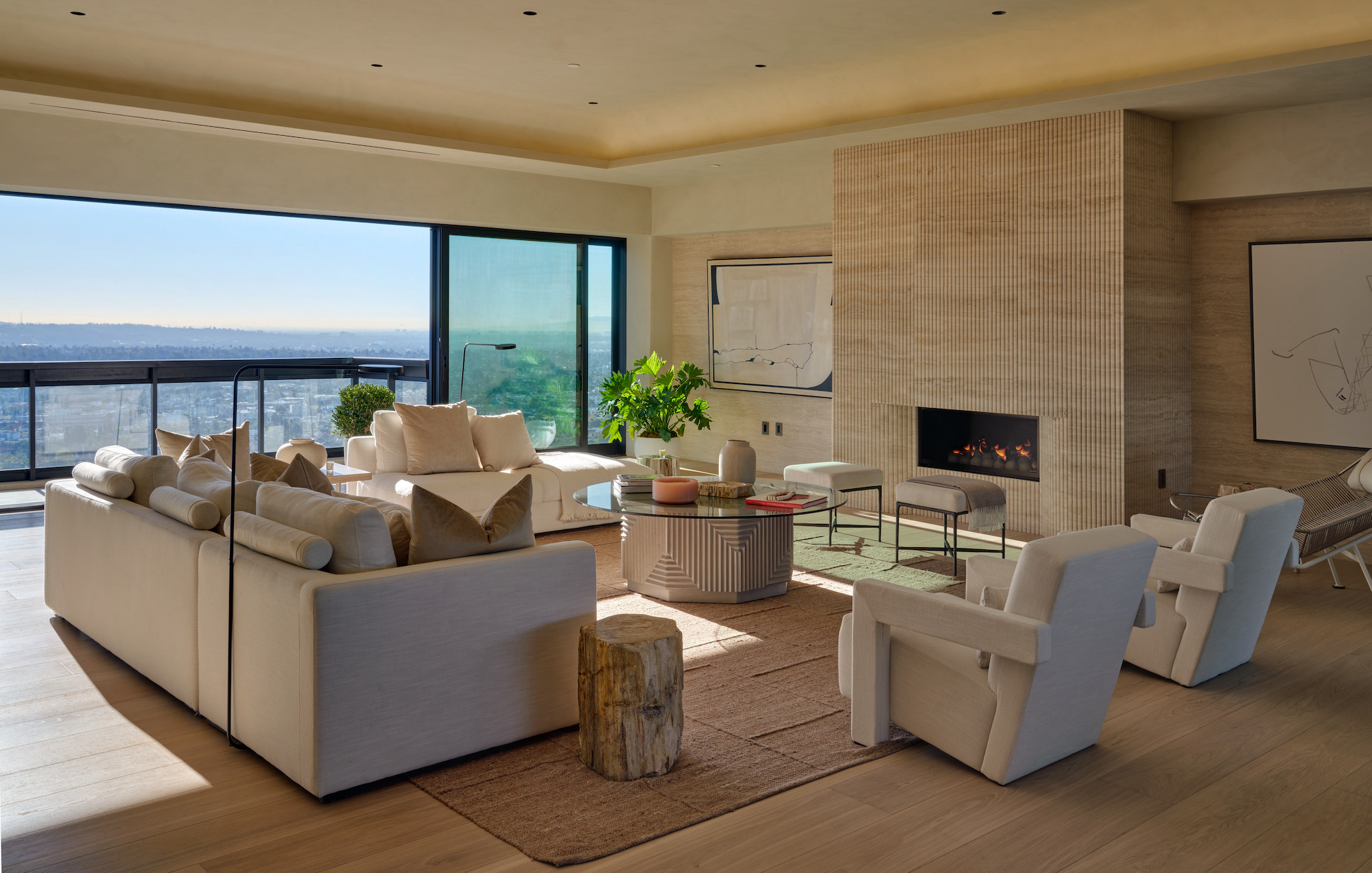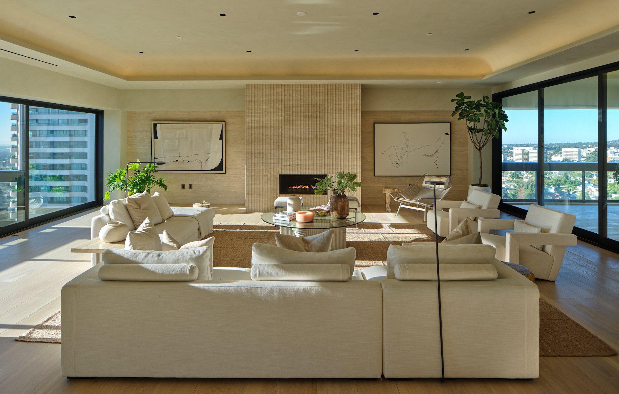 Welcome to the magnificent Penthouse that redefines luxury living. Spanning over 12,000 square feet of both indoor and outdoor space, this residence commands the entire top floor of the iconic Wilshire Grand and boasts one of Los Angeles' most expansive rooftop terraces, a lavish 5,540-square-foot outdoor haven. Boasting five bedrooms and six bathrooms, this residence offers an unrivaled level of privacy, only accessible through a discreet triple elevator entry and safeguarded by 24/7 security. Set high above the city and surrounded by seamless glass, the Penthouse unveils breathtaking 360-degree panoramic views, showcasing iconic landmarks like the Hollywood Sign, the vibrant Downtown city skyline, and the serene Pacific Ocean. The interiors are bathed in soft, natural light, seamlessly blending tranquil bedroom retreats with expansive entertaining spaces. The craftsmanship is impeccable, evident in details such as hand-painted Lime-washed walls, Roman Travertine stone, Mass Beverly kitchen cabinets, Gaggenau appliances, a Sonance stereo system, Articolo lighting fixtures, a Control 4 smart home system, not one but two fireplaces, and wide plank 10-inch European white oak flooring throughout. The spa-like primary bathroom features a custom sculptural stone soaking tub and brushed bronze Hansgrohe AXOR Citterio fittings. The outdoor spaces are a true spectacle with a massive rooftop terrace deck adorned with brand new Brazilian Ipe decking, an outdoor fireplace, and an elegant clubhouse with a full bar and bathroom. Enjoy unparalleled amenities including round-the-clock concierge services, valet parking, access to a top-of-the-line fitness center, a sparkling pool, and a private event room. This remarkable property includes three coveted parking spots. This Penthouse is a once in a lifetime opportunity!