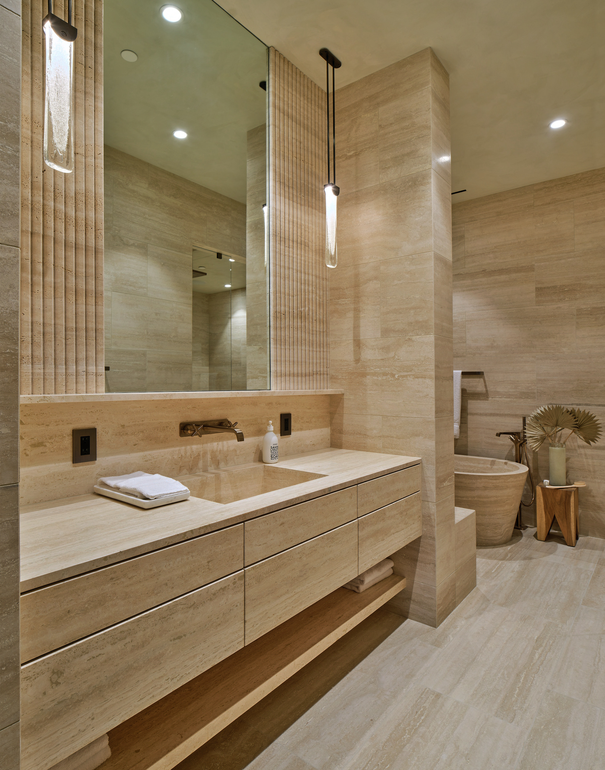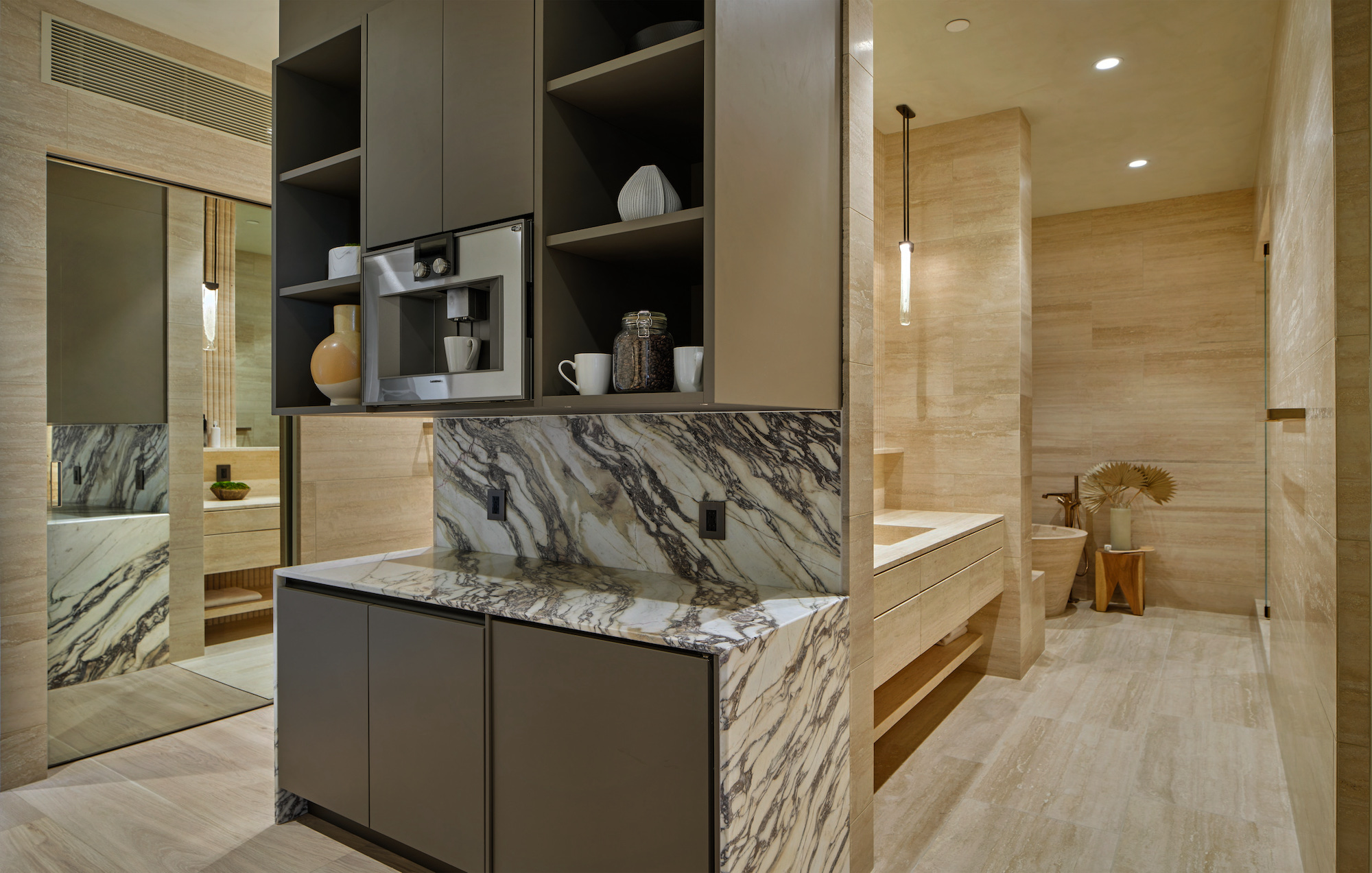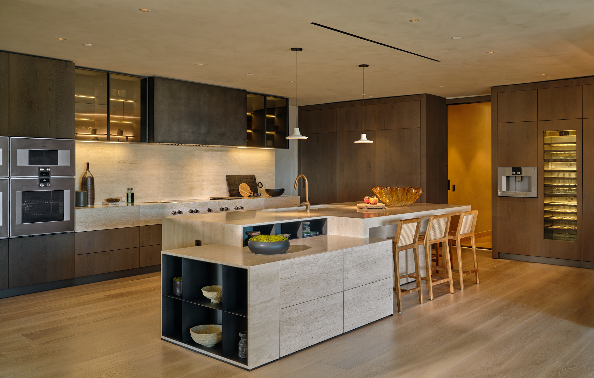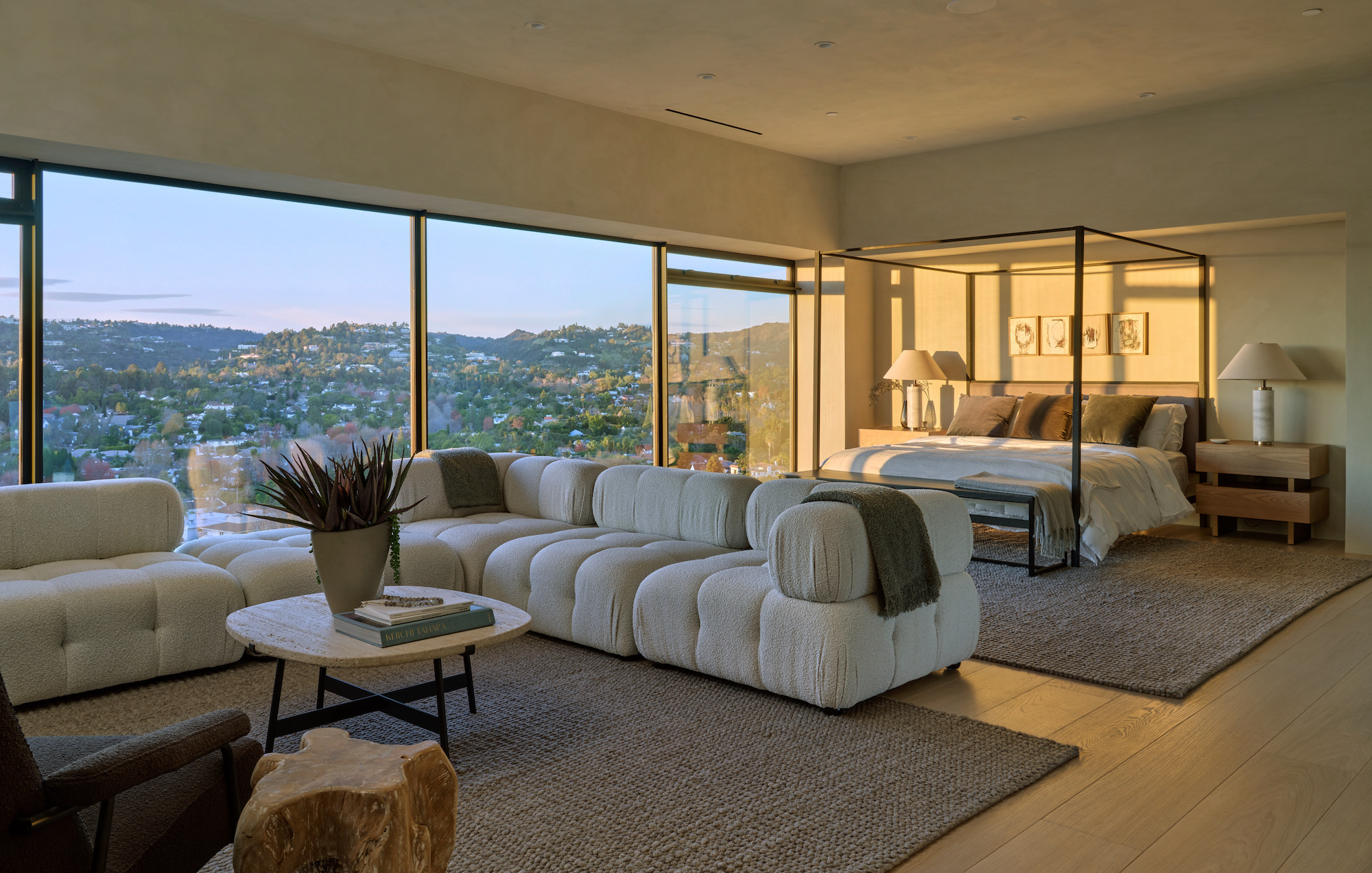 Welcome to the magnificent Penthouse that redefines luxury living. Spanning over 12,000 square feet of both indoor and outdoor space, this residence commands the entire top floor of the iconic Wilshire Grand and boasts one of Los Angeles' most expansive rooftop terraces, a lavish 5,540-square-foot outdoor haven. Boasting five bedrooms and six bathrooms, this residence offers an unrivaled level of privacy, only accessible through a discreet triple elevator entry and safeguarded by 24/7 security. Set high above the city and surrounded by seamless glass, the Penthouse unveils breathtaking 360-degree panoramic views, showcasing iconic landmarks like the Hollywood Sign, the vibrant Downtown city skyline, and the serene Pacific Ocean. The interiors are bathed in soft, natural light, seamlessly blending tranquil bedroom retreats with expansive entertaining spaces. The craftsmanship is impeccable, evident in details such as hand-painted Lime-washed walls, Roman Travertine stone, Mass Beverly kitchen cabinets, Gaggenau appliances, a Sonance stereo system, Articolo lighting fixtures, a Control 4 smart home system, not one but two fireplaces, and wide plank 10-inch European white oak flooring throughout. The spa-like primary bathroom features a custom sculptural stone soaking tub and brushed bronze Hansgrohe AXOR Citterio fittings. The outdoor spaces are a true spectacle with a massive rooftop terrace deck adorned with brand new Brazilian Ipe decking, an outdoor fireplace, and an elegant clubhouse with a full bar and bathroom. Enjoy unparalleled amenities including round-the-clock concierge services, valet parking, access to a top-of-the-line fitness center, a sparkling pool, and a private event room. This remarkable property includes three coveted parking spots. This Penthouse is a once in a lifetime opportunity!