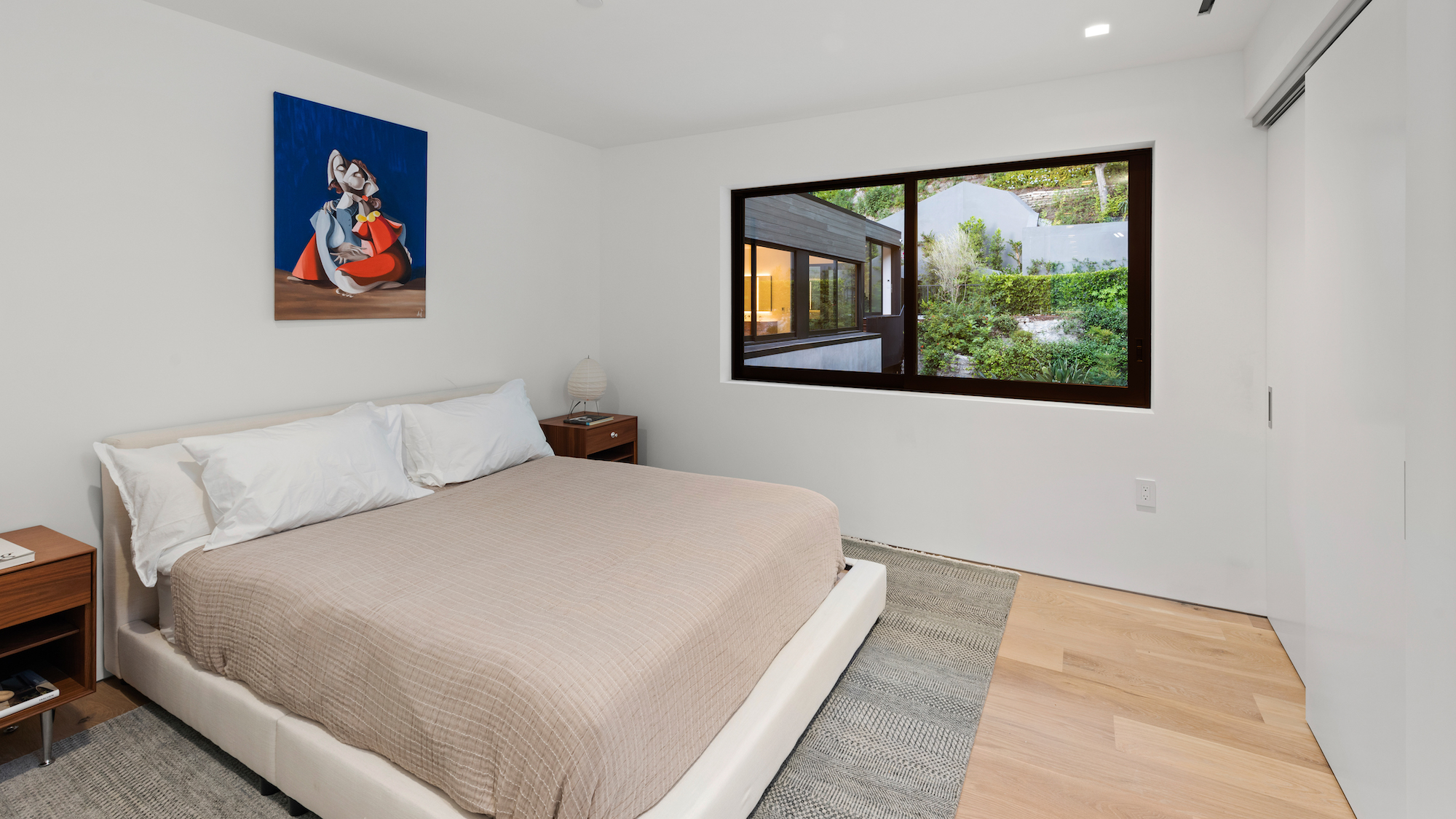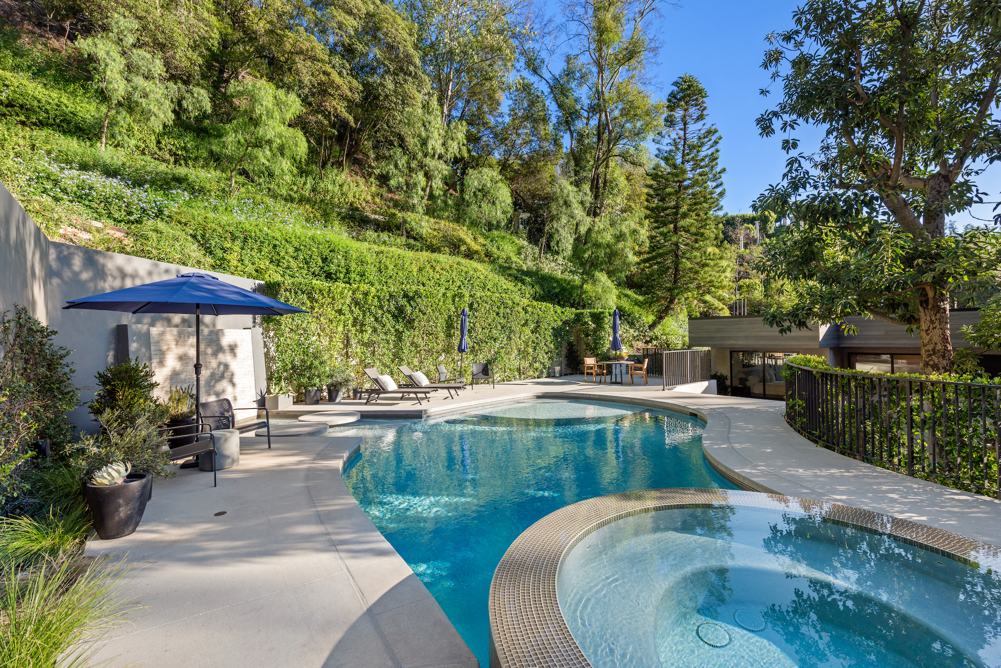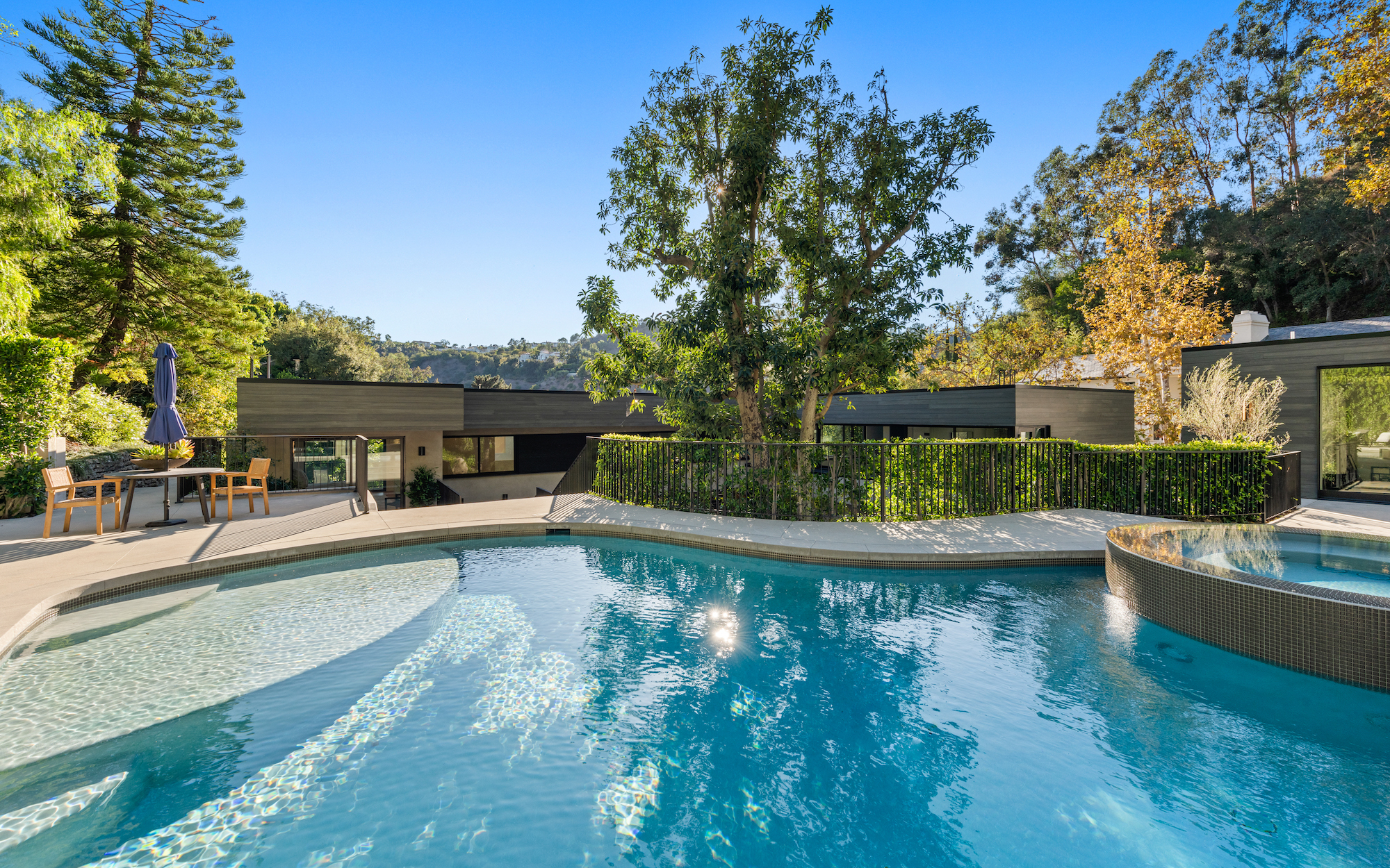 Set on a private cul-de-sac in the exclusive Bel Air neighborhood of Stone Canyon is this one-of-a-kind, meticulously remodeled modern-contemporary home. Exuding opulence throughout, as you enter the 12ft wooden front door you are immersed with 2-story soaring ceilings and floor-to-ceiling windows that radiate bright, natural light in its entirety. The main level includes a family room with fireplace and large windows that open to the canyon and manicured front yard, as well as an expansive gourmet chef's kitchen with custom Italian cabinets, marble waterfall center island and top-of-the-line Miele appliances. From the kitchen, Fleetwood glass doors and windows open to the backyard creating that true indoor/outdoor California living at its finest. Travel up the staircase, illuminated by a large, beautiful skylight that leads to your primary suite, 4 additional bedrooms, and a bonus area. The primary suite emits stunning natural light with radiant floors and has a spa-like bathroom with steam room, Italian dual vanities, Italian marble shower with rainfall showerhead, and a showroom style walk-in closet. From the primary bedroom, cross over the bridge to your resort style backyard surrounded by lush landscaping that includes a large pool, spa, and private guest/pool house. Leaving no details spared during this down to the studs' remodel, this private oasis truly has it all, including Ketra lighting system throughout, new white oak flooring, new roof, and a spacious 3-car garage with ample gated parking for guests.