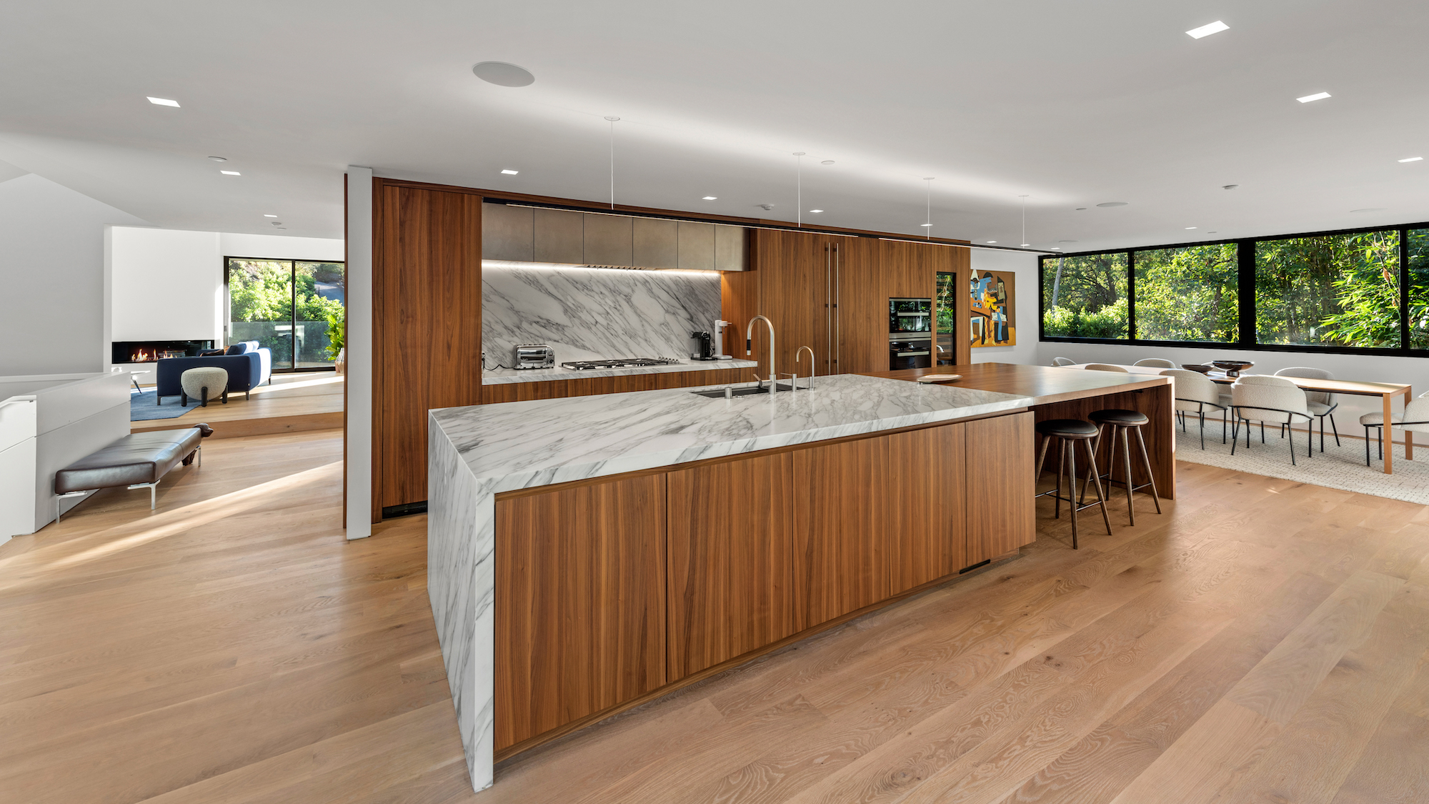 string(1538) "Set on a private cul-de-sac in the exclusive Bel Air neighborhood of Stone Canyon is this one-of-a-kind, meticulously remodeled modern-contemporary home. Exuding opulence throughout, as you enter the 12ft wooden front door you are immersed with 2-story soaring ceilings and floor-to-ceiling windows that radiate bright, natural light in its entirety. The main level includes a family room with fireplace and large windows that open to the canyon and manicured front yard, as well as an expansive gourmet chef's kitchen with custom Italian cabinets, marble waterfall center island and top-of-the-line Miele appliances. From the kitchen, Fleetwood glass doors and windows open to the backyard creating that true indoor/outdoor California living at its finest. Travel up the staircase, illuminated by a large, beautiful skylight that leads to your primary suite, 4 additional bedrooms, and a bonus area. The primary suite emits stunning natural light with radiant floors and has a spa-like bathroom with steam room, Italian dual vanities, Italian marble shower with rainfall showerhead, and a showroom style walk-in closet. From the primary bedroom, cross over the bridge to your resort style backyard surrounded by lush landscaping that includes a large pool, spa, and private guest/pool house. Leaving no details spared during this down to the studs' remodel, this private oasis truly has it all, including Ketra lighting system throughout, new white oak flooring, new roof, and a spacious 3-car garage with ample gated parking for guests."