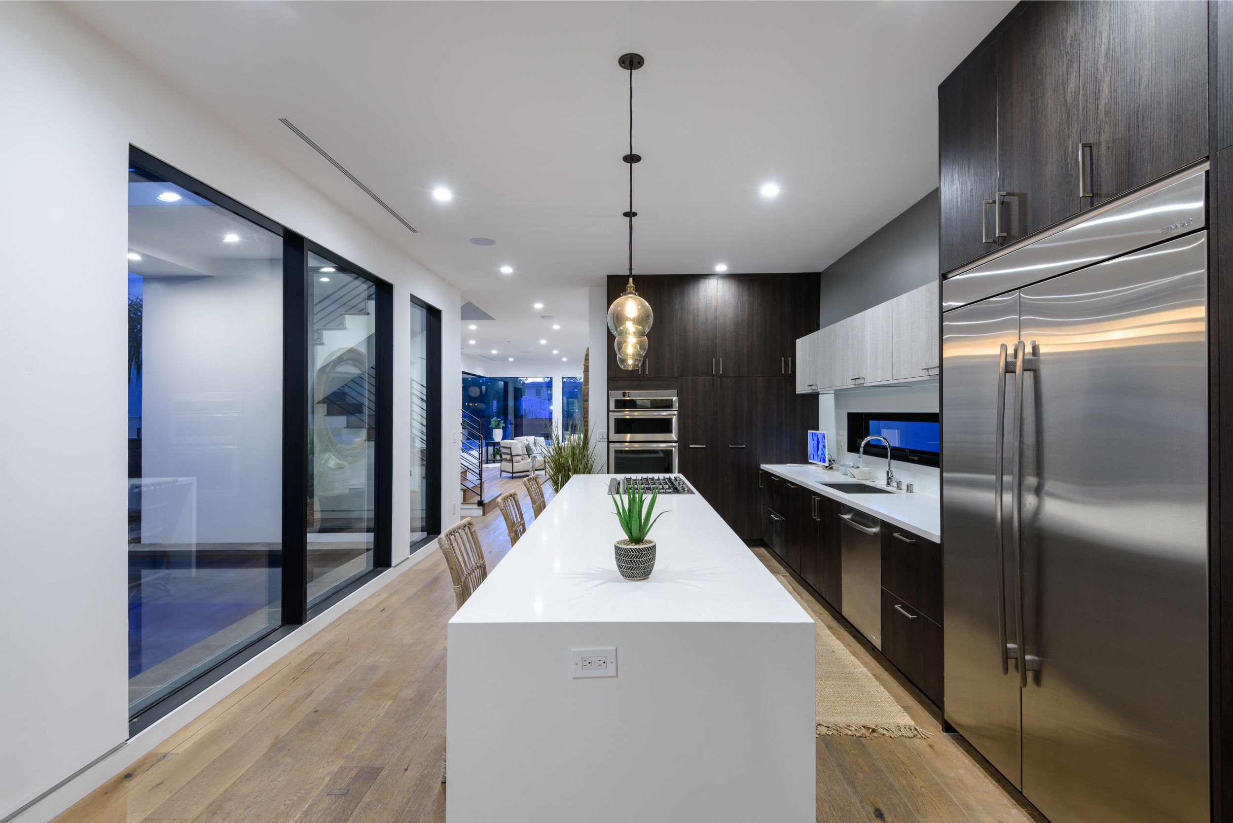 A stunning new construction home, located on the desirable Palms Blvd in Venice. This property is truly above the rest, with nearly 2000 sq ft of additional outdoor space, including an amazing rooftop deck with 360 degree views of Los Angeles. The property is fully fitted with "Smart Home" technology and top of the range appliances. These equip this contemporary stunner with all the features required for modern day living. The highest quality thermador appliances coupled with quartz counter tops create the ideal kitchen environment. At nearly 4000 sq ft this house is lined with French oak wood floors throughout and custom built wood windows. In addition to the 4 beds and 5 bathrooms, outdoor amenities include spa, heated pool, fish pond and 2 car garage with 4 additional parking spaces in the rear.