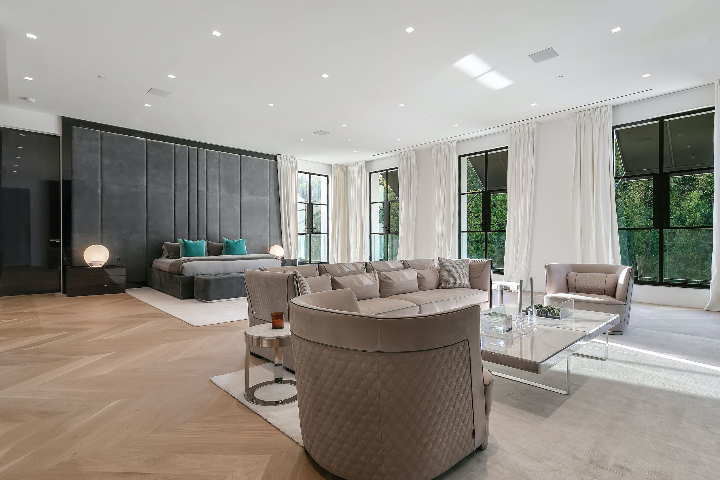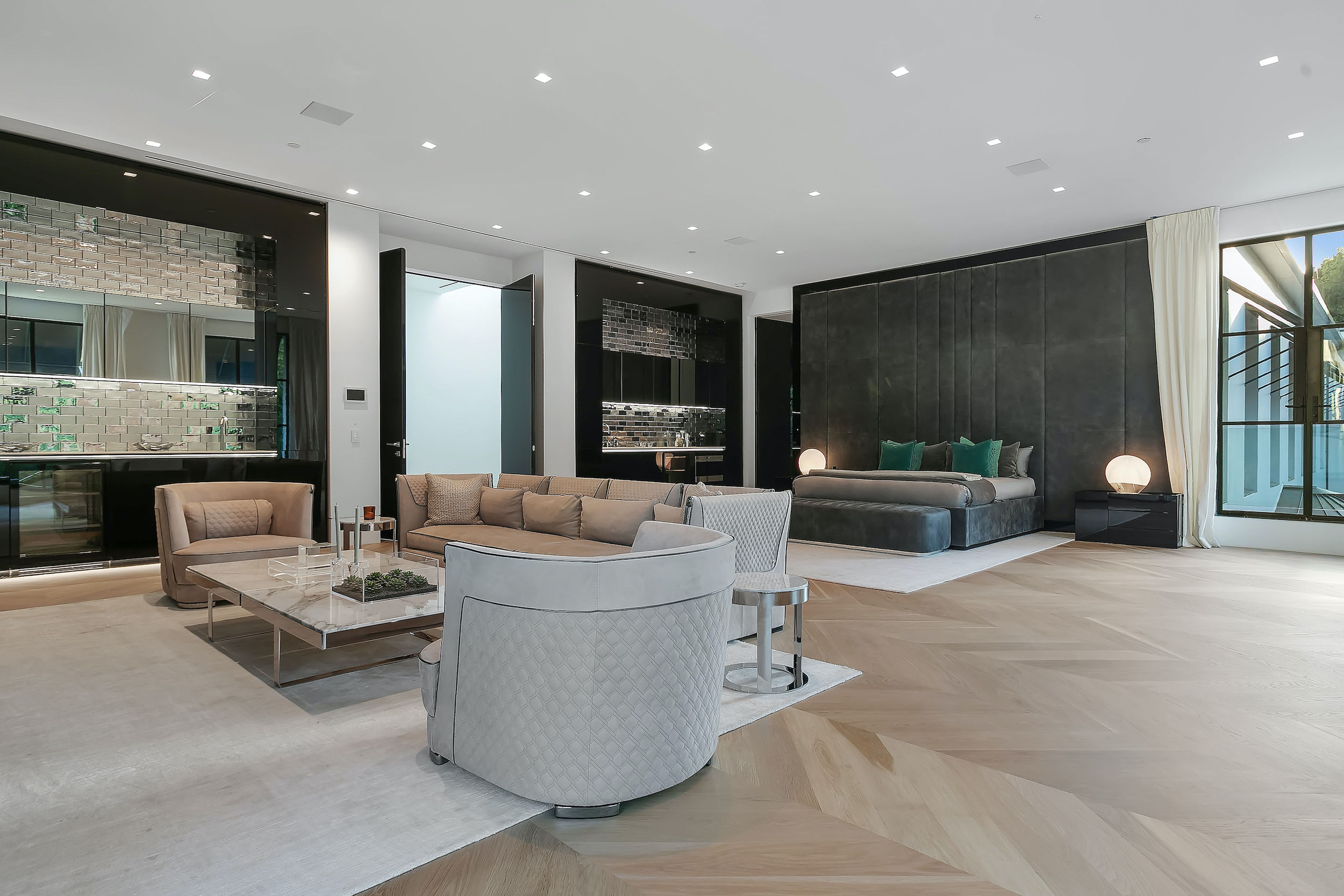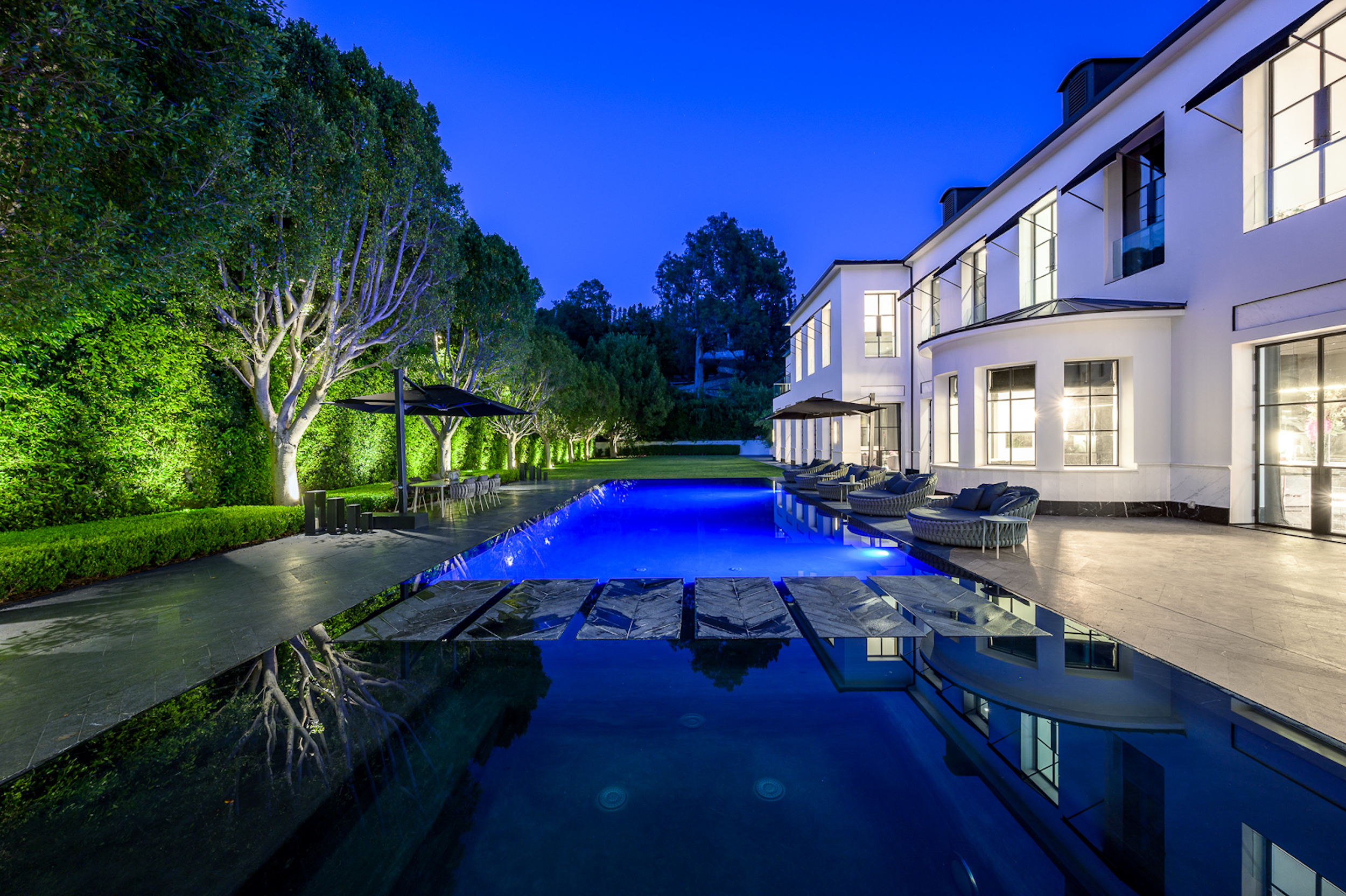 A warm contemporary French Manor set in the heart of Old Bel-Air. Private and gated compound perched above the sixth hole fairway of the world's most exclusive country club with views spanning the Bel Air greenbelt to the iconic LA skyline and beyond. A new generation of home with trademark elegant lines- Striking richness with brand new chevron wood flooring throughout (elegance, not flash) and beautifully portioned spaces abound. Offering 8 grand Bedroom suites, 12 Bathrooms, staff quarters, and guest house. World-class movie theatre, wellness center, Grand Ballroom, an exquisite black marble bar with seamlessly integrated indoor and outdoor entertaining spaces. Rolling lawns of green, parking for 30+ cars with auto gallery. Seller is motivated to find buyer - offers from qualified clients will be reviewed as they come in. World Class Trophy Property - Do not miss this opportunity.