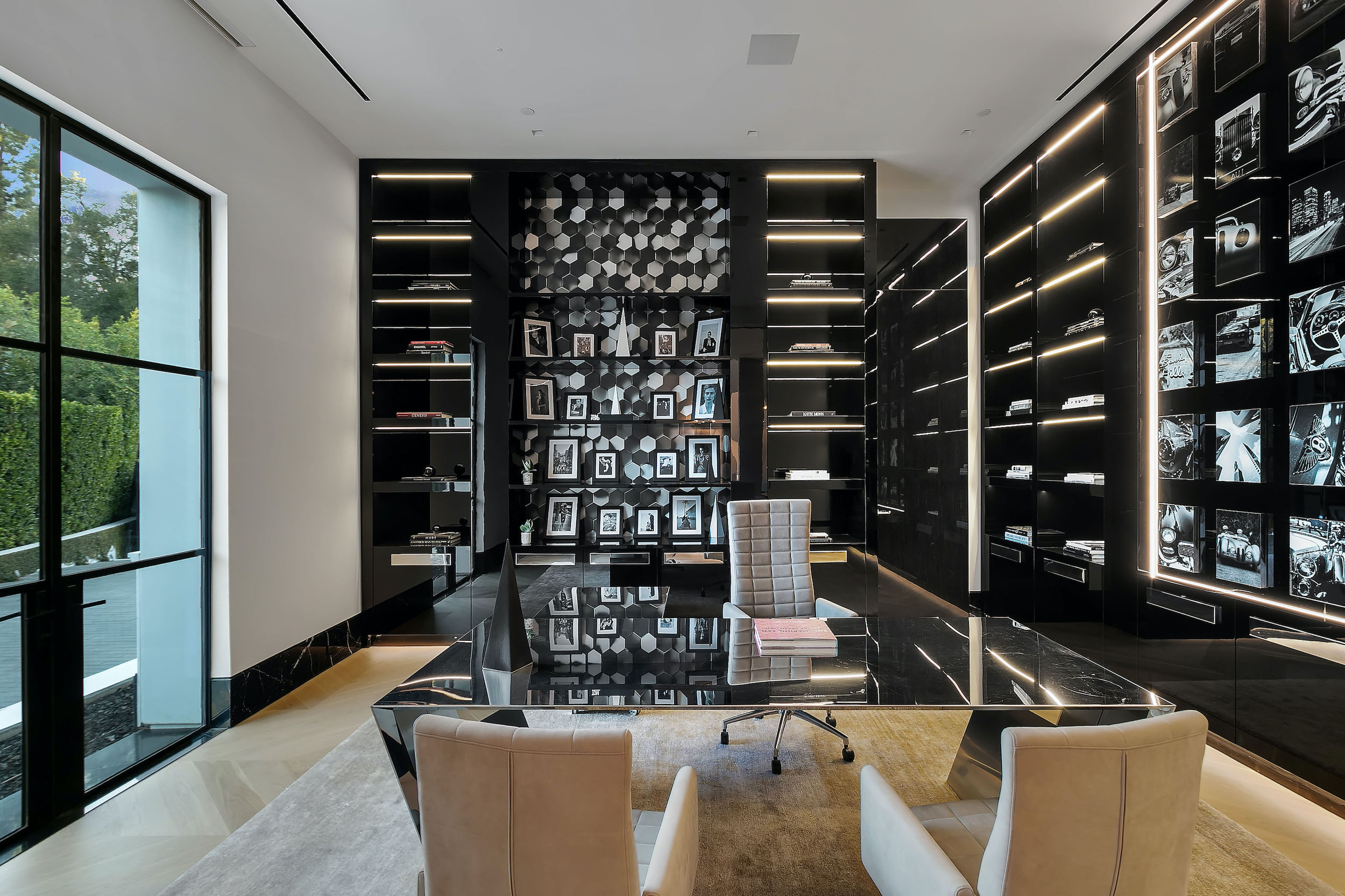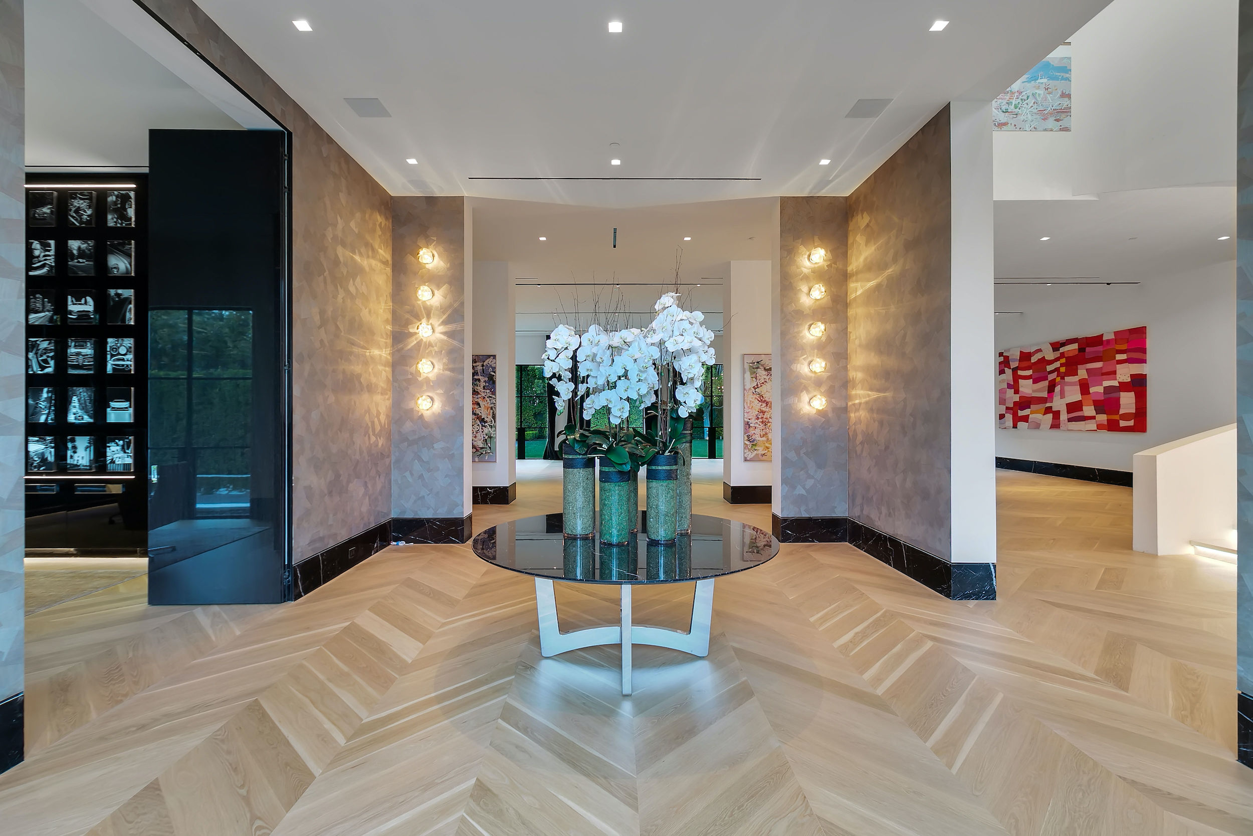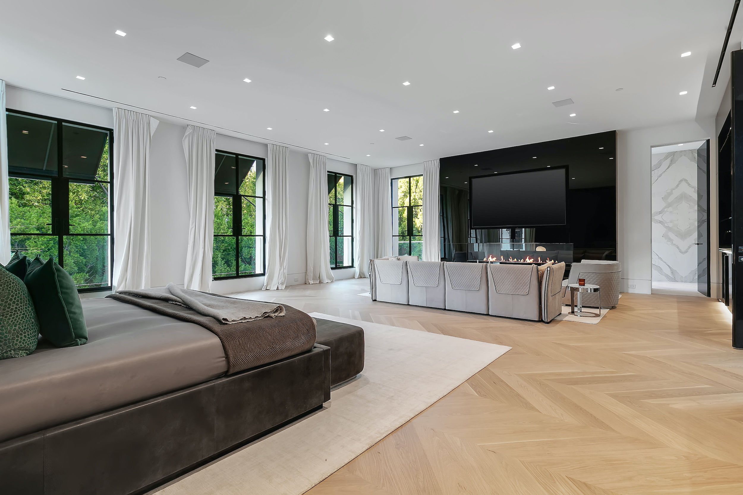 A warm contemporary French Manor set in the heart of Old Bel-Air. Private and gated compound perched above the sixth hole fairway of the world's most exclusive country club with views spanning the Bel Air greenbelt to the iconic LA skyline and beyond. A new generation of home with trademark elegant lines- Striking richness with brand new chevron wood flooring throughout (elegance, not flash) and beautifully portioned spaces abound. Offering 8 grand Bedroom suites, 12 Bathrooms, staff quarters, and guest house. World-class movie theatre, wellness center, Grand Ballroom, an exquisite black marble bar with seamlessly integrated indoor and outdoor entertaining spaces. Rolling lawns of green, parking for 30+ cars with auto gallery. Seller is motivated to find buyer - offers from qualified clients will be reviewed as they come in. World Class Trophy Property - Do not miss this opportunity.