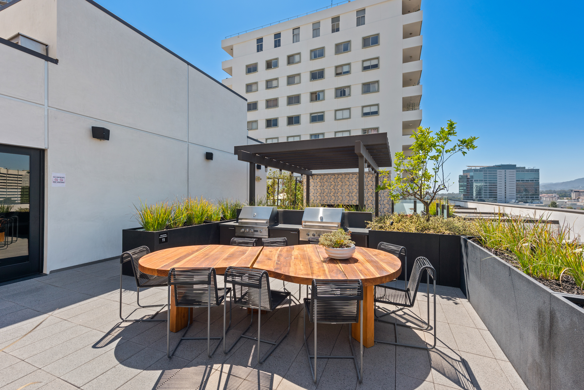 Stunning luxurious corner Penthouse at The Liddel with expansive terrace and beautiful hills views. Constructed in 2018 and designed by Jamie Bush for the most discerning and sophisticated buyer sits this 3-bedroom, 3.5-bathroom oasis showcasing 2,390sf of openness with a private 542sf terrace. Spectacular Northeast facing views provide an abundance of natural light throughout. Your own gourmet chef's kitchen includes Miele stainless steel appliances, wine fridge, and oversized island that flows seamlessly into the living and dining areas. Enjoy your private primary wing with automatic shades for convenience, a spa-like bathroom and generous walk-in closet. 2 additional en-suite bedrooms, 2 car parking and more. The Liddel offers many amenities including 24/7 doorman concierge service, 24/7 valet parking and self-parking, EV charging stations, fitness center, club lounge, wine room, catering kitchen, and rooftop terrace with fireplace, BBQ and panoramic views of Westwood and the hills. Centrally located moments from Westwood Village, UCLA, Bel Air, Brentwood, Santa Monica, and the finest restaurants, entertainment, and nightlife the city has to offer. Do not miss this opportunity to own one of the premium units in The Liddel!