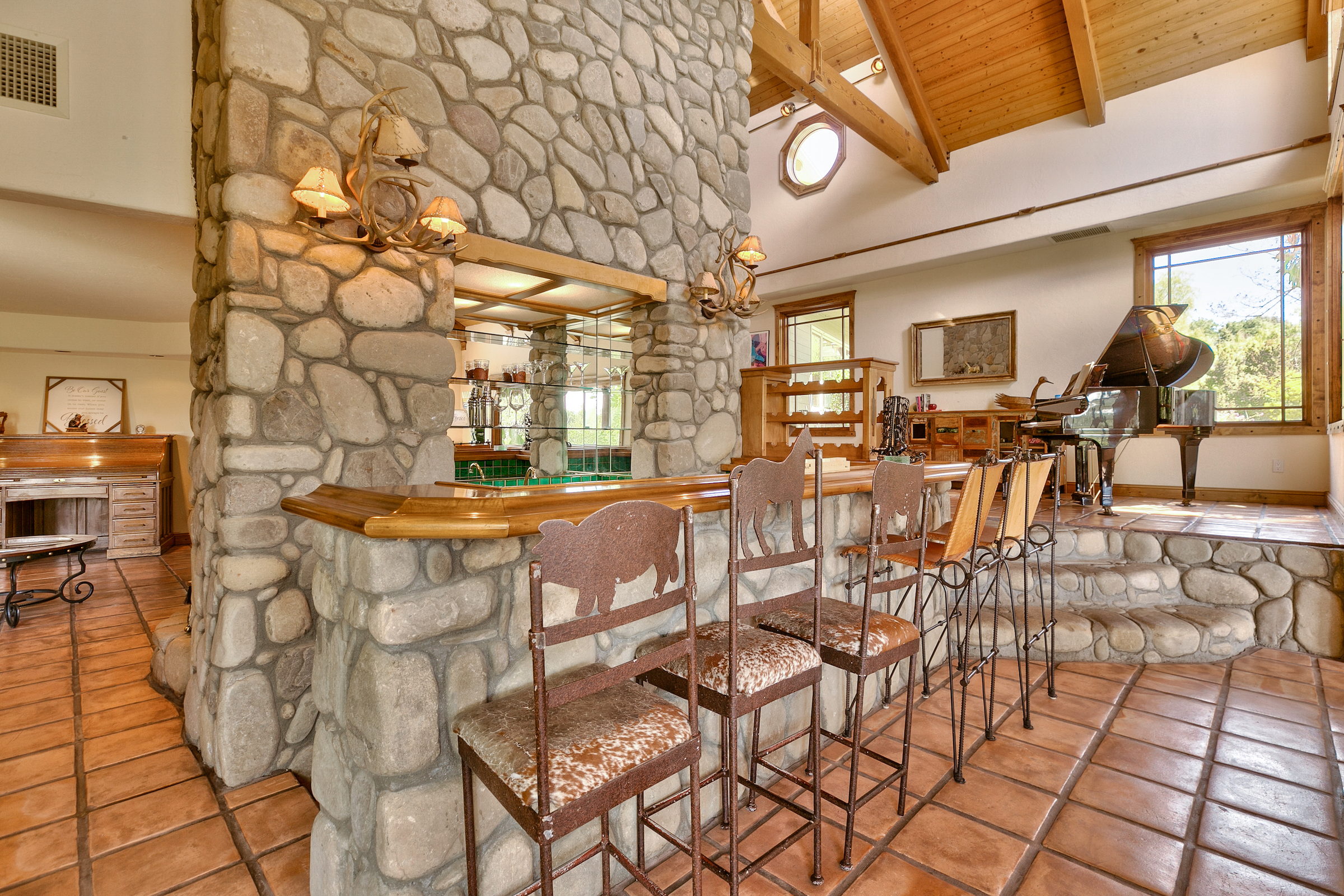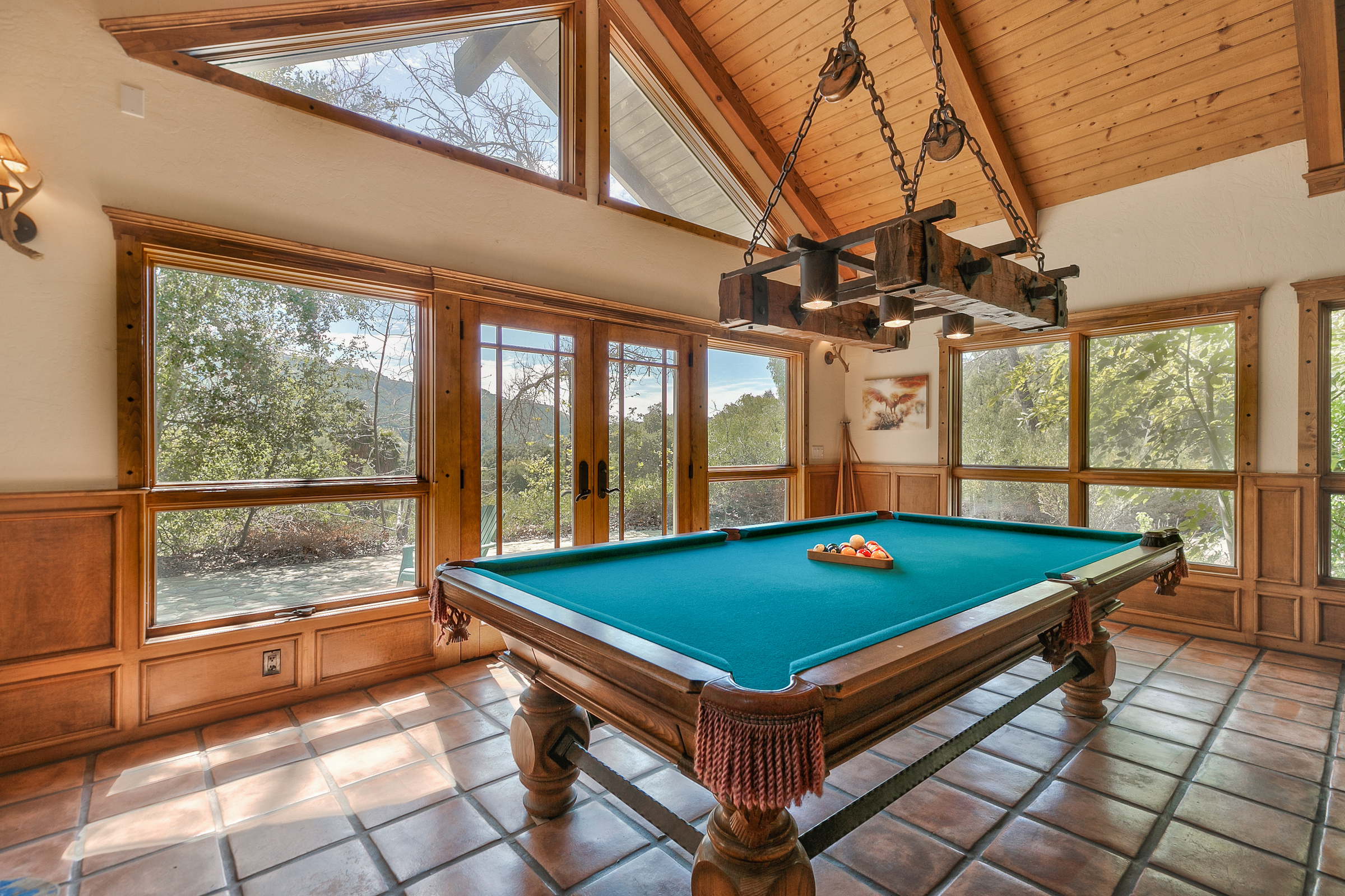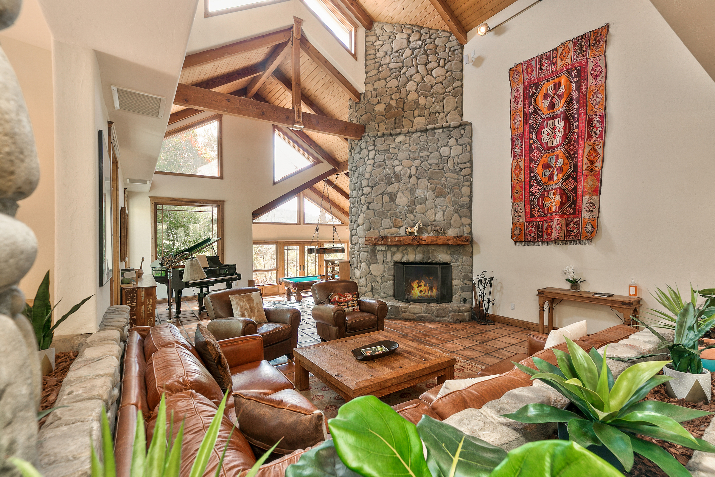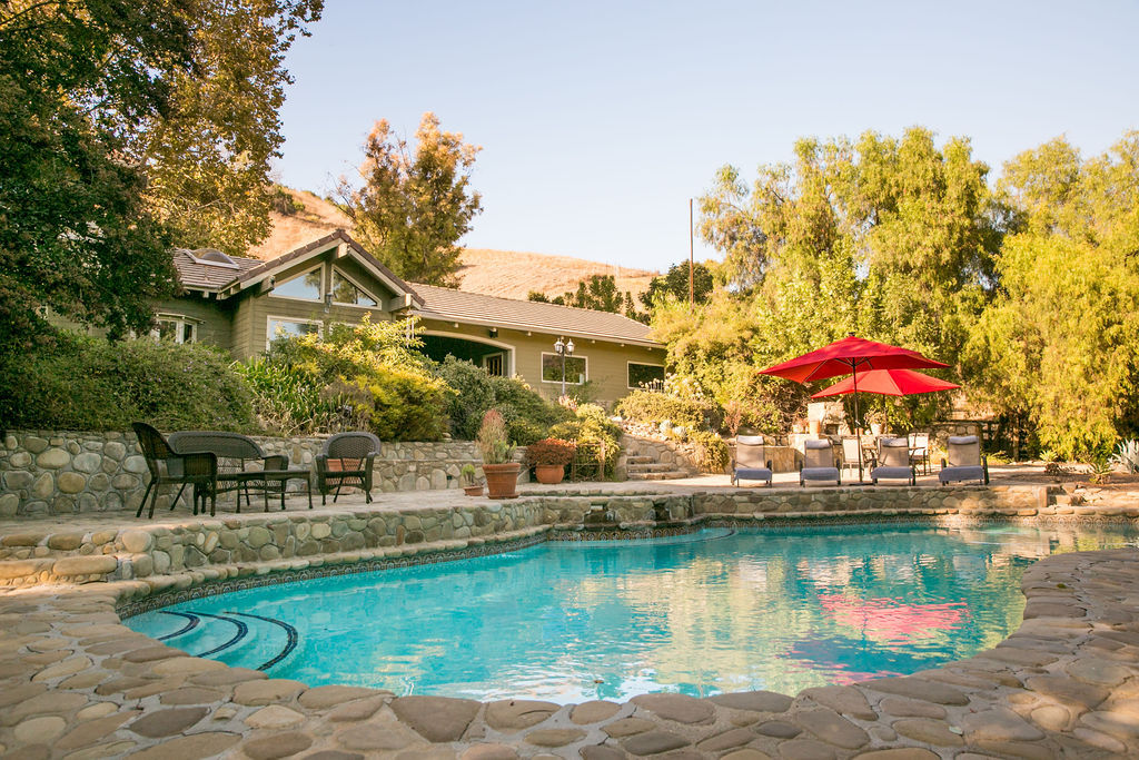 string(581) "Set in the highly desired Ojai Valley, this immaculate retreat, designed by the esteemed Whitman Design, sits on 13 acres of land. Drive up a private driveway, speckled with pepper trees and outdoor life to the spacious home which boasts 5,000 sf of living space with vaulted wood beam ceilings, rock feature accents and a magnificent fireplace. The home showcases 5 bedrooms, 5 bathrooms, formal and casual dining, media room, game room, a grand master suite, office and walk-in closets. Currently, the property has a world class horse facility, but endless possibilities abound."