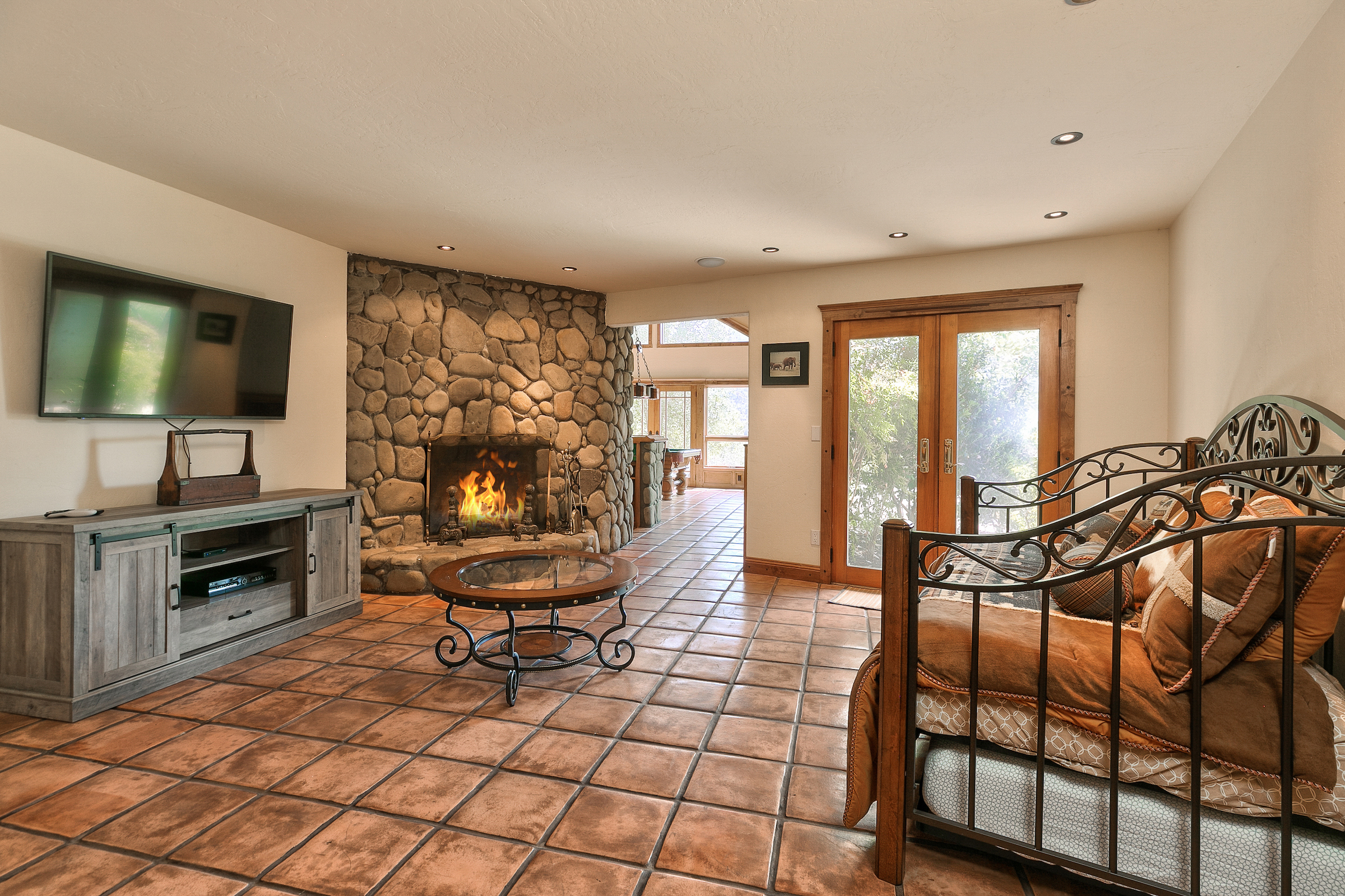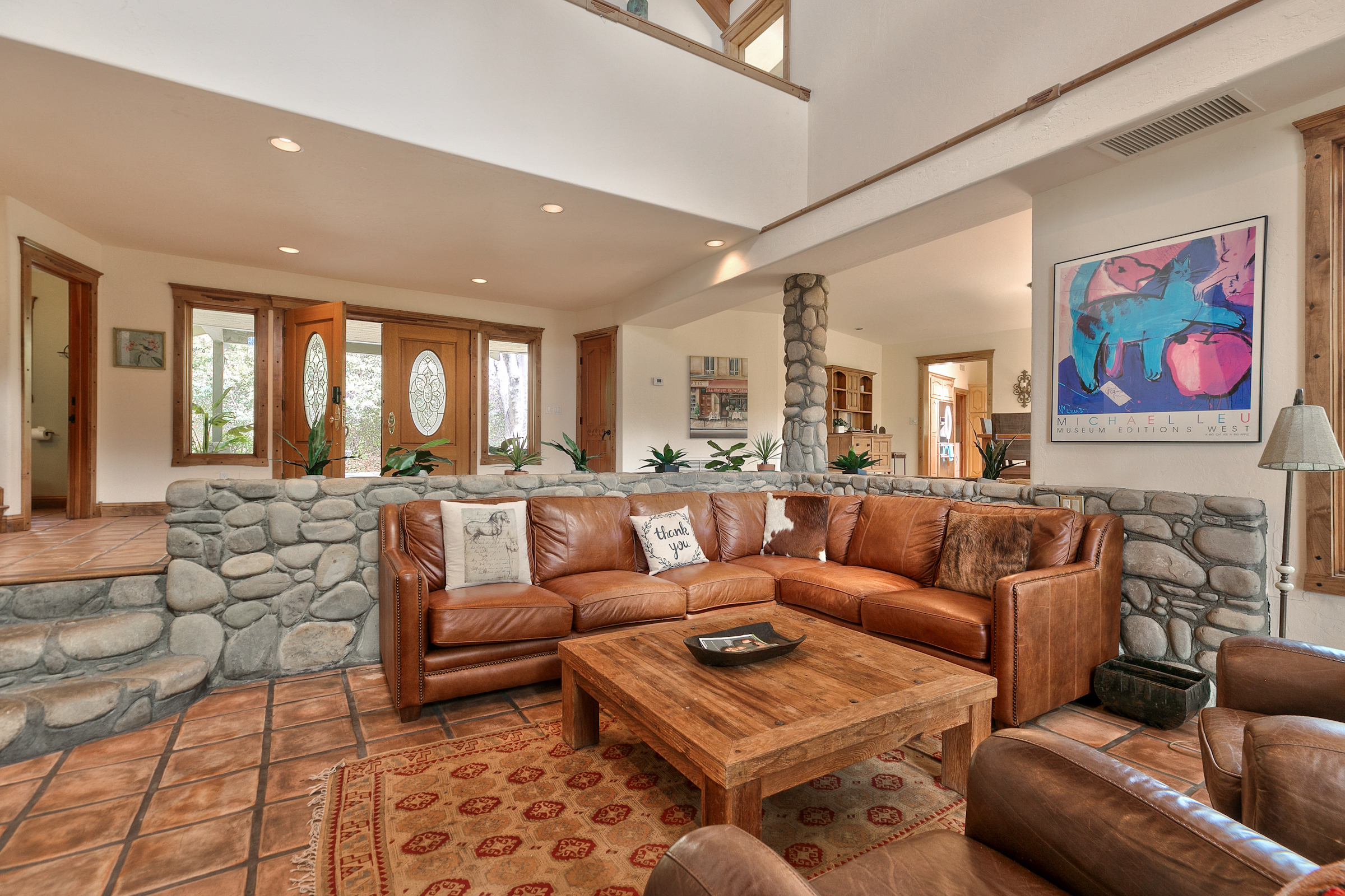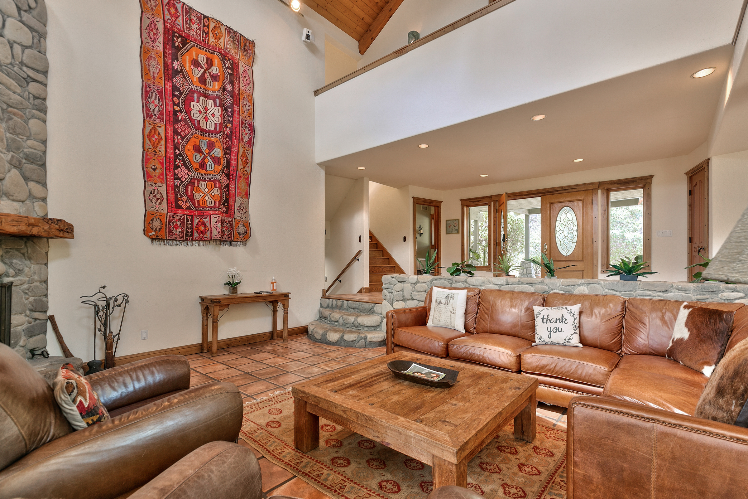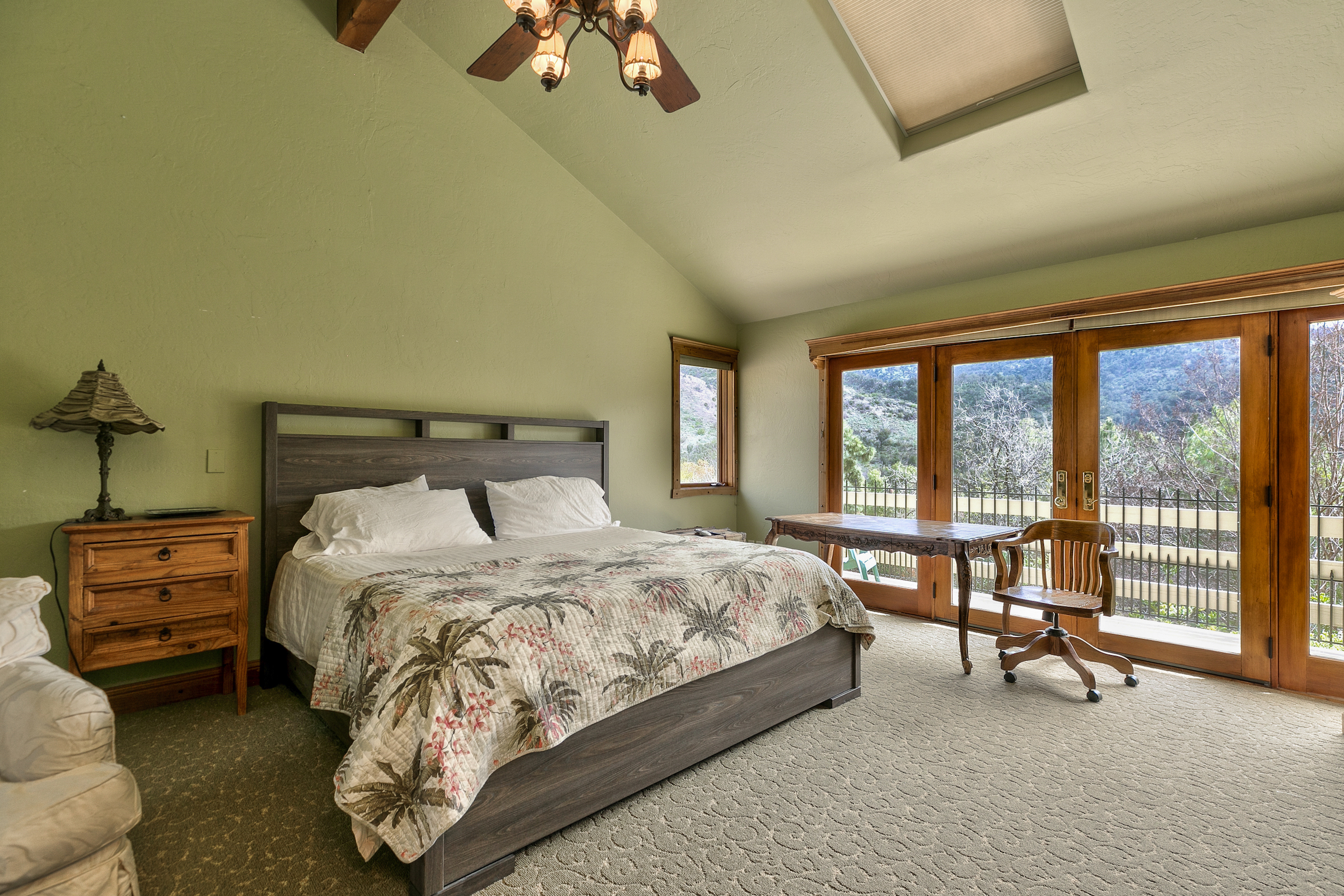 string(581) "Set in the highly desired Ojai Valley, this immaculate retreat, designed by the esteemed Whitman Design, sits on 13 acres of land. Drive up a private driveway, speckled with pepper trees and outdoor life to the spacious home which boasts 5,000 sf of living space with vaulted wood beam ceilings, rock feature accents and a magnificent fireplace. The home showcases 5 bedrooms, 5 bathrooms, formal and casual dining, media room, game room, a grand master suite, office and walk-in closets. Currently, the property has a world class horse facility, but endless possibilities abound."