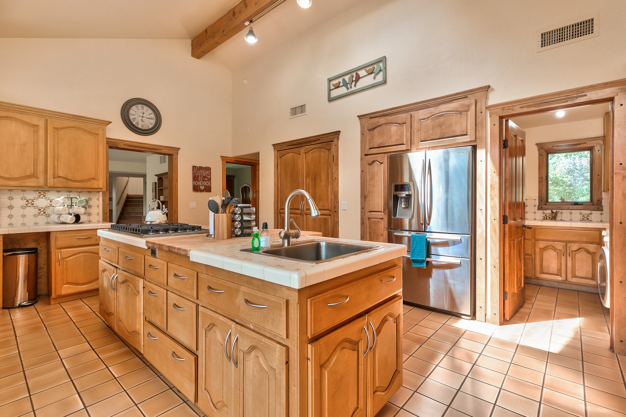 Set in the highly desired Ojai Valley, this immaculate retreat, designed by the esteemed Whitman Design, sits on 13 acres of land. Drive up a private driveway, speckled with pepper trees and outdoor life to the spacious home which boasts 5,000 sf of living space with vaulted wood beam ceilings, rock feature accents and a magnificent fireplace. The home showcases 5 bedrooms, 5 bathrooms, formal and casual dining, media room, game room, a grand master suite, office and walk-in closets. Currently, the property has a world class horse facility, but endless possibilities abound.