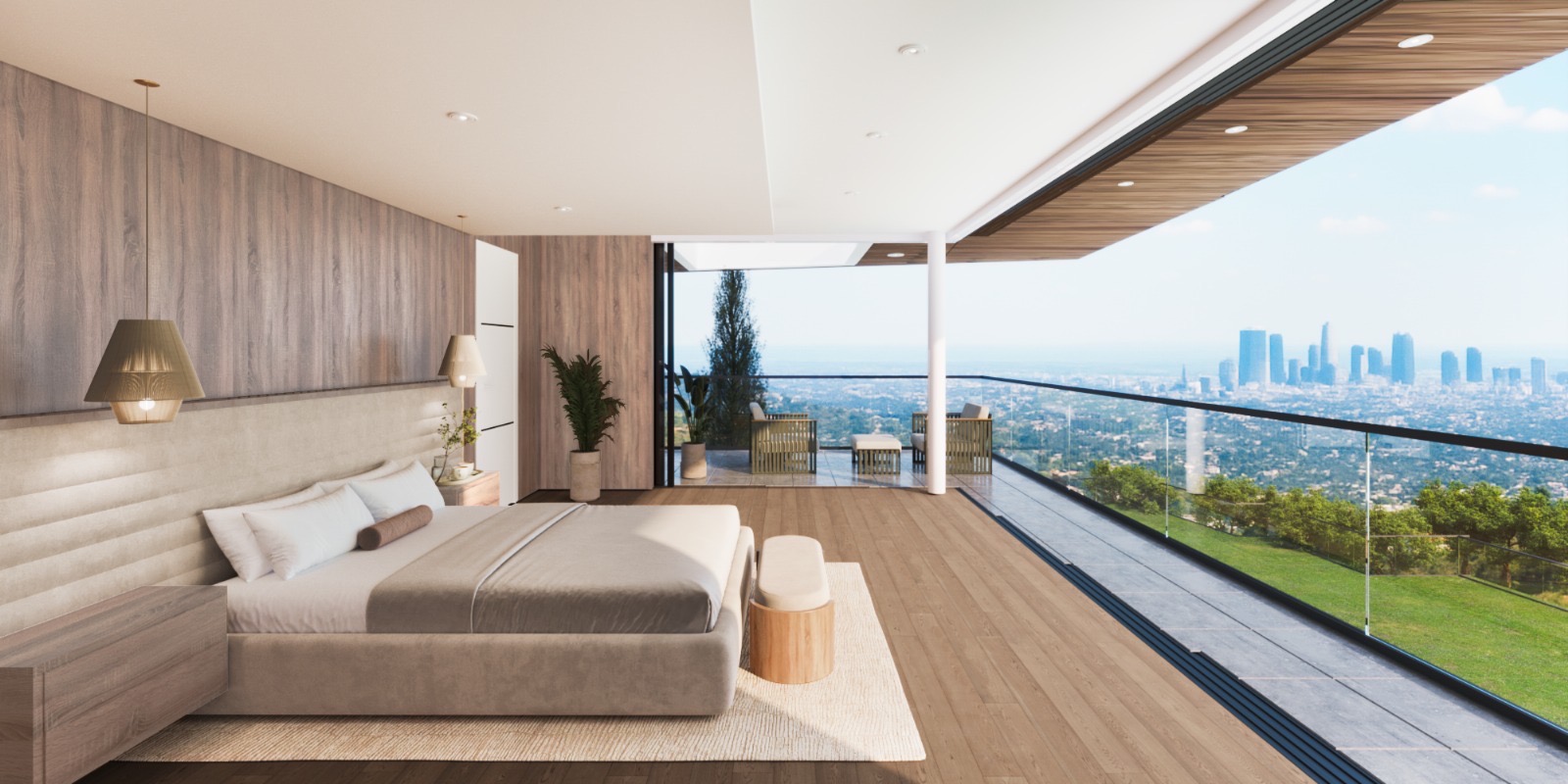 string(1425) "Perched at the end of a private cul-de-sac in Bel-Air, this newly reimagined Architectural estate spans approximately 10,000 square feet and showcases sweeping 270-degree views encompassing the Bel-Air Country Club, Pacific Ocean, Catalina Island, Century City, and Griffith Observatory. Behind its own secure gates, the residence offers a rare combination of modern luxury and total privacy. Dramatic ceilings and walls of glass flood the main level with natural light, revealing a grand great room, formal dining area with fireplace, state-of-the-art theater, and a sophisticated bar with a walk-in wine cellar. The gourmet chef's kitchen features dual islands with waterfall countertops, top-of-the-line appliances, and a separate prep kitchen. Fleetwood automated pocket doors blur the line between indoors and out, opening to expansive terraces with unobstructed panoramic vistas. Upstairs, the ultra-private primary suite serves as a true retreat with its own sitting room, wet bar, and dual bathrooms with sweeping views. Three additional en-suite bedrooms and a secondary family room complete the level. The meticulously landscaped grounds feature mature hedges for privacy, an infinity-edge cantilevered pool, spa, outdoor bar and BBQ, and a generous lawn, all oriented toward the captivating skyline and ocean views. A statement of design and scale, this Bel-Air estate epitomizes the ultimate entertainer's dream. "