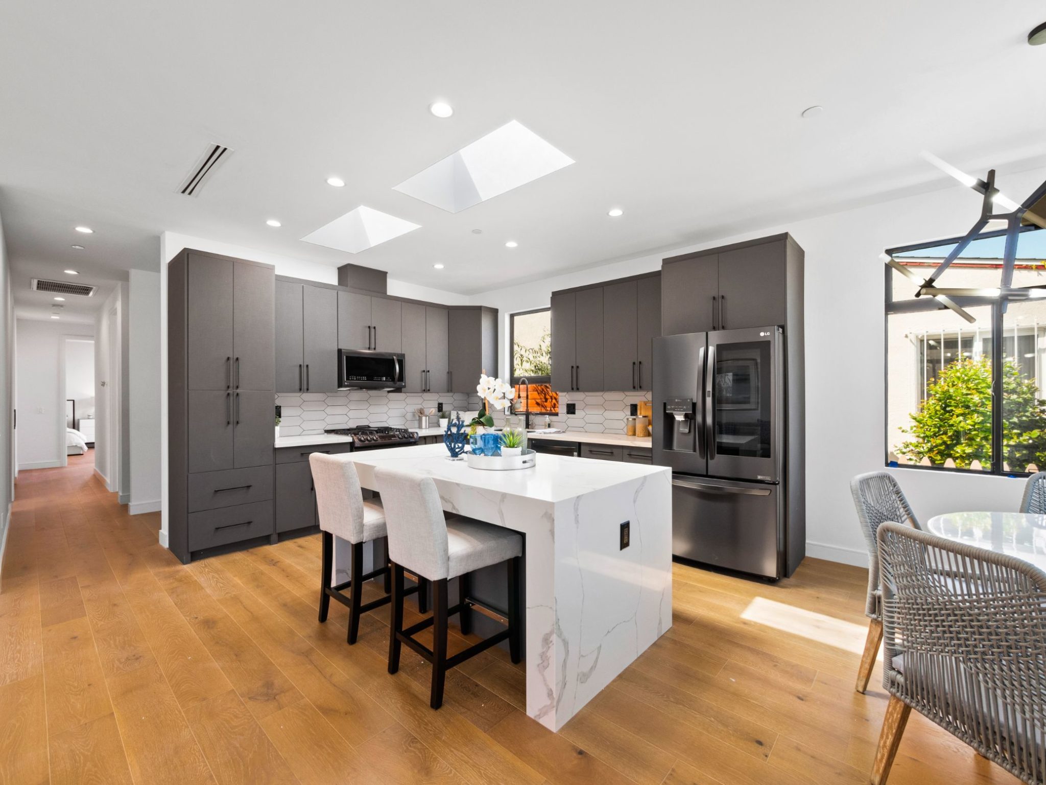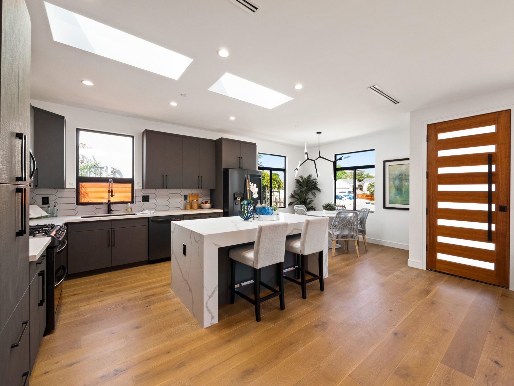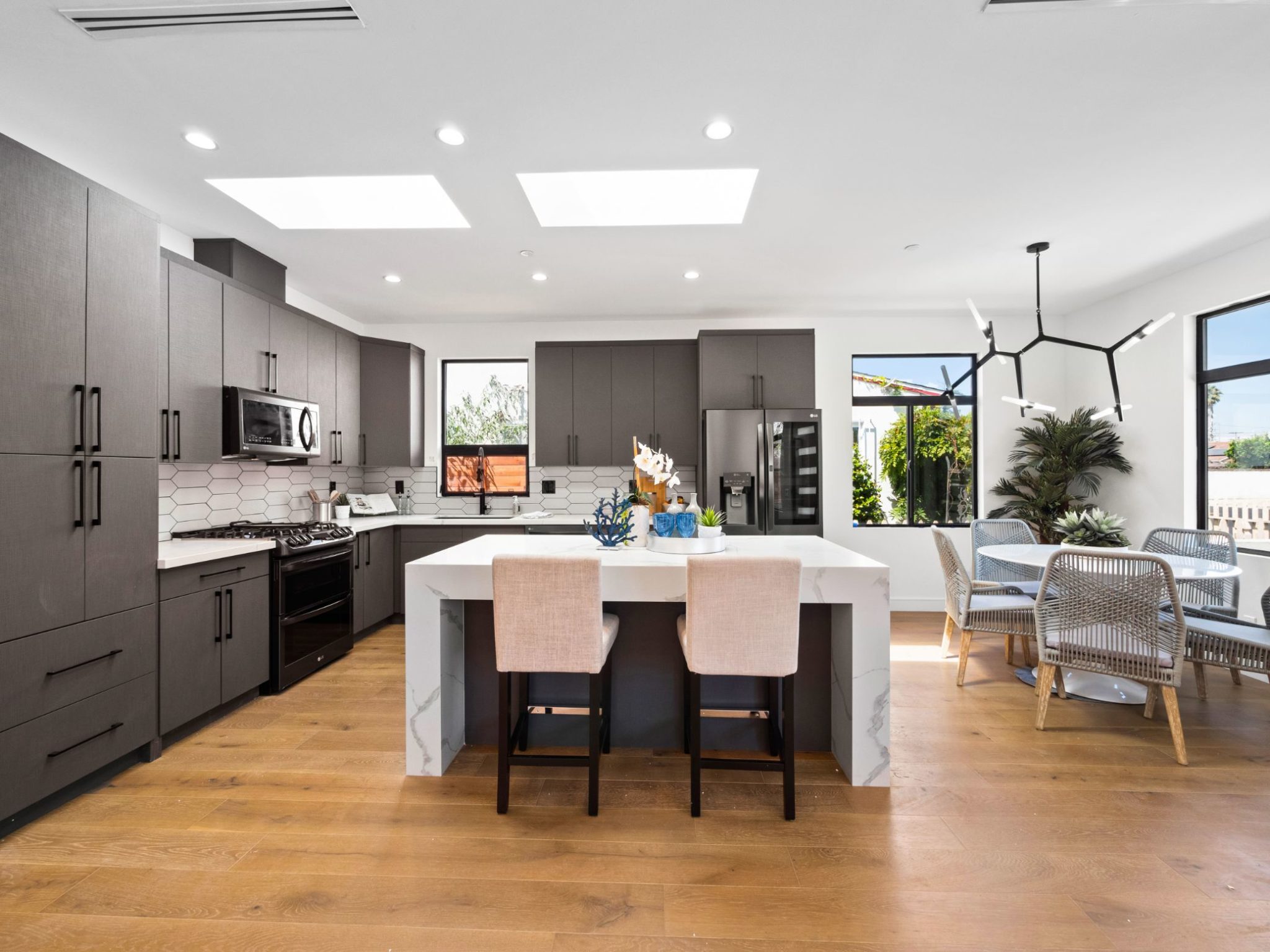 This completely remodeled contemporary home is turnkey located within the highly desired Sawtelle neighborhood. Encompassing 1,428 square feet, the home features 3 bedrooms and 3 bathrooms. The open floor plan offering seamless flow from the kitchen to the living room receives incredible natural light that brings life and warmth to the space. Sitting just three and a half miles from the Santa Monica Pier, this home is close to all of the action. If desired, the private 2-car garage can be converted into an ADU. An amazing opportunity!