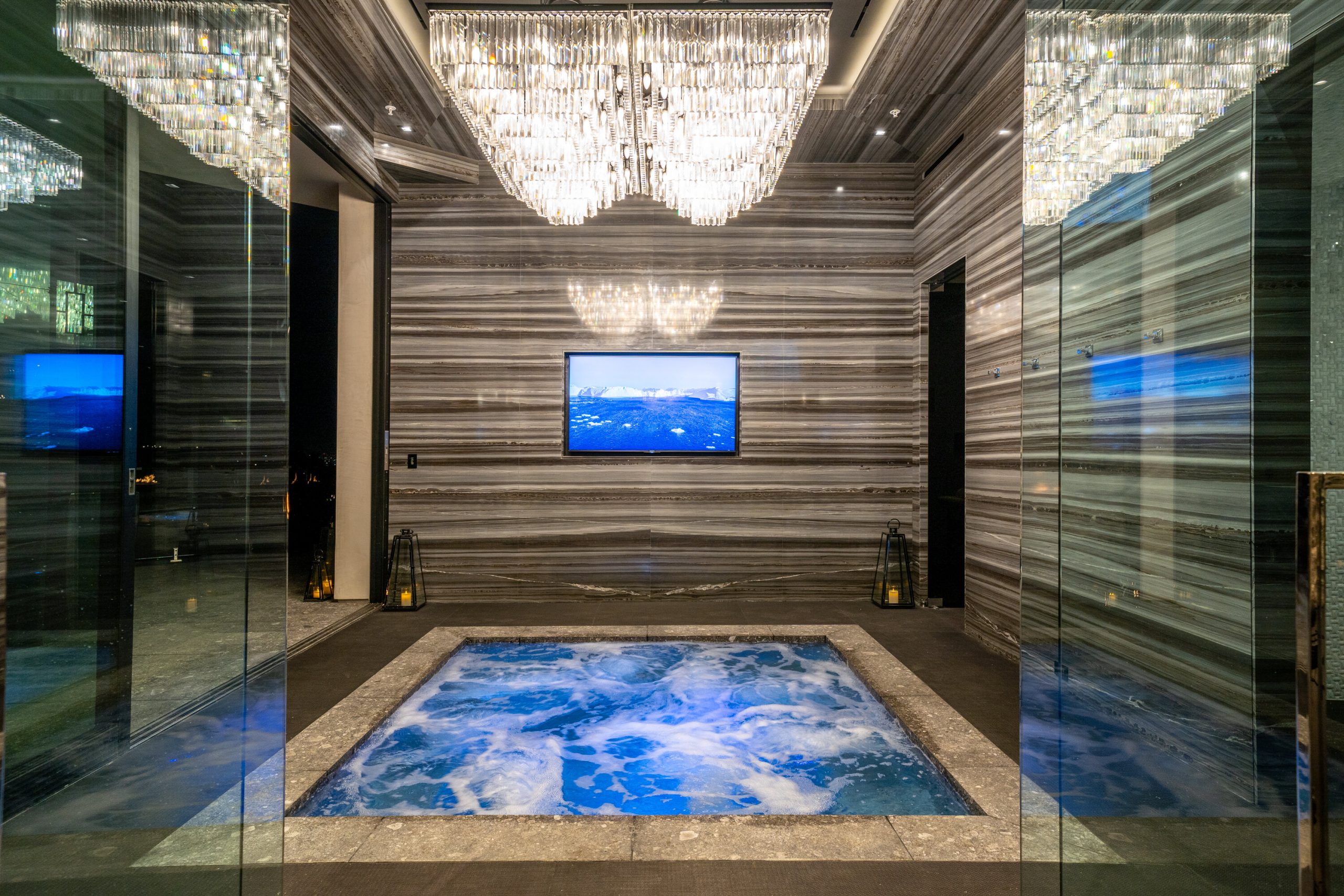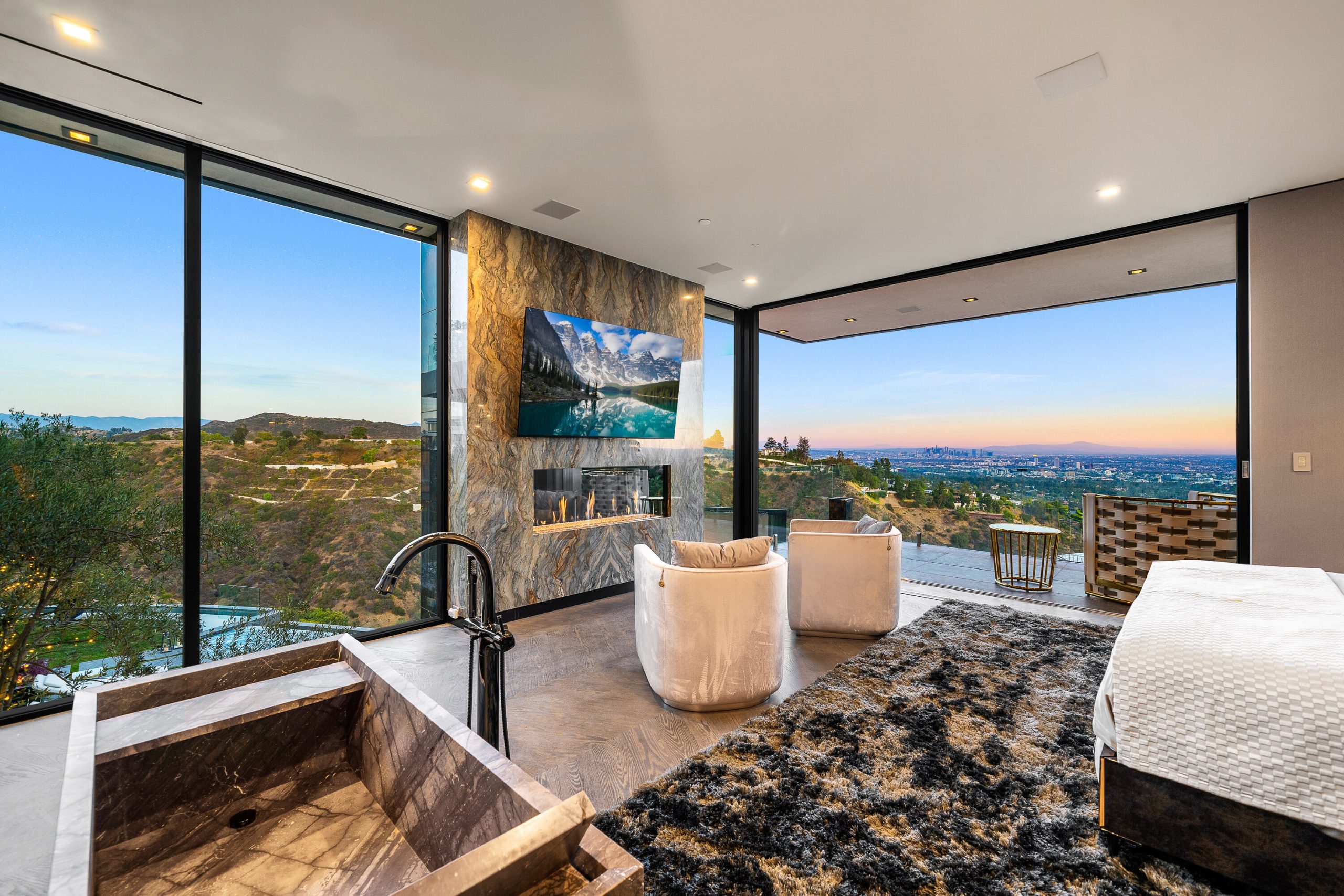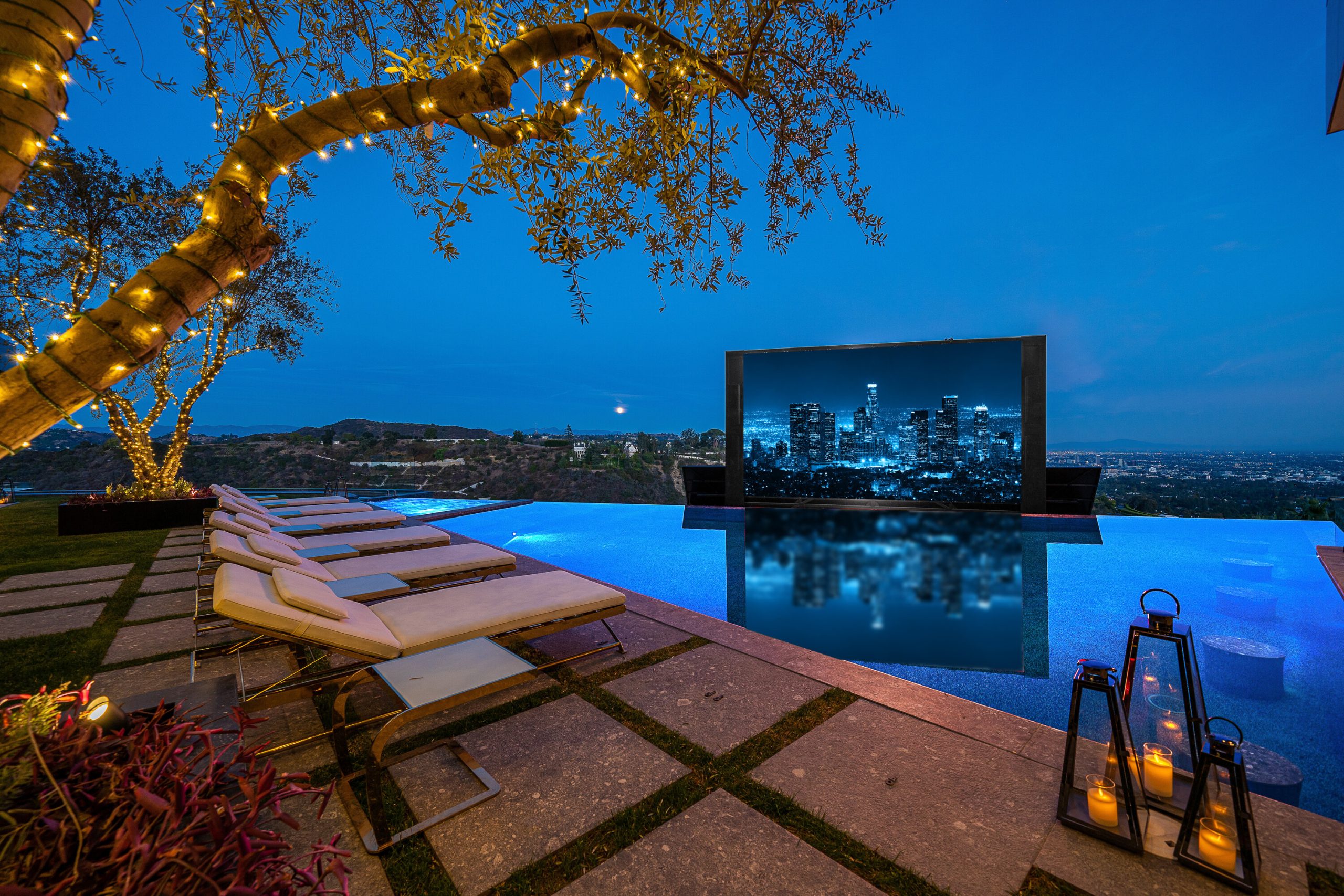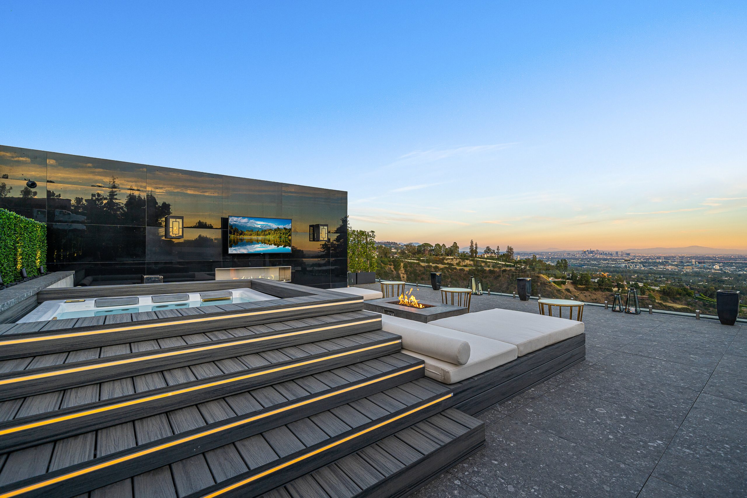 Seller accepts crypto! Experience the pinnacle of lavish splendor and quiet comfort at La Fin, or The End, aptly named as the ultimate, final example of modern decadence and refinement; the be-all and end-all experience in one of the world's most famous and exclusive enclaves. Sited on a two-acre parcel, this magnificent residence offers 12 spacious bedrooms, 17 bathrooms, remarkable amenities, and brilliant panoramic views of Los Angeles. Just beyond the gated motor court, proceed down to the oversized glass entryway to one of the most beautiful and opulent homes the globe over. A spiral staircase surrounds a stunning 44-foot chandelier made of 55,000 crystals, a showstopping centerpiece yet just one of the impressive custom lighting sculptures throughout the home. The main level features a custom stone bar that flows into the formal living area with a massive hand-carved stone latticework fireplace. All furniture was custom-made for La Fin by Italian luxury brand La Contessina. Motorized Fleetwood pocket doors open to the infinity-edge pool with a striking 23-foot LED screen that rises at the touch of a button and a 30-person lounge area with fire pit. The lower level provides a 6,000-square-foot entertainment area with lofty 18-foot ceilings, custom bar, commercial-grade catering facilities, 1,000-bottle wine cellar, cigar lounge, ice-cold vodka tasting room, and a jaw-dropping automated six-car vehicle elevator display. Additional amenities on the lower level include an outdoor lounge area, luxury fitness center with rock climbing wall, spa, steam room with backlit onyx, massage room, and sound-proof cinema. The second level features a grand primary suite with Italian hand-crafted floor-to-ceiling oak cladding, lounge area, coffee bar, spa-like bathroom with Calacatta Gold marble, massive 100-square-foot shower, solid marble vanity, dual showroom-style walk-in closets, and private wraparound balcony with sweeping views, spa, fire pit, and TV. The rooftop deck offers additional outdoor/entertainment space with built-in seating, fire table, video screen, elevated spa, and even more incredible vistas. Staff residences and a detached guest suite offer ample space. Fingerprint technology and security command center provide the utmost privacy and safety. The meticulously designed and curated La Fin is a once-in-a-lifetime Bel Air estate that can only be admired but never replicated.