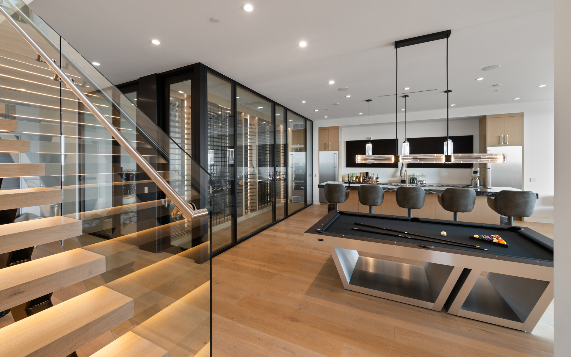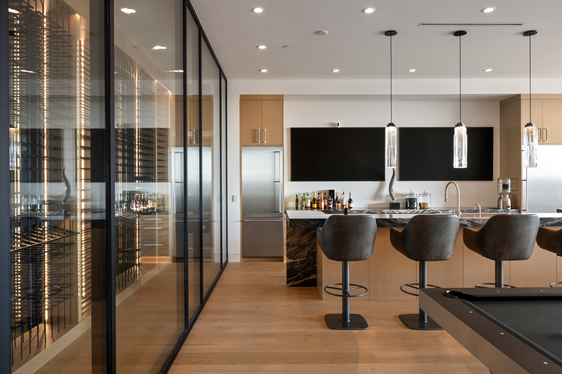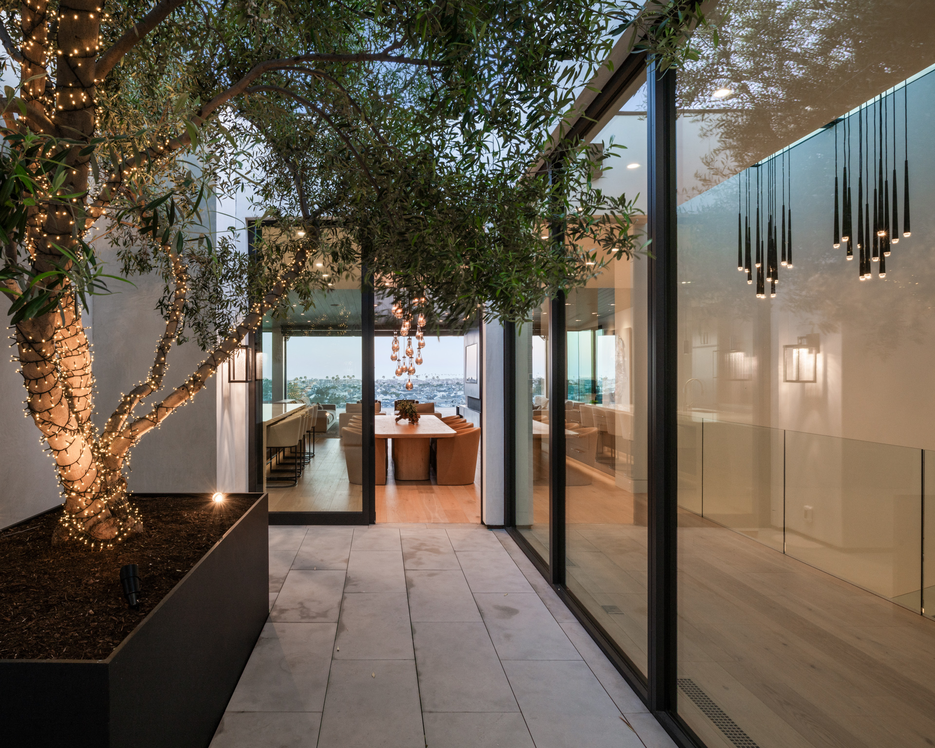 Positioned in the most prestigious front-row enclave of Irvine Terrace, this architectural masterpiece offers an extraordinary opportunity to own one of the most coveted vantage points in all of Newport Beach. Designed by the acclaimed Brandon Architects and encompassing over 7,000 square feet of meticulously curated living space, this residence is a testament to elevated design, bespoke craftsmanship, and uncompromising quality. Framed by unobstructed views of Newport Harbor, Catalina Island, and city lights, the home’s grandeur immediately welcomes you. Soaring 11.5-foot ceilings and wide-plank white oak floors establish a warm, yet sophisticated palette, while custom finishes and architectural details speak to a level of thoughtfulness rarely seen. Crafted for a discerning lifestyle, the floorplan offers 5 expansive bedroom suites, a private office, and 8 artfully designed bathrooms. An integrated Savant smart home system provides seamless control over every element—from lighting and climate to security and entertainment. Every amenity has been conceived with luxury in mind: a private wellness studio and gym, a state-of-the-art screening room, and a 1,300-bottle, climate-controlled wine cellar secured with a biometric security feature. A full entertainer’s bar, elevator, and 4-car garage elevate both convenience and experience. The heart of the home lies in its open concept living and dining spaces, anchored by a chef’s kitchen equipped with Gaggenau appliances, a Quartzite-clad Island, and an adjoining prep kitchen for seamless hosting. Floor-to-ceiling Renlita doors vanish to reveal uninterrupted indoor-outdoor flow, where refined comfort meets dramatic coastal vistas. The primary suite is a private retreat with its own expansive terrace overlooking the harbor, a sleek stone fireplace, and a spa-quality bath complete with soaking tub and steam shower. The walk-in wardrobe—custom-built with suede and leather detailing—is worthy of a private atelier. On the lower level, you will find a secondary primary suite, additional guest quarters, and a grand entertaining lounge open to a resort-style outdoor living space. The infinity-edge pool, built-in BBQ kitchen, and multiple lounge areas offer a front-row seat to Southern California’s most iconic sunsets. This is more than a home—it’s a rare, legacy-caliber estate for the individual who seeks the exceptional.