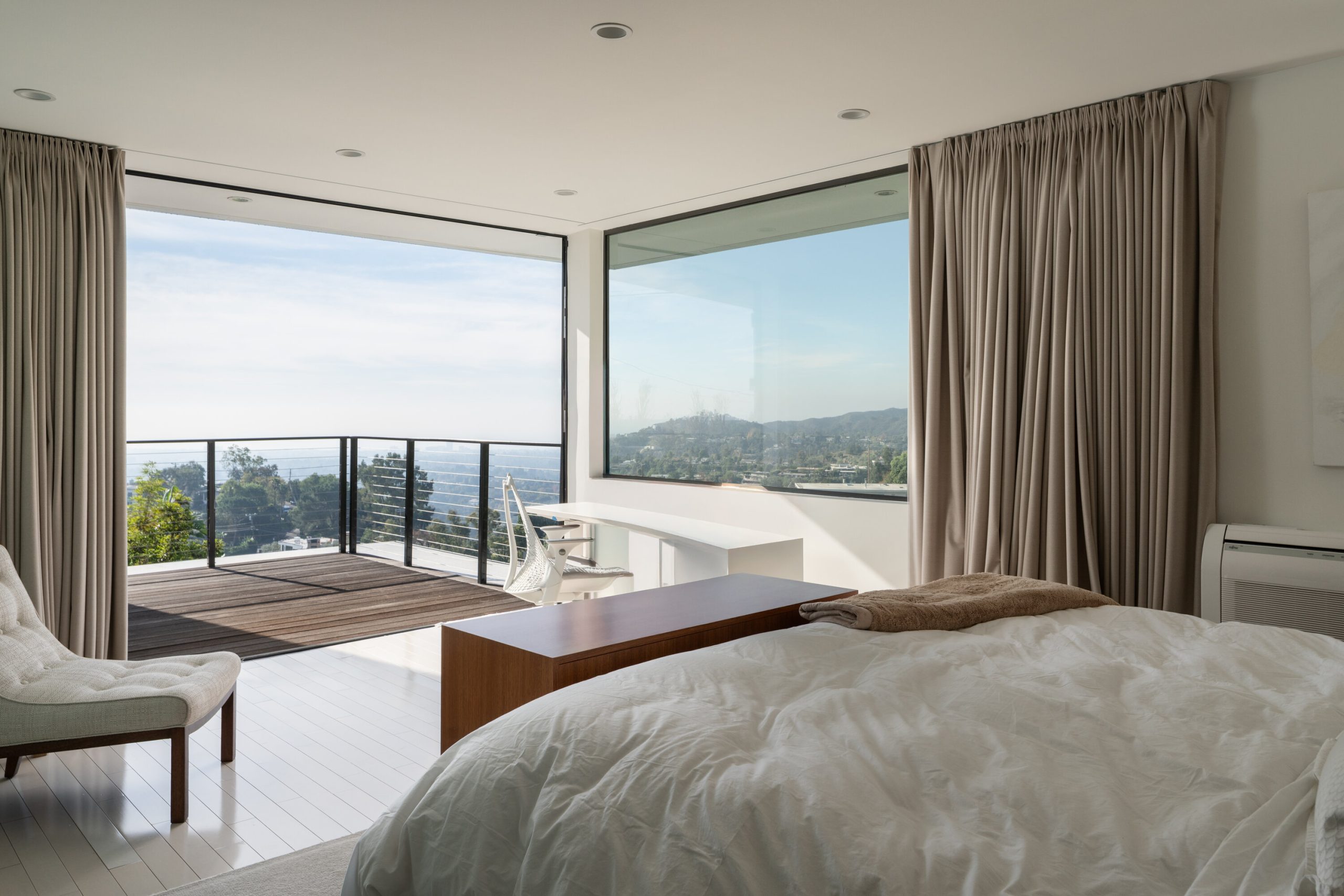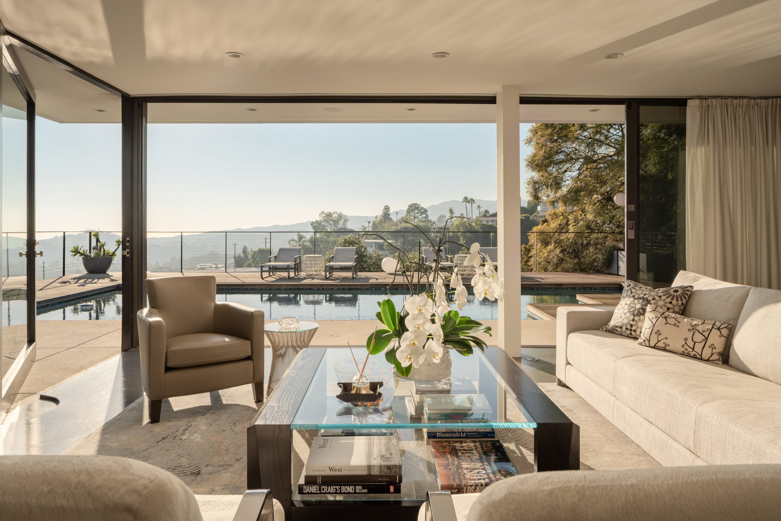 string(1898) "As featured on cover of Los Angeles Magazine, Award-winning 21st century contemporary interpretation of a mid-century home, off prestigious Tigertail Rd, with floor to ceiling windows, huge deck and pool opening to endless ocean views. Perfectly positioned on a quiet cul-de-sac, the home captures explosive city and unobstructed ocean views, including Downtown Los Angeles, Santa Monica, Palos Verdes, Catalina Island, and the Santa Monica Mountains. Every sunset becomes a living art piece. Inside, the home is flooded with natural light, framed by floor-to-ceiling windows and meticulously crafted woodwork. The open-concept kitchen with a soaring ceiling anchors the main level, offering seamless flow to the second story and bringing light into every corner. Each room is intentionally oriented to the view, creating a constant connection to the landscape and the serenity that defines this neighborhood. Upstairs features two ensuite bedrooms, one includes a steam room and each with their own private patios to enjoy the views. There is flexibility to reconvert one of the spacious primary closets back into a third bedroom. A perfect home to entertain and enjoy indoor outdoor California living, the large pool sits over the canyon with nonstop city and ocean views, complemented by a cozy fire pit ideal for gathering, relaxing, and watching sunsets. Thoughtfully designed outdoor lighting and custom uplighting create a dramatic atmosphere in the evenings. Below, the owners terraced a private wellness zone featuring a sauna and cold plunge. Nearby hiking trails complete the idyllic lifestyle. Every detail is turnkey, clean lines, warm textures, thoughtful materials, and a timeless aesthetic that honors the home's architectural roots while elevating it for modern living. For the buyer who prioritizes architecture, privacy, and unforgettable views, this Brentwood home stands alone."