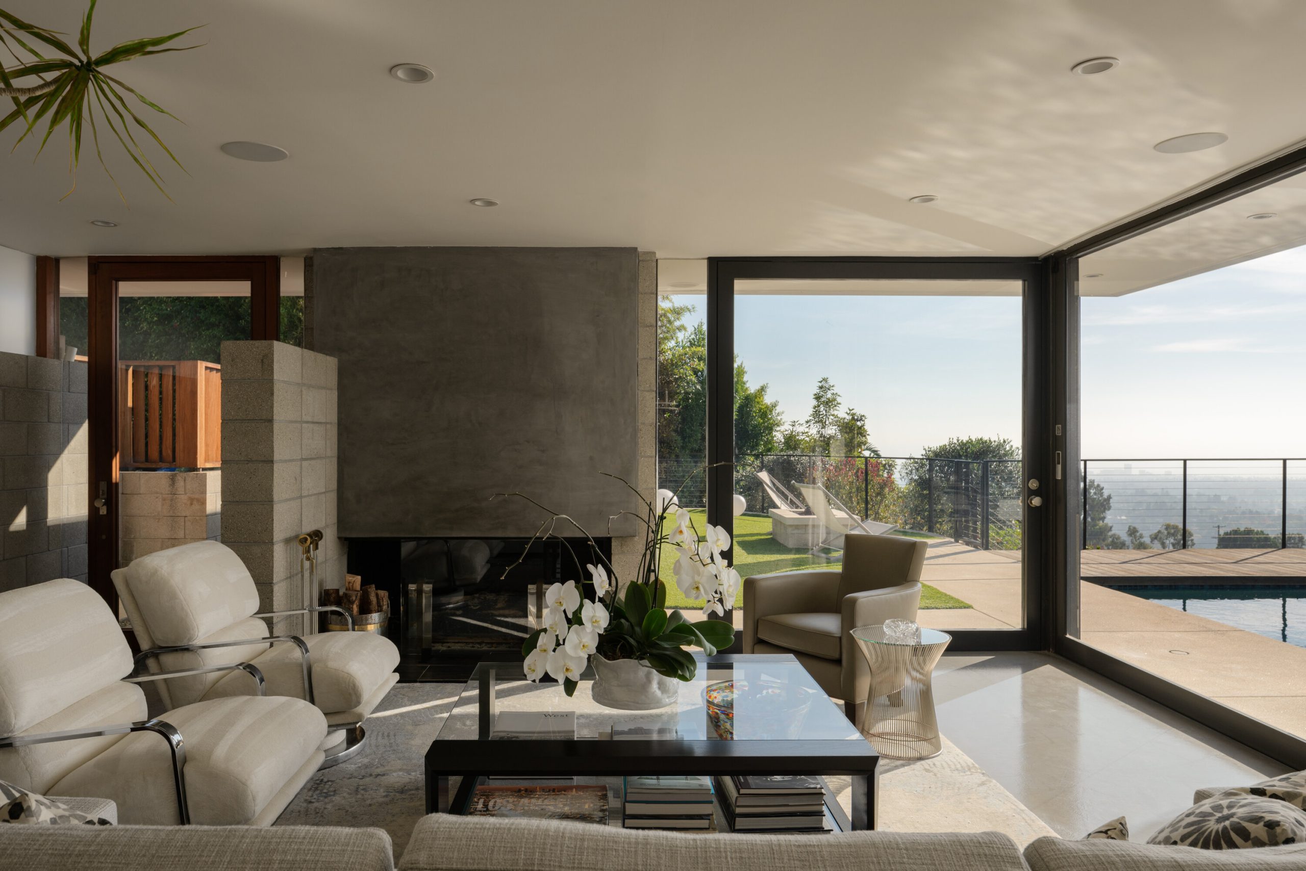 As featured on cover of Los Angeles Magazine, Award-winning 21st century contemporary interpretation of a mid-century home, off prestigious Tigertail Rd, with floor to ceiling windows, huge deck and pool opening to endless ocean views. Perfectly positioned on a quiet cul-de-sac, the home captures explosive city and unobstructed ocean views, including Downtown Los Angeles, Santa Monica, Palos Verdes, Catalina Island, and the Santa Monica Mountains. Every sunset becomes a living art piece. Inside, the home is flooded with natural light, framed by floor-to-ceiling windows and meticulously crafted woodwork. The open-concept kitchen with a soaring ceiling anchors the main level, offering seamless flow to the second story and bringing light into every corner. Each room is intentionally oriented to the view, creating a constant connection to the landscape and the serenity that defines this neighborhood. Upstairs features two ensuite bedrooms, one includes a steam room and each with their own private patios to enjoy the views. There is flexibility to reconvert one of the spacious primary closets back into a third bedroom. A perfect home to entertain and enjoy indoor outdoor California living, the large pool sits over the canyon with nonstop city and ocean views, complemented by a cozy fire pit ideal for gathering, relaxing, and watching sunsets. Thoughtfully designed outdoor lighting and custom uplighting create a dramatic atmosphere in the evenings. Below, the owners terraced a private wellness zone featuring a sauna and cold plunge. Nearby hiking trails complete the idyllic lifestyle. Every detail is turnkey, clean lines, warm textures, thoughtful materials, and a timeless aesthetic that honors the home's architectural roots while elevating it for modern living. For the buyer who prioritizes architecture, privacy, and unforgettable views, this Brentwood home stands alone.
