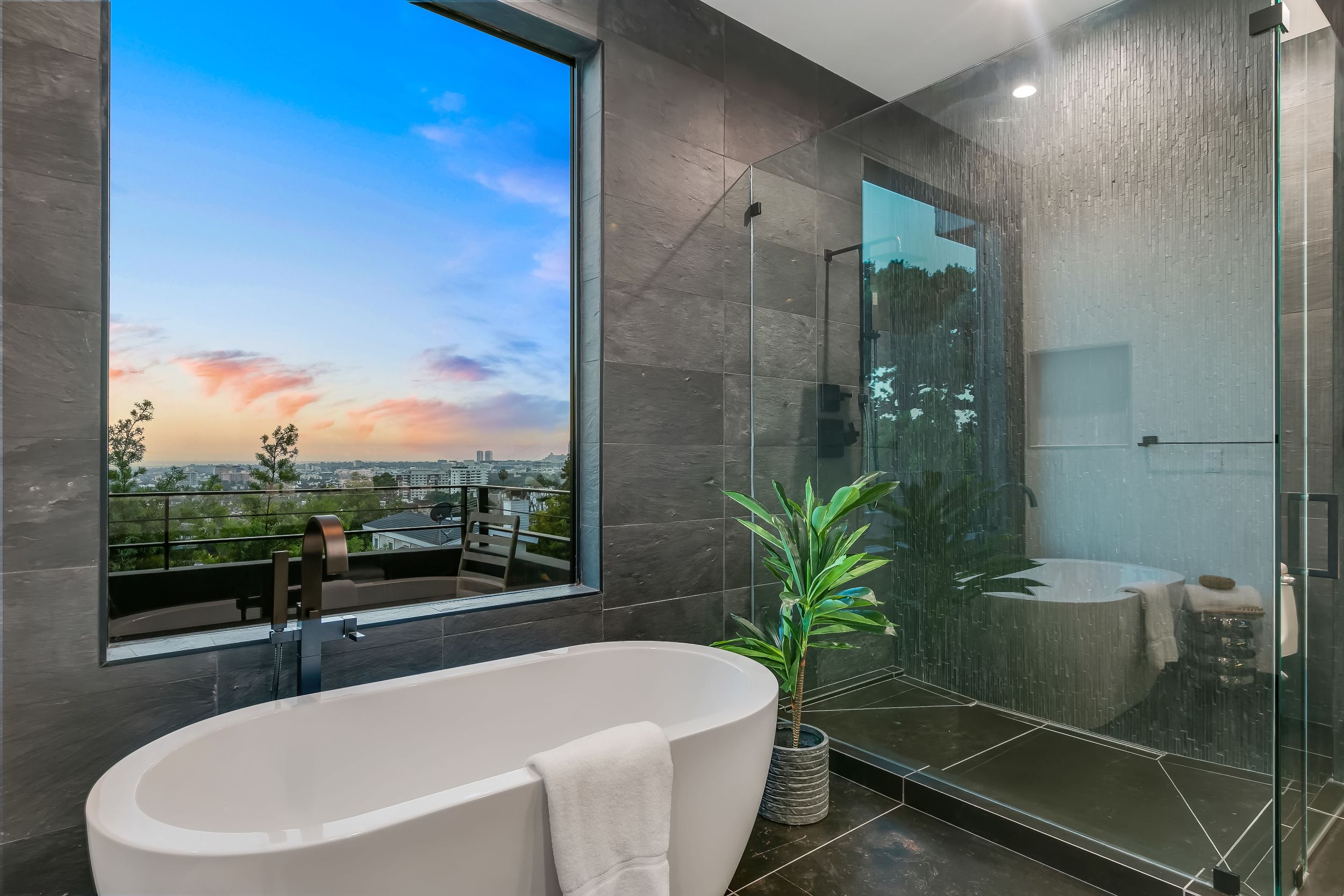 Designed by famed Tim Campbell Studios, this warm architectural contemporary is set on a quiet Cul de sac seconds from the best Sunset Strip has to offer. Jetliner Views, and Organic elements bring Indoor/ Outdoor living to the next level. Newly Constructed from the finest materials, light flows from every angle- Featuring 5 sumptuous bedrooms and 7 bathrooms outfitted with exquisite bespoke finishes and show stopping Master Suite. Incredible outdoor area and pool pavilion with detached guest or gym/ office. Chefs kitchen with Miele appliances opens to entertaining space. Stunning rooftop deck offering one of the city's best views of Downtown to the ocean. 4 Car Parking and incredible potential for rental income with bedroom count and proximity to nightlife.