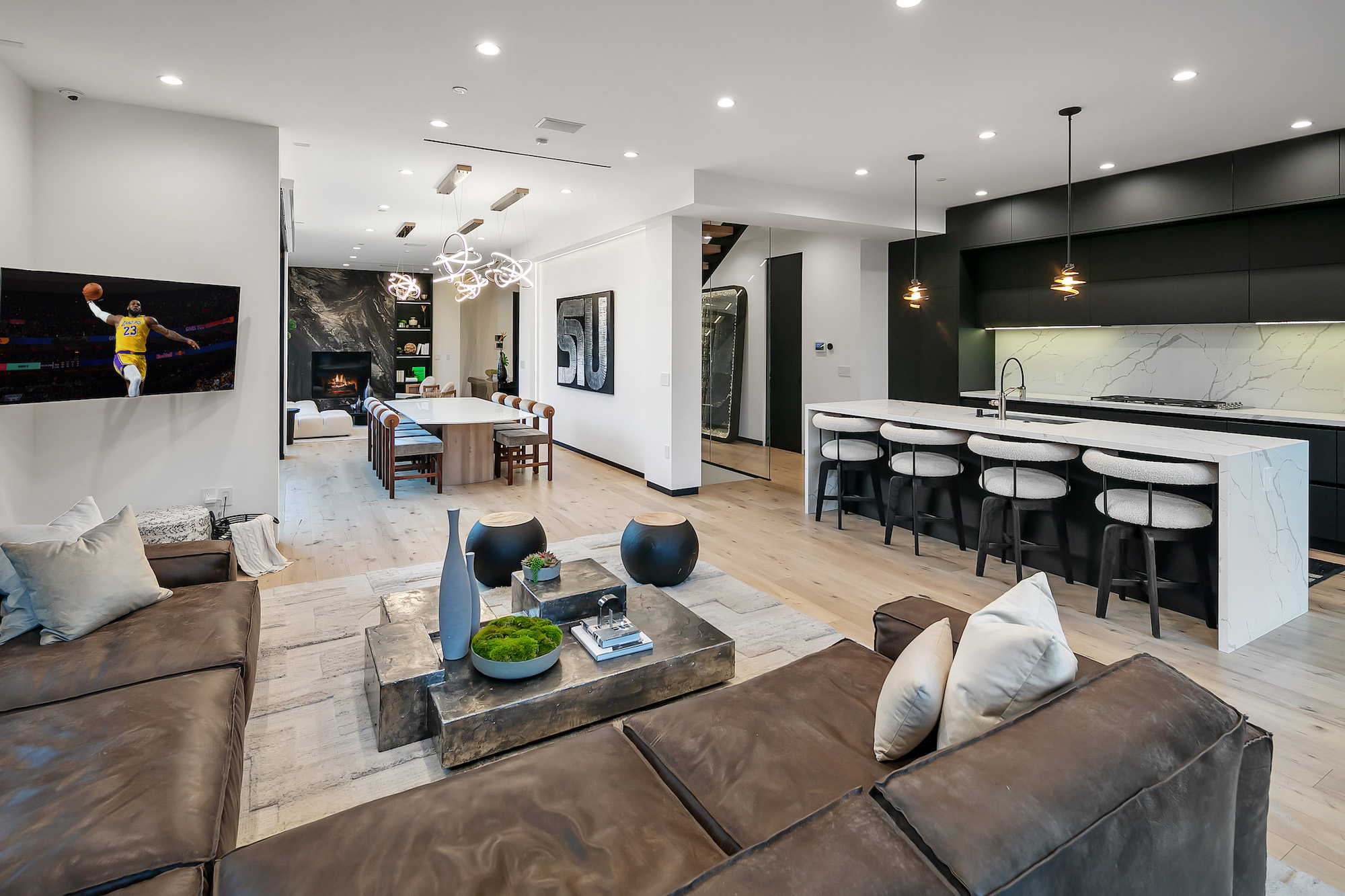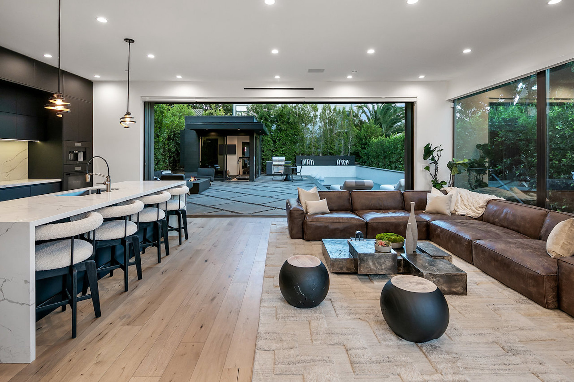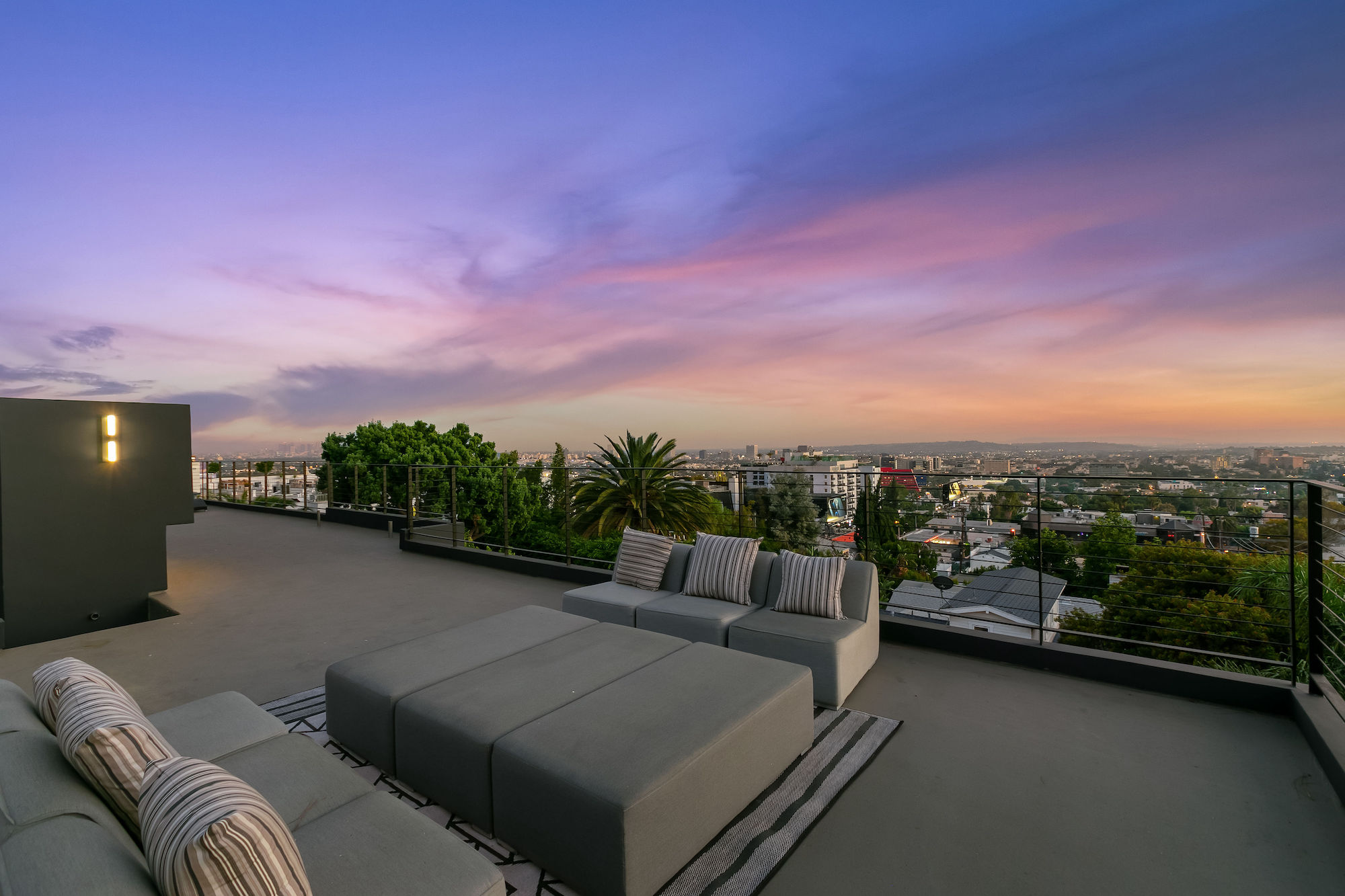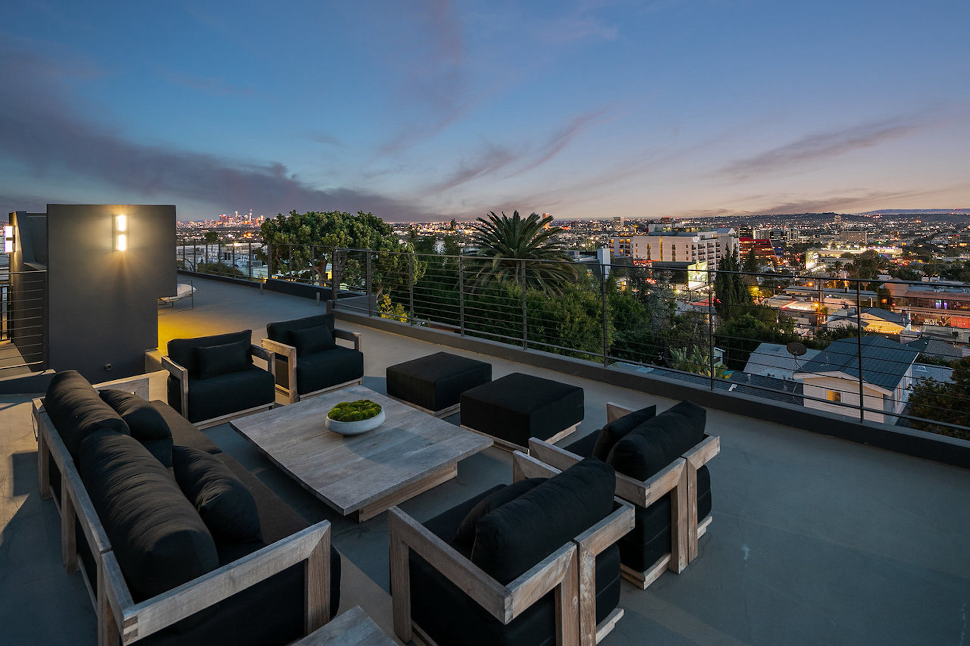 Designed by famed Tim Campbell Studios, this warm architectural contemporary is set on a quiet Cul-de-sac seconds from the best Sunset Strip has to offer. Jetliner Views, and Organic elements bring Indoor/ Outdoor living to the next level. Recently Constructed from the finest materials, light flows from every angle- Featuring 5 sumptuous bedrooms and 7 bathrooms outfitted with exquisite bespoke finishes and show stopping Primary Suite. Incredible outdoor area and pool pavilion with detached guest or gym/ office. Chefs kitchen with Miele appliances opens to entertaining space. Stunning rooftop deck offering one of the city's best views of Downtown to the ocean. 4 Car Parking and incredible potential for rental income with bedroom count and proximity to nightlife.