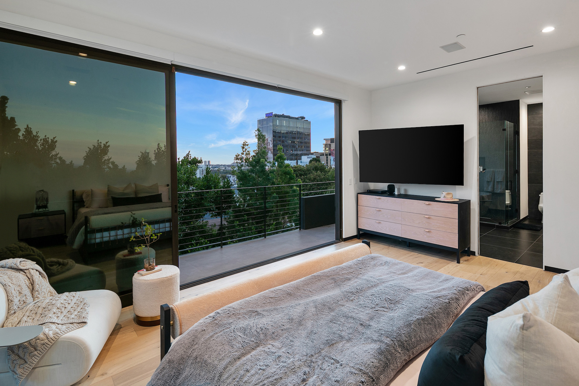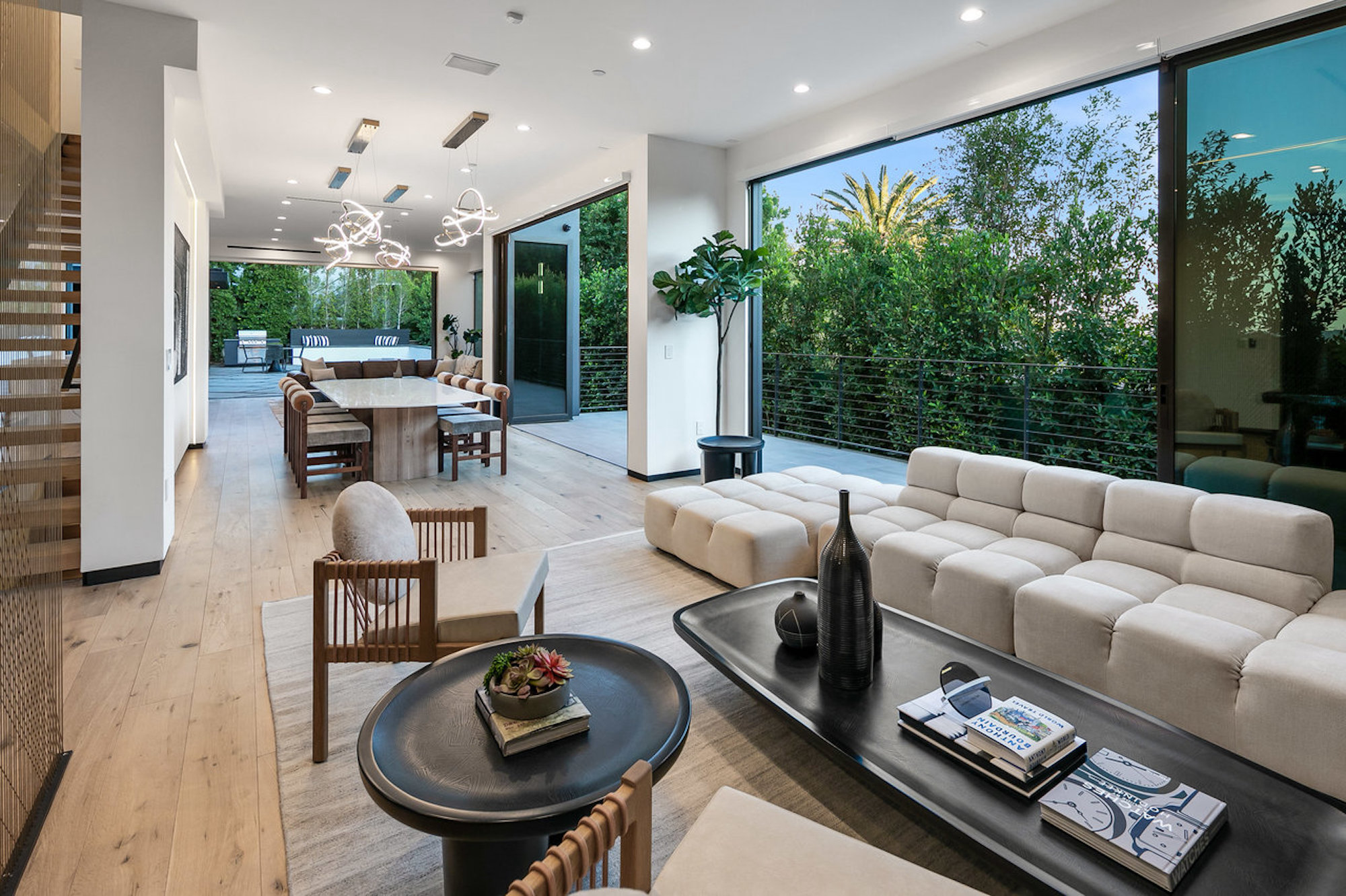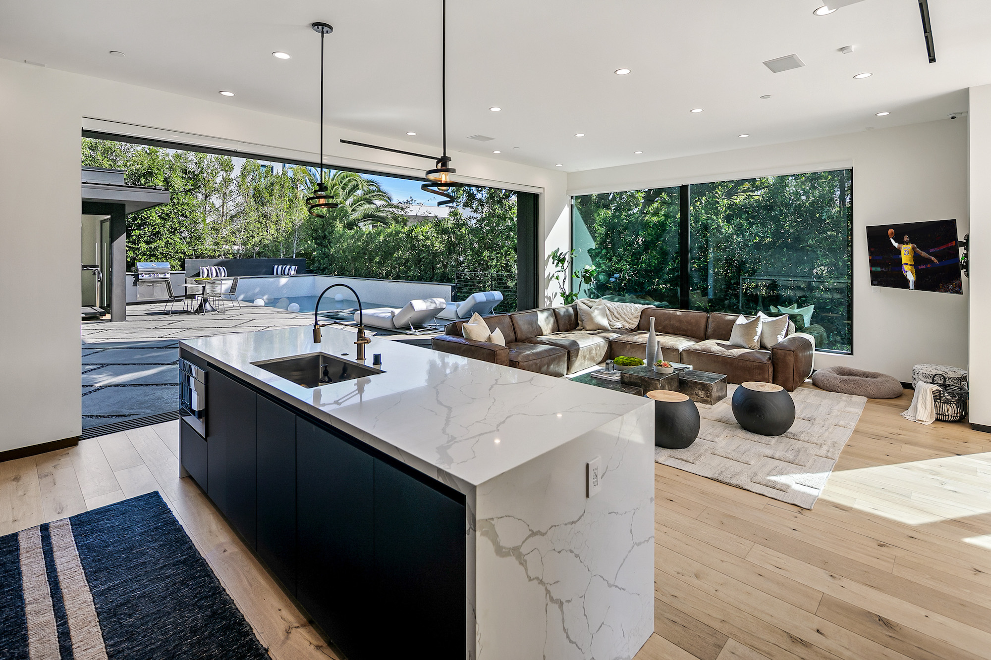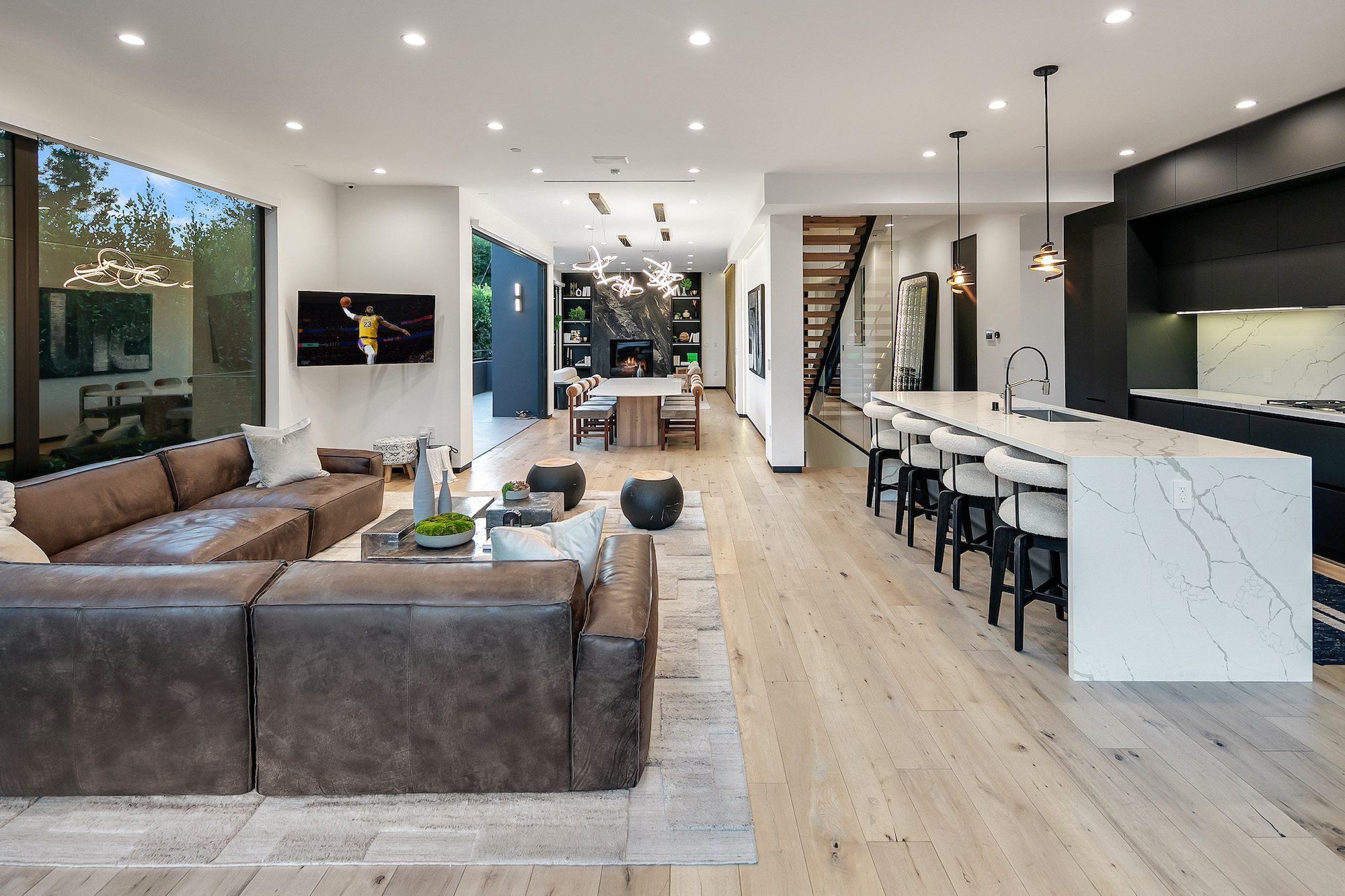 Designed by famed Tim Campbell Studios, this warm architectural contemporary is set on a quiet Cul-de-sac seconds from the best Sunset Strip has to offer. Jetliner Views, and Organic elements bring Indoor/ Outdoor living to the next level. Recently Constructed from the finest materials, light flows from every angle- Featuring 5 sumptuous bedrooms and 7 bathrooms outfitted with exquisite bespoke finishes and show stopping Primary Suite. Incredible outdoor area and pool pavilion with detached guest or gym/ office. Chefs kitchen with Miele appliances opens to entertaining space. Stunning rooftop deck offering one of the city's best views of Downtown to the ocean. 4 Car Parking and incredible potential for rental income with bedroom count and proximity to nightlife.