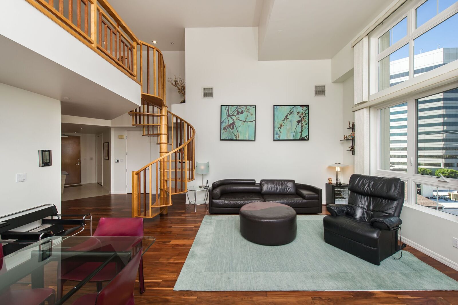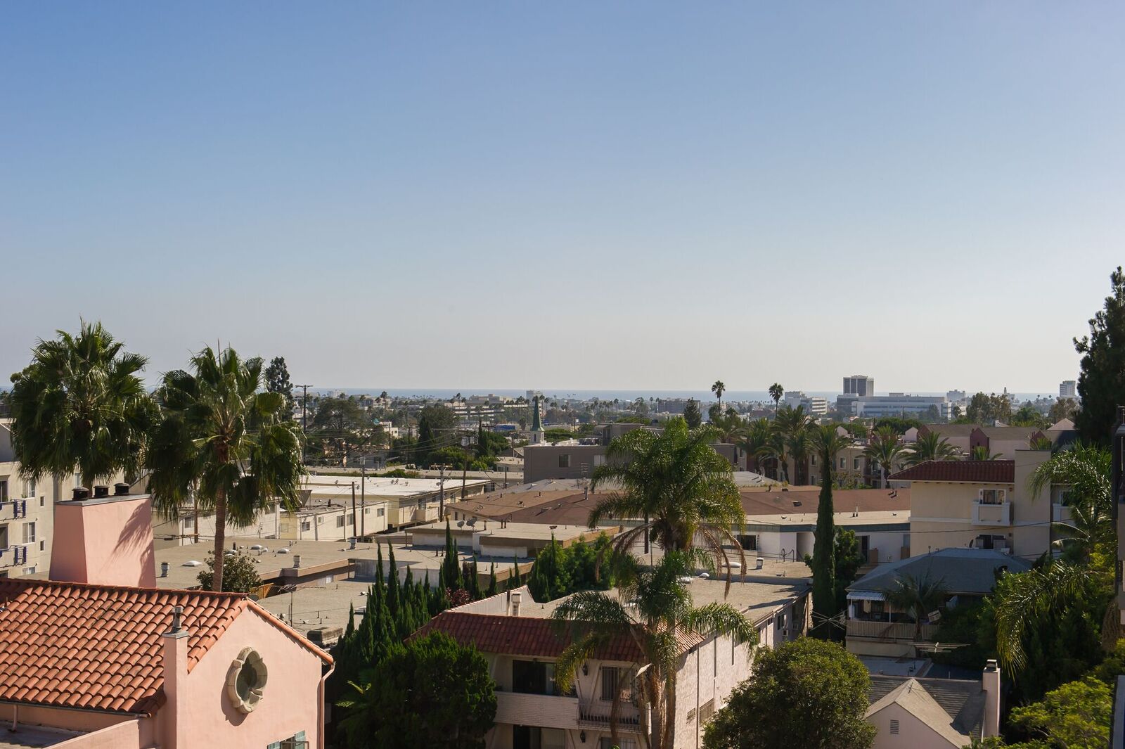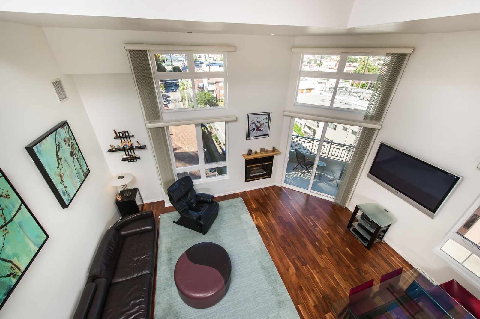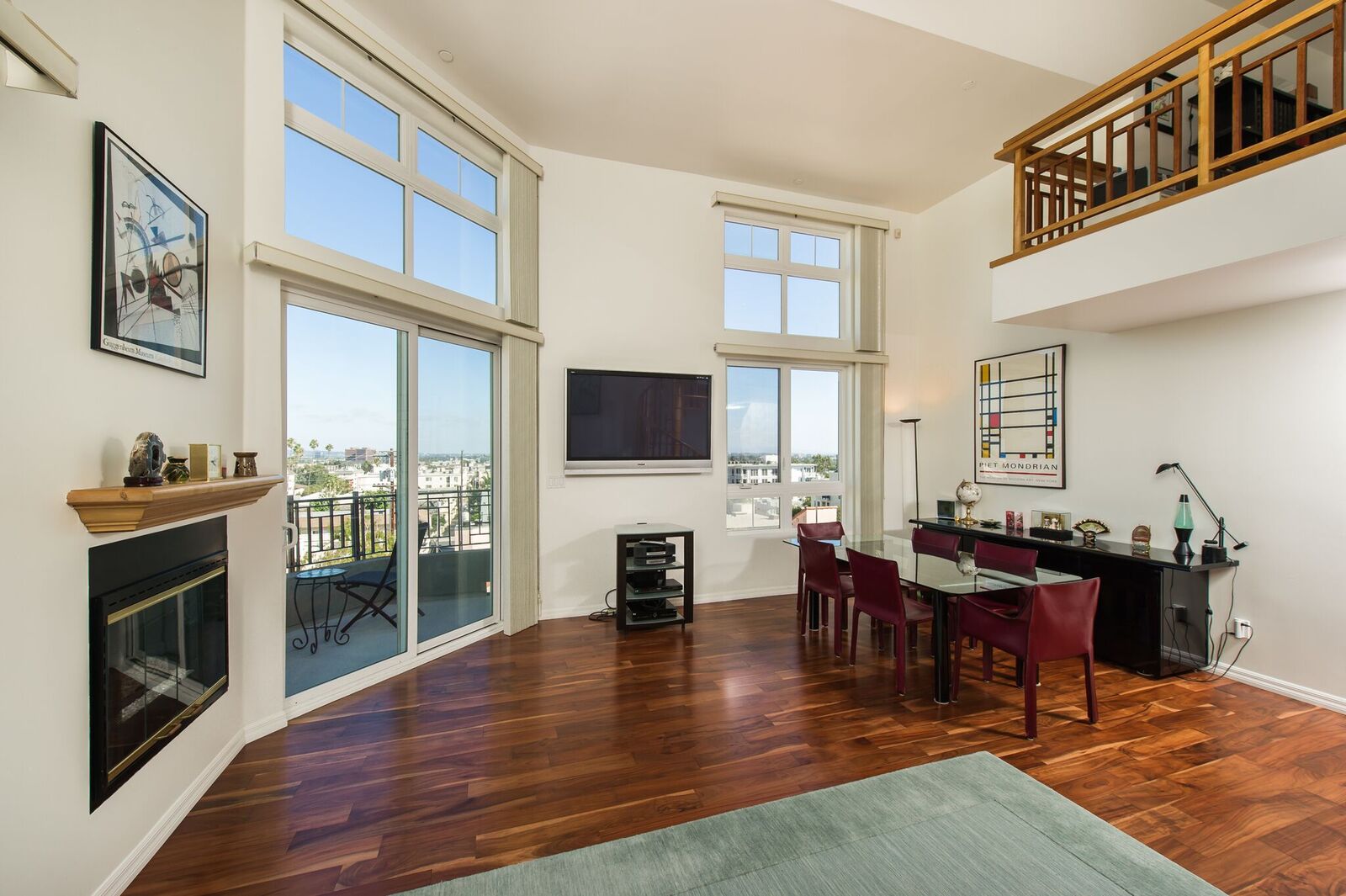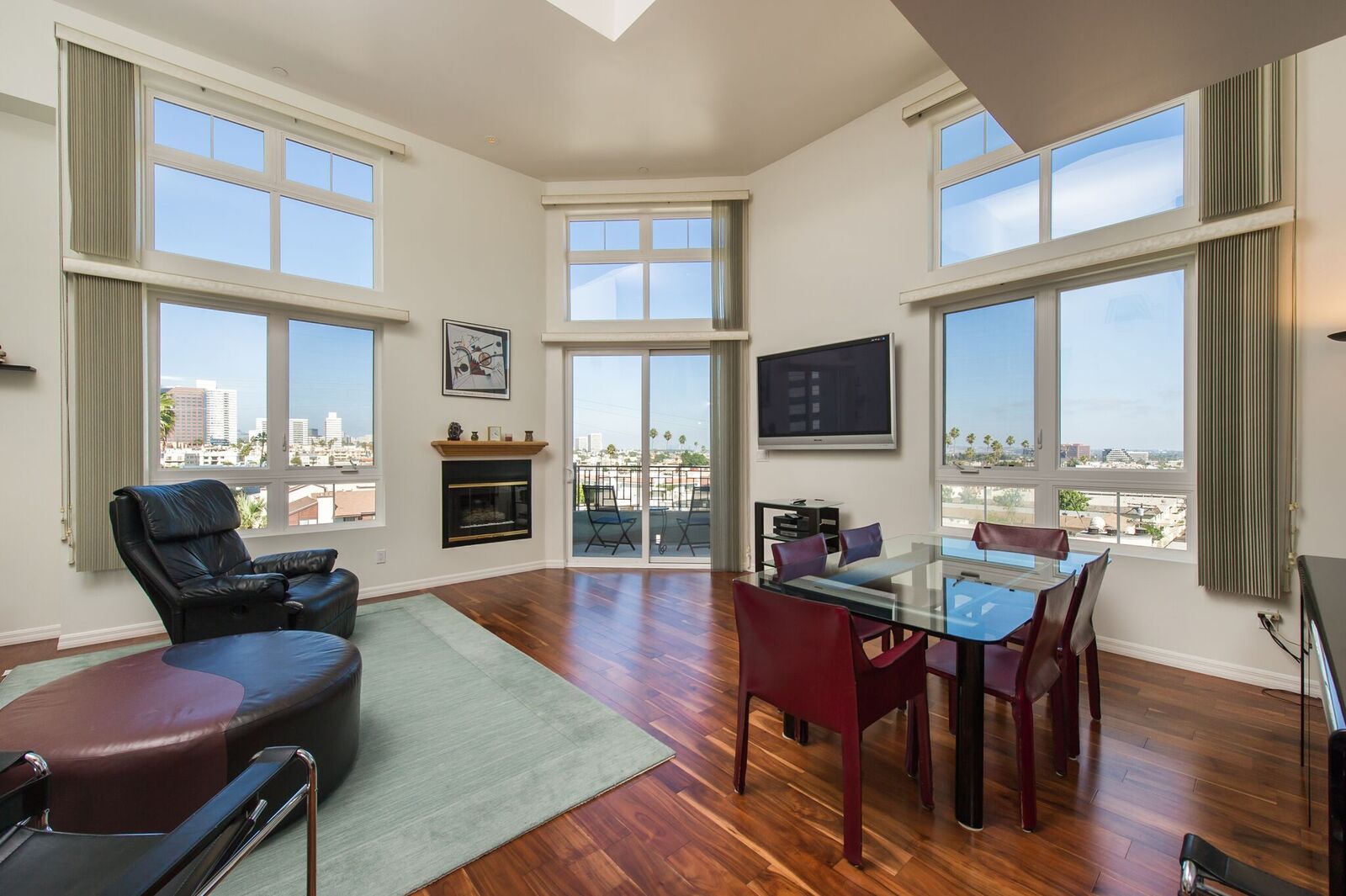 Stunning corner penthouse with 180-degree views from the Pacific Ocean to San Gabriel Mountains. This light and bright 2 bedrooms + loft (or 3rd bedroom) full amenity building with concierge feature views from every room, a dramatic 2 story living room with fireplace and patio overlooking Los Angeles. Italian Porcelain and Acacia Wood floors throughout. Custom kitchen with Maple cabinets, granite counters, and breakfast area. Master suite offers cathedral ceiling, fireplace and walk-in closet, marble counters and floors in both bathrooms, generous sized 2nd bedroom and large loft overlooks living room which could also be used as 3rd bedroom, office, gym, etc. The unit also includes 3 car parking, laundry room, storage unit, security and only 1 common wall. The building was renovated in 2010, with 24 guest parking, full amenities including doorman, earthquake, gym, pool, spa, sauna and 2 electric vehicle charging stations.