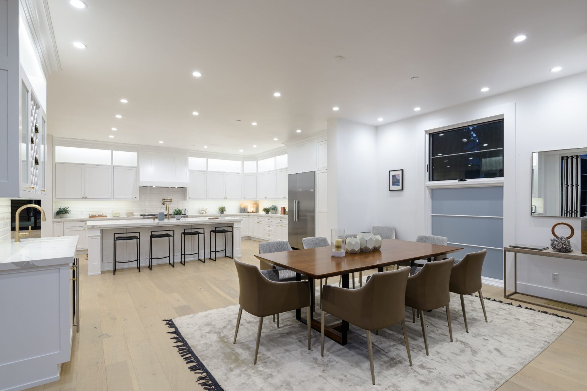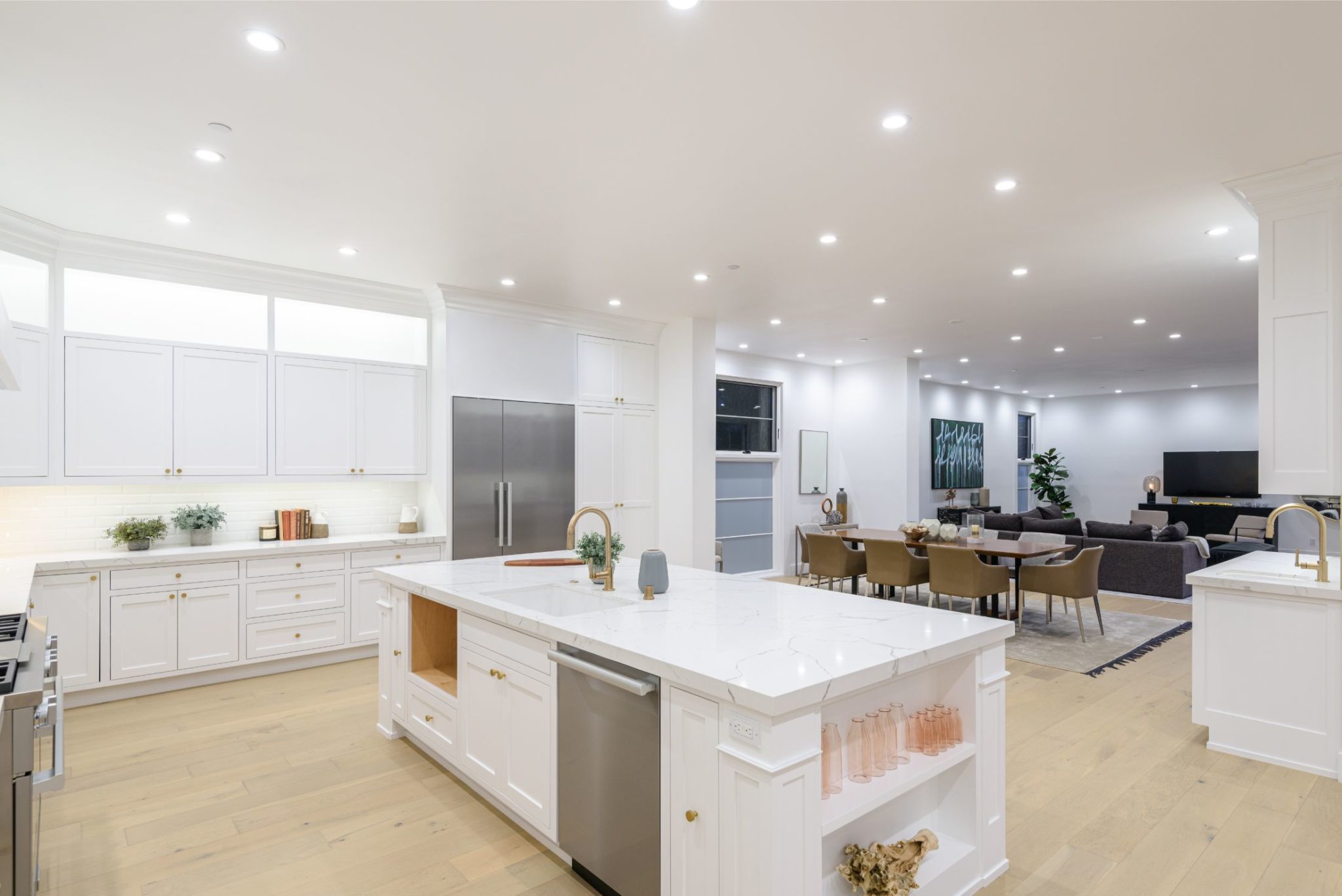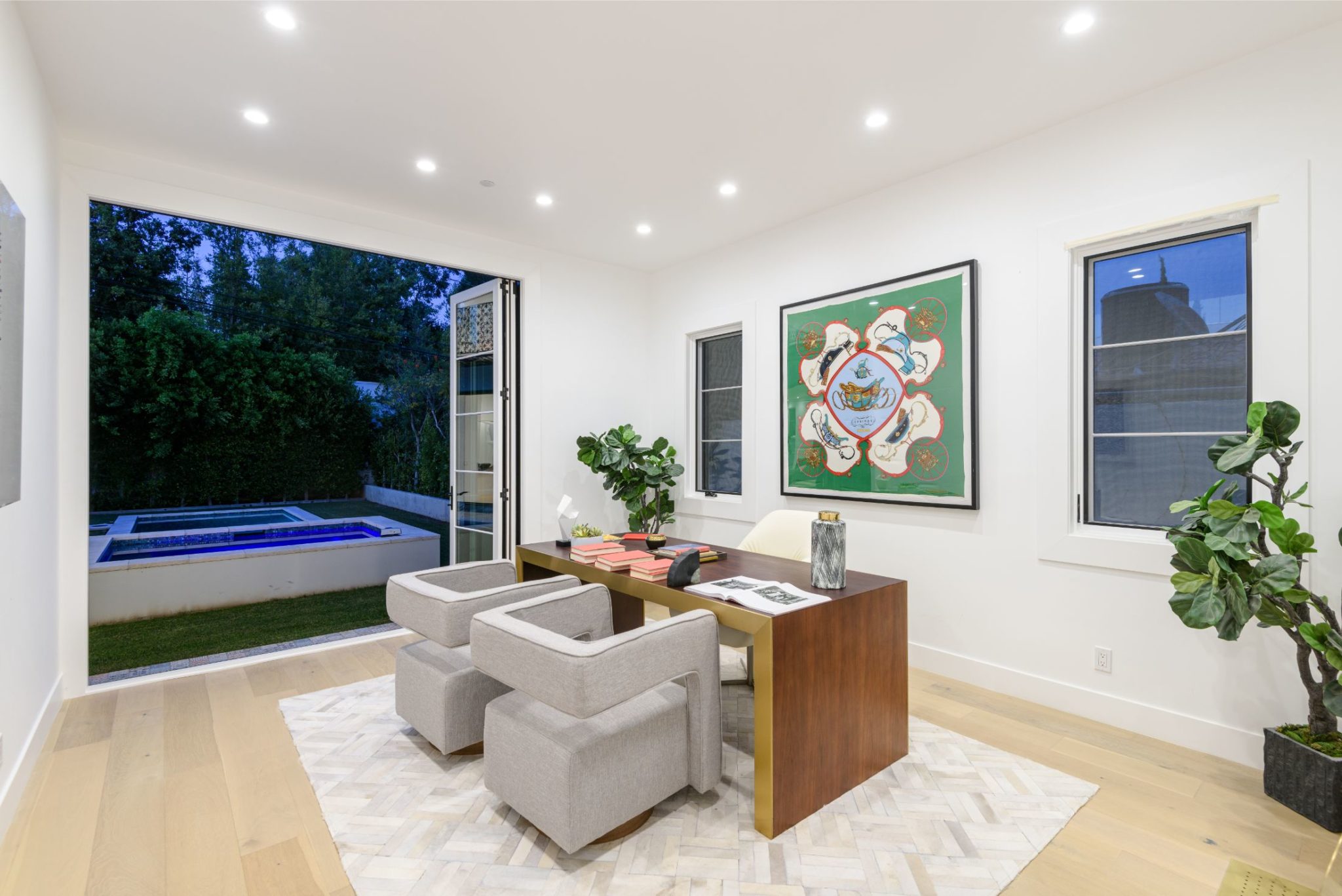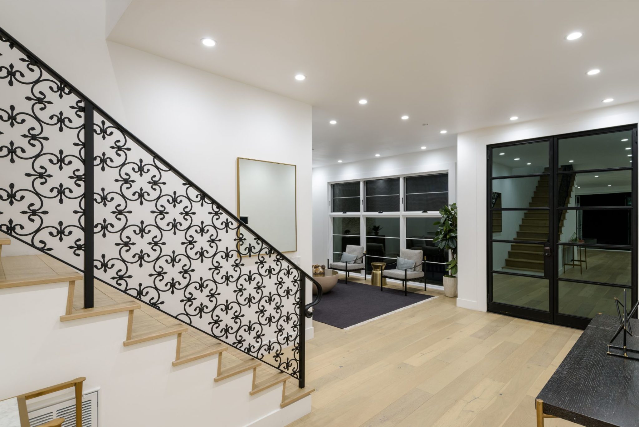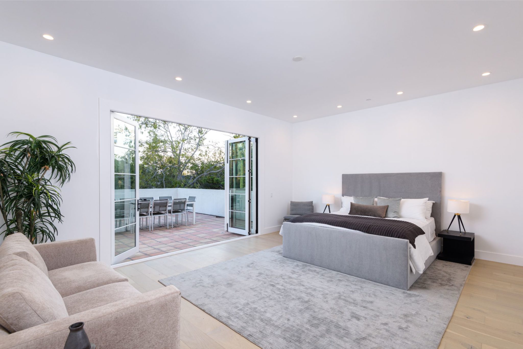New construction with the perfect combination of old world Spanish charm and contemporary design. A gate providing privacy and security with a large motor court lies before this incredible 4770 sq.ft home with approximately 3500 sq. ft of outdoor terraces. Double glass steel doors lead you into the open floor plan with 10' ceilings and French oak floors throughout. An entertainers dream with an enormous great room that flows into a custom kitchen with Calcutta marble countertops and island, maple Shaker cabinets, Miele appliances and brushed brass fixtures. Multiple sets of Lincoln bi-fold doors open out to the grassy yard and saltwater pool and jacuzzi.Two additional bedrooms and separate laundry room complete the downstairs. Three en-suite bedroom upstairs features a master with sitting area, Carrera marble bathroom with large rain shower, separate steam shower and freestanding soaking tub. The private rooftop deck has multiple sitting areas.