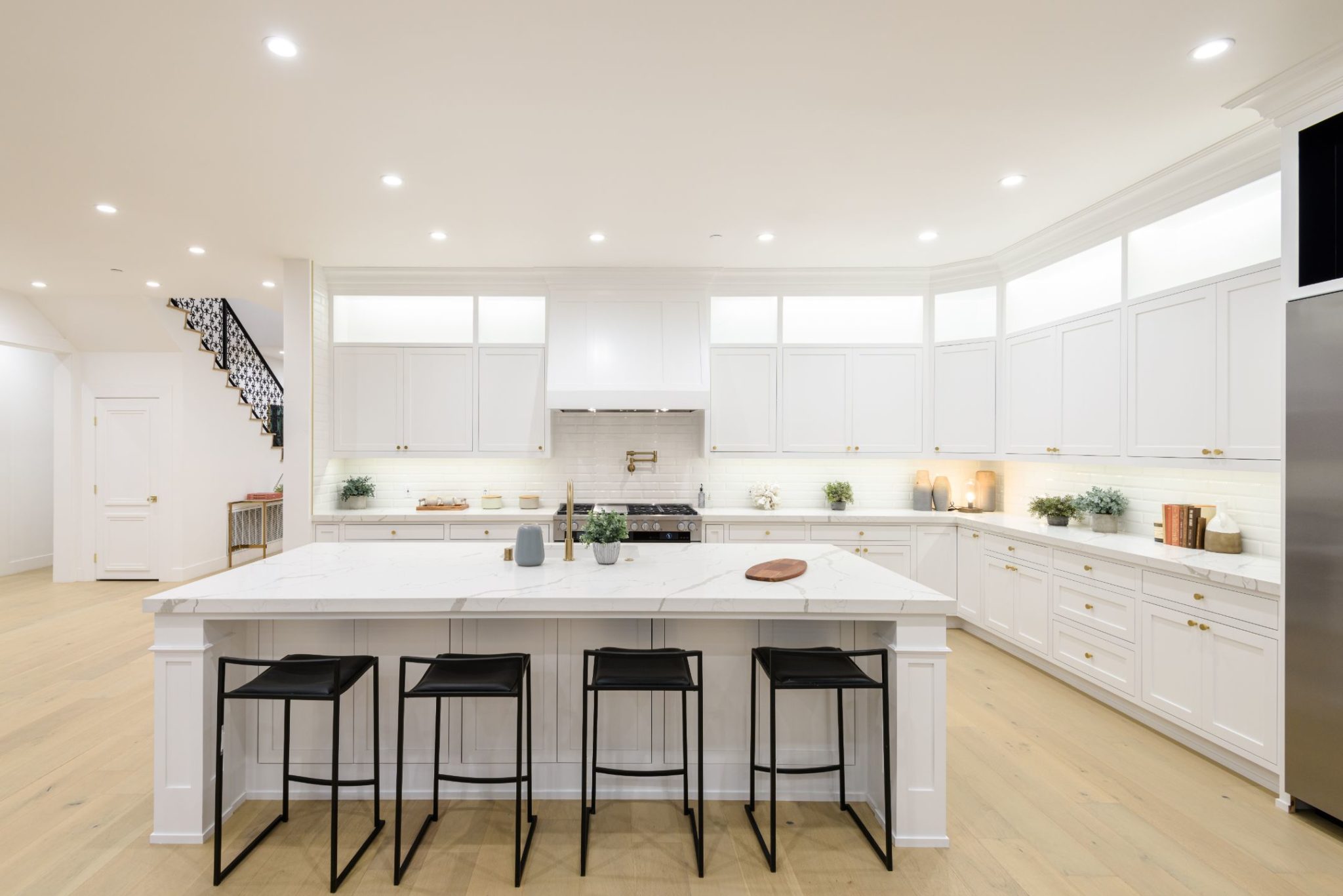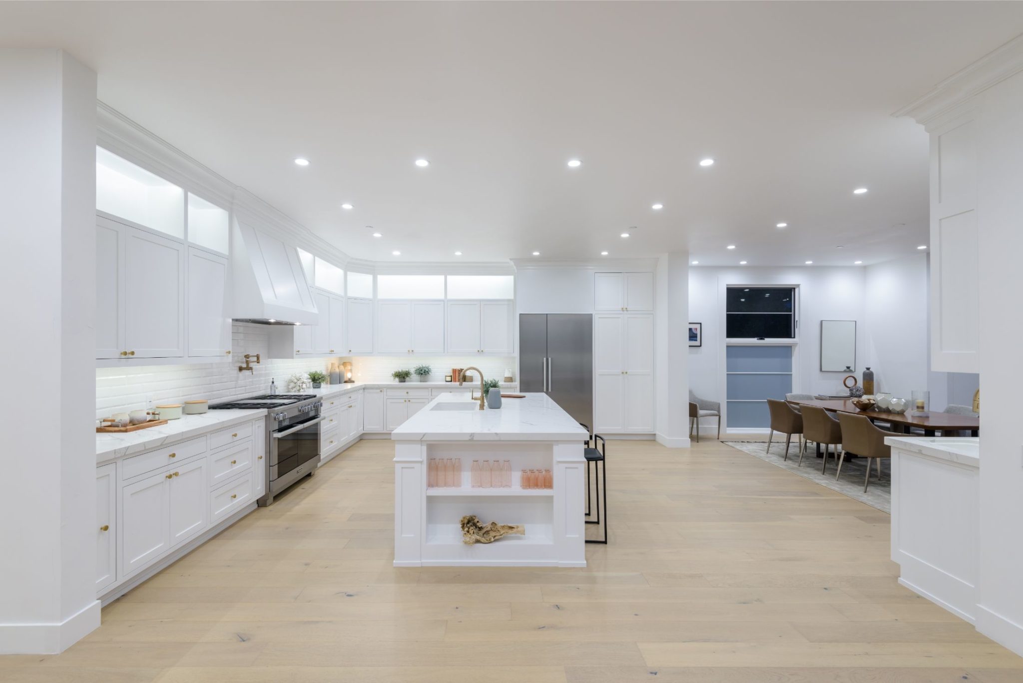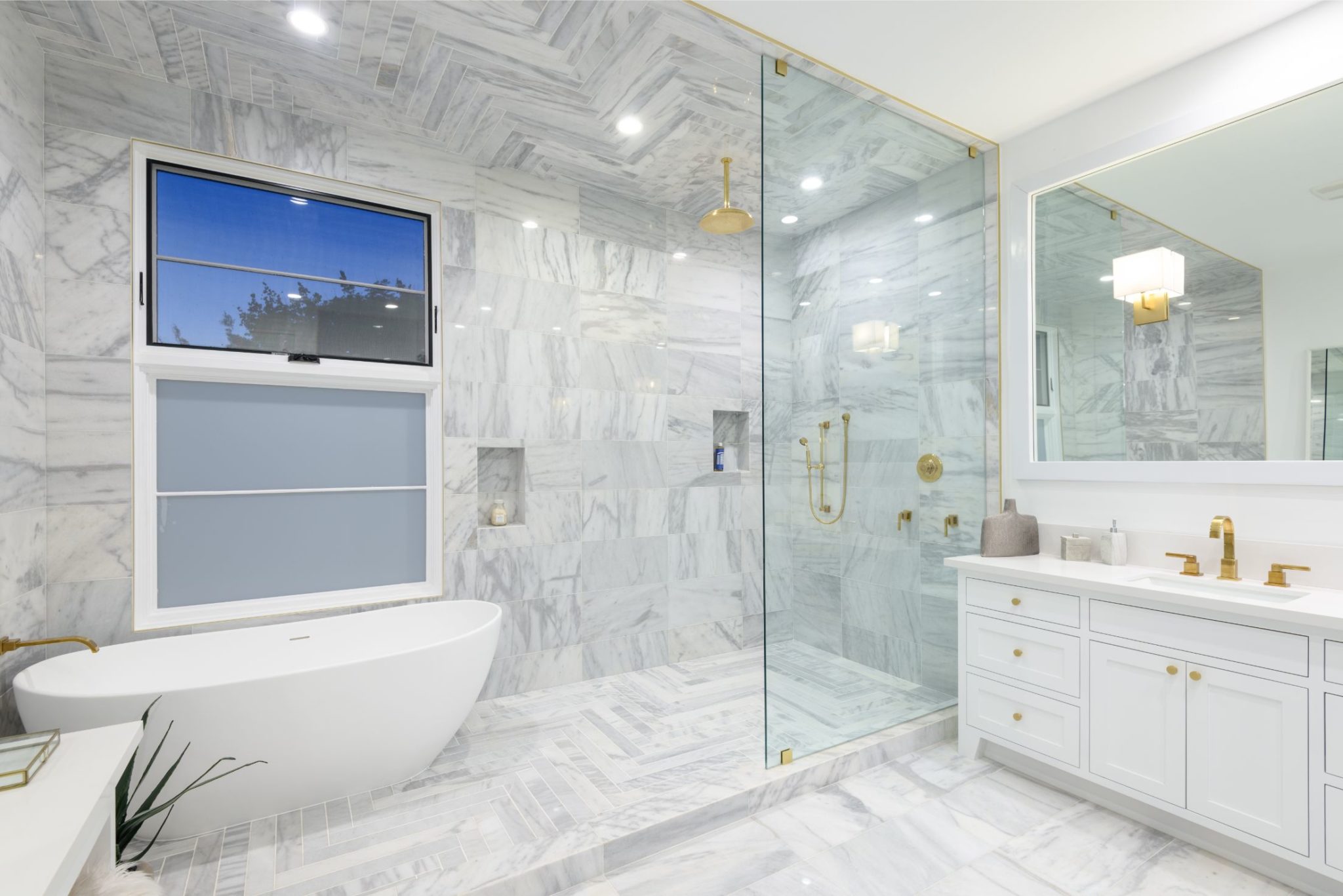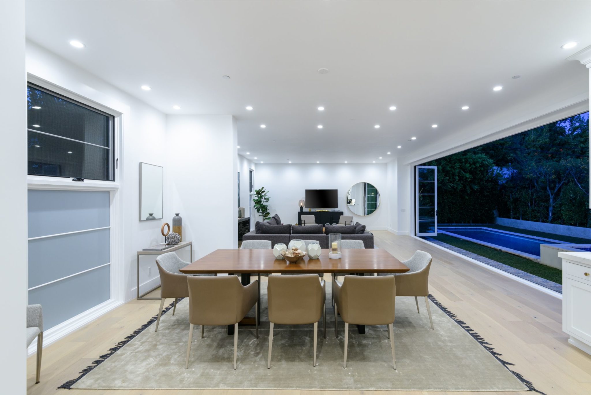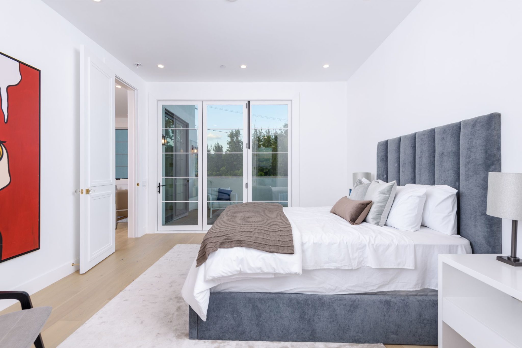 New construction with the perfect combination of old world Spanish charm and contemporary design. A gate providing privacy and security with a large motor court lies before this incredible 4770 sq.ft home with approximately 3500 sq. ft of outdoor terraces. Double glass steel doors lead you into the open floor plan with 10' ceilings and French oak floors throughout. An entertainers dream with an enormous great room that flows into a custom kitchen with Calcutta marble countertops and island, maple Shaker cabinets, Miele appliances and brushed brass fixtures. Multiple sets of Lincoln bi-fold doors open out to the grassy yard and saltwater pool and jacuzzi.Two additional bedrooms and separate laundry room complete the downstairs. Three en-suite bedroom upstairs features a master with sitting area, Carrera marble bathroom with large rain shower, separate steam shower and freestanding soaking tub. The private rooftop deck has multiple sitting areas.