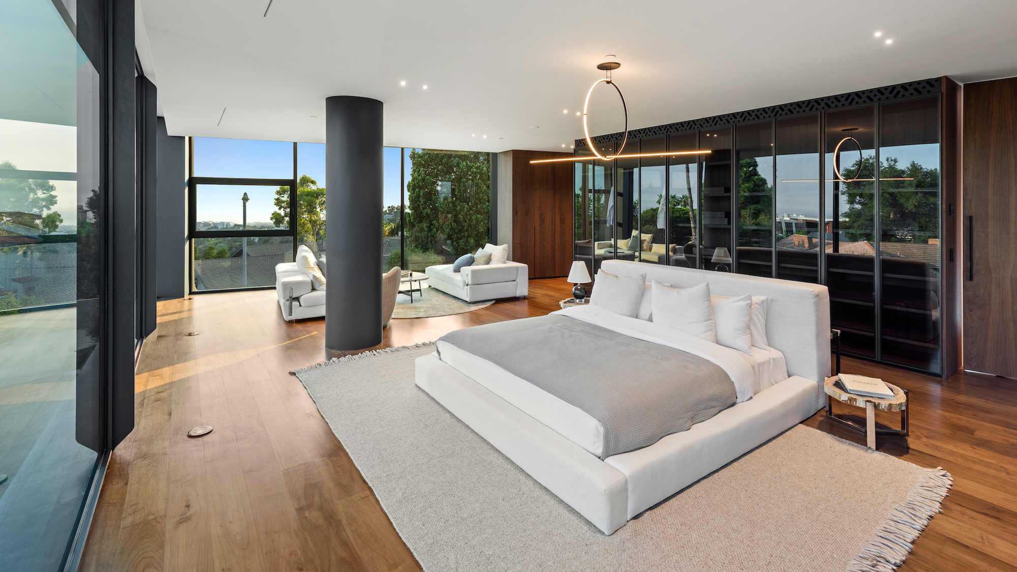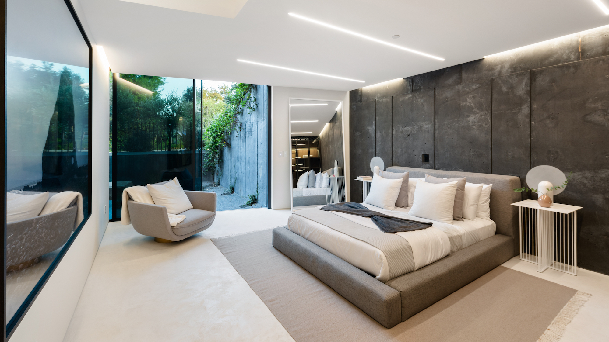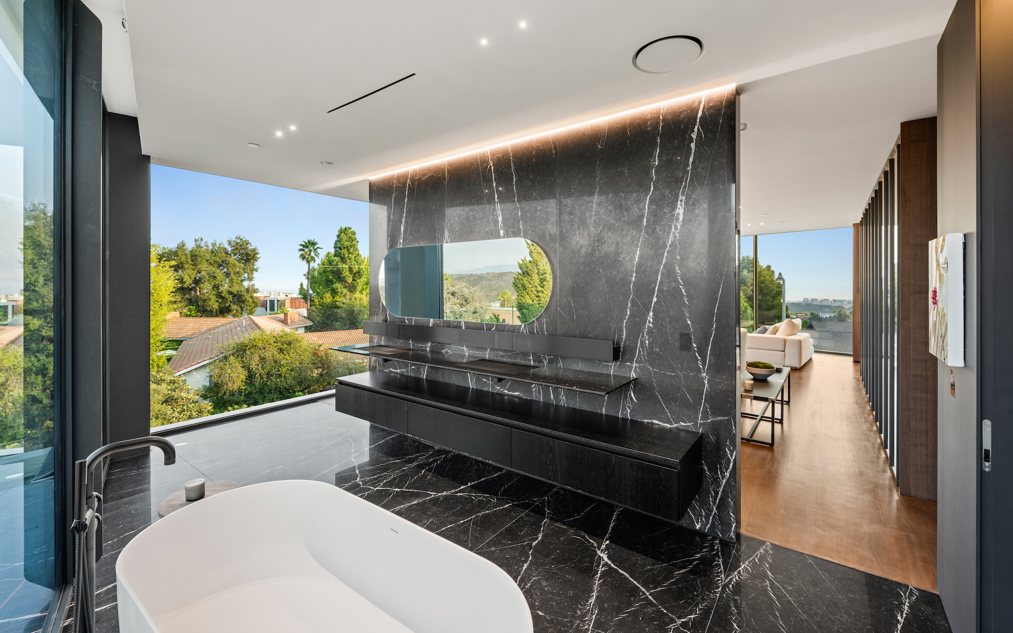 string(2596) "Recognized as a work of art and beauty, this property has already won TEN Architectural awards. Situated in the highly coveted hills of Bel Air sits this 2022 new construction, stunningly reimagined, automotive inspired 4-bedroom, 5-bathroom property that was CNC milled from digital design. Showcasing a dynamic 16-foot cantilever for the second floor, creating an impressive canopy and shaded prelude, this one-of-a-kind property reveals unique design and custom finishes that are second to none. The split-level architecture with central stairs alongside the frameless glass elevator cabin allows an abundance of bright, natural light that is all consuming. Floor to ceiling Belgian glass windows and a mechanized door system allow a seamless indoor/outdoor flow to the multiple decks, side, and back yard. The main level includes an expansive living room with fireplace, soaring ceilings, and family room. Ascend up the steps to the dining space and gourmet chef's kitchen that is equipped with DOCA luxury cabinetry and Dekton door-faces, countertops, and walnut recess detailing, all while opening up directly to the backyard with lush landscaping and a large pool/spa. Up the stairs or elevator, make your way to the spacious primary suite containing glass closets furnished with integral lighting, amber doors, a separate sitting room, and spa-like bathroom with marble slab walls and flooring with matching Agape sinks and faucets - all looking out to incredible views from the Getty to the Pacific. Included on this upper level is the rooftop deck that allows for prime views all the way to the Pacific Ocean, and is built with a raised pedestal floor system that eliminates standing rainwater. The Museum-quality basement grand room sports exposed raw black concrete walls that juxtaposes with the refined house textures and furnishings while housing the felt wall and cork floor home theatre that is designed with luxury minimalistic aesthetics and a custom built integral diffused ceiling light. There are three additional bedroom and bathrooms on the lower floor that are also equipped with glass closets and separate en-suite bathrooms with Graff luxury fixtures, wall-hung Catalano toilets, and imported Spanish tile work. Additional features include a 3-car attached garage, recessed space for future solar panel integration on the roof, minimal linear and pinhole LED lighting design for ambient and task lighting, recessed wall and ceiling housing for smart home keypads and devices, and seamless high quality plaster flooring and walls in select rooms and the exterior facade."