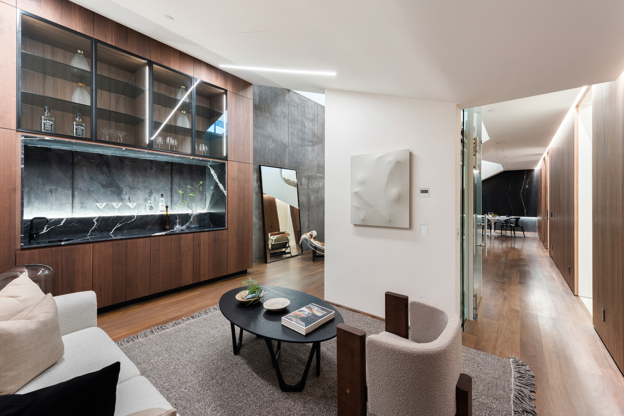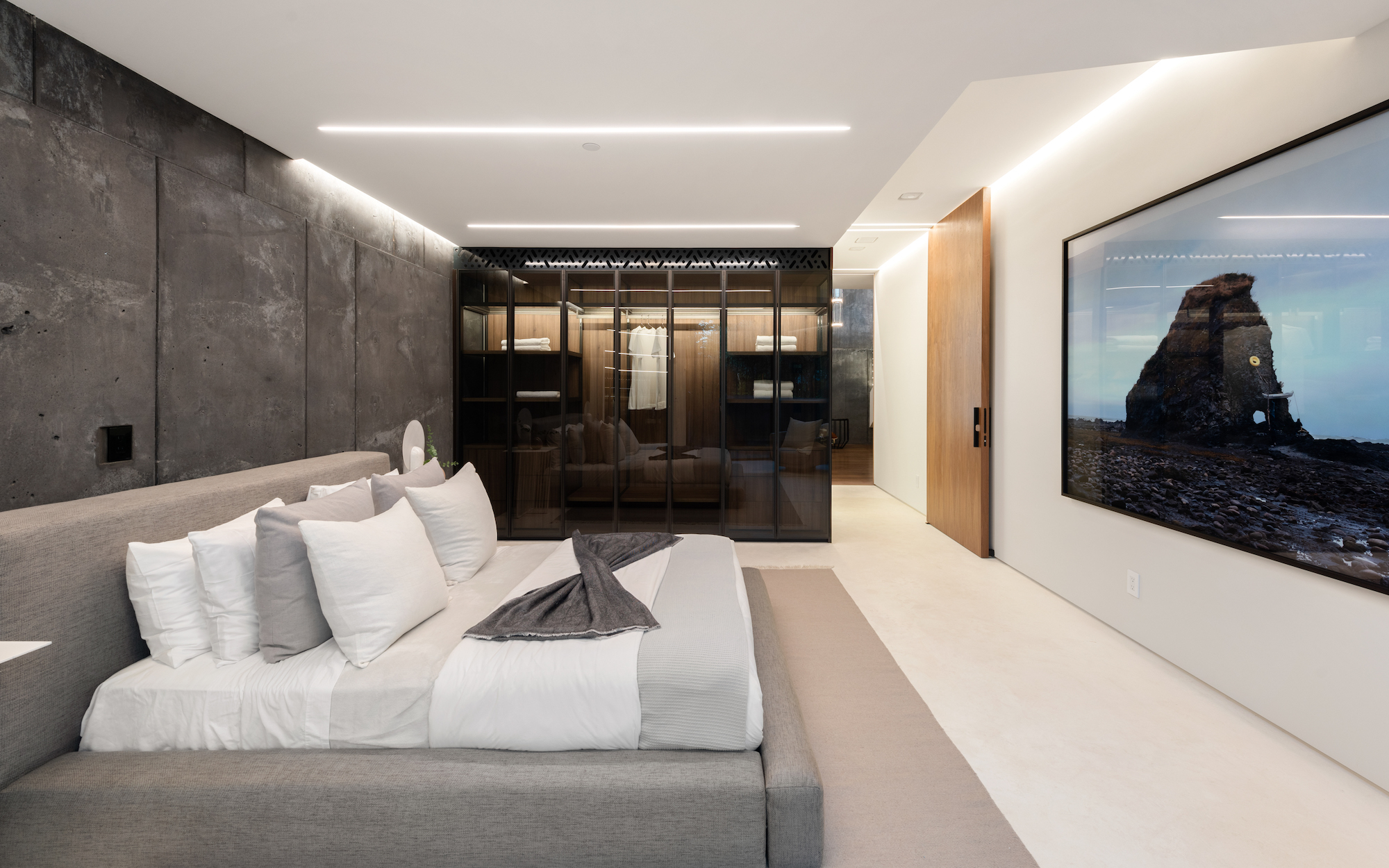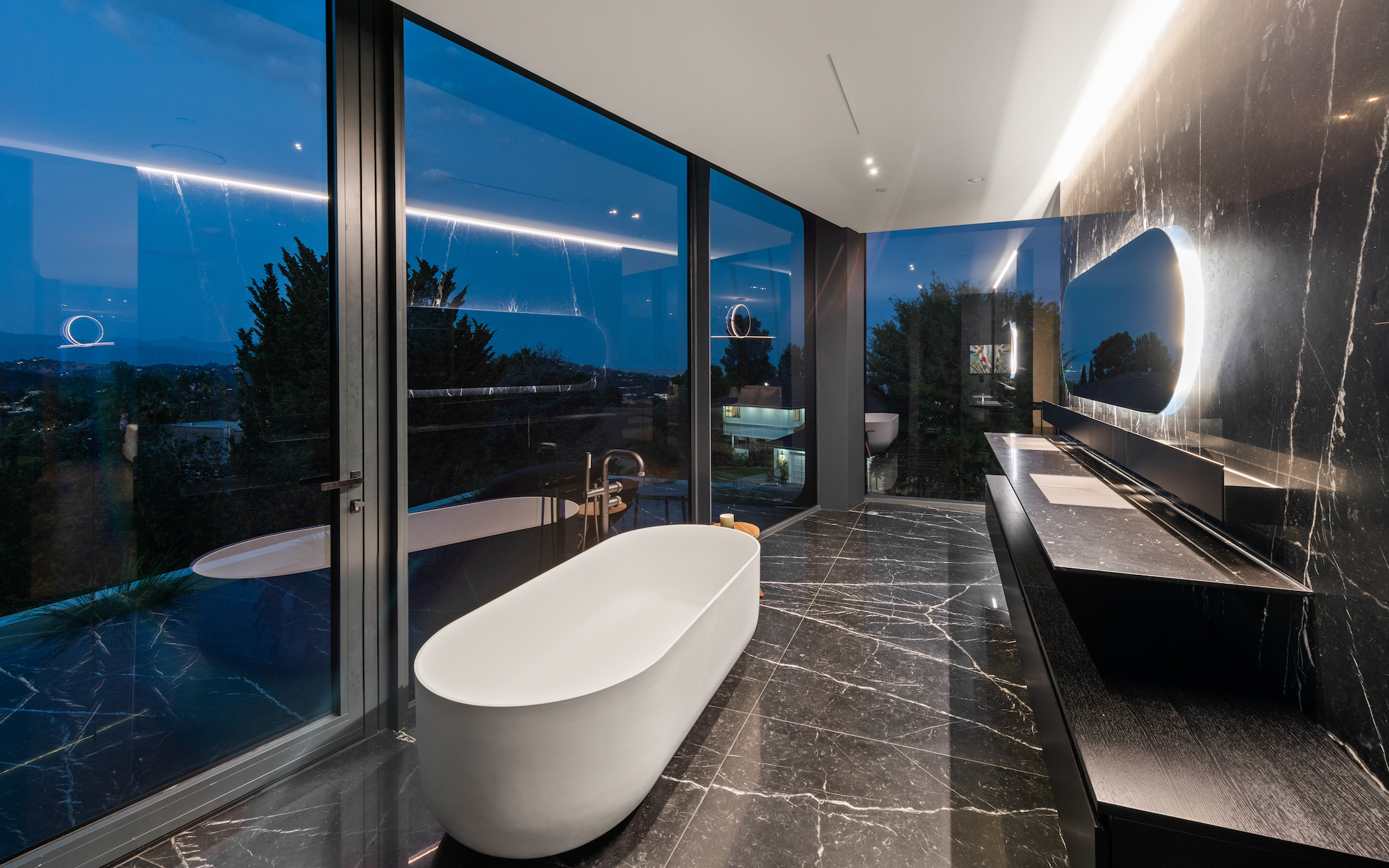 string(2596) "Recognized as a work of art and beauty, this property has already won TEN Architectural awards. Situated in the highly coveted hills of Bel Air sits this 2022 new construction, stunningly reimagined, automotive inspired 4-bedroom, 5-bathroom property that was CNC milled from digital design. Showcasing a dynamic 16-foot cantilever for the second floor, creating an impressive canopy and shaded prelude, this one-of-a-kind property reveals unique design and custom finishes that are second to none. The split-level architecture with central stairs alongside the frameless glass elevator cabin allows an abundance of bright, natural light that is all consuming. Floor to ceiling Belgian glass windows and a mechanized door system allow a seamless indoor/outdoor flow to the multiple decks, side, and back yard. The main level includes an expansive living room with fireplace, soaring ceilings, and family room. Ascend up the steps to the dining space and gourmet chef's kitchen that is equipped with DOCA luxury cabinetry and Dekton door-faces, countertops, and walnut recess detailing, all while opening up directly to the backyard with lush landscaping and a large pool/spa. Up the stairs or elevator, make your way to the spacious primary suite containing glass closets furnished with integral lighting, amber doors, a separate sitting room, and spa-like bathroom with marble slab walls and flooring with matching Agape sinks and faucets - all looking out to incredible views from the Getty to the Pacific. Included on this upper level is the rooftop deck that allows for prime views all the way to the Pacific Ocean, and is built with a raised pedestal floor system that eliminates standing rainwater. The Museum-quality basement grand room sports exposed raw black concrete walls that juxtaposes with the refined house textures and furnishings while housing the felt wall and cork floor home theatre that is designed with luxury minimalistic aesthetics and a custom built integral diffused ceiling light. There are three additional bedroom and bathrooms on the lower floor that are also equipped with glass closets and separate en-suite bathrooms with Graff luxury fixtures, wall-hung Catalano toilets, and imported Spanish tile work. Additional features include a 3-car attached garage, recessed space for future solar panel integration on the roof, minimal linear and pinhole LED lighting design for ambient and task lighting, recessed wall and ceiling housing for smart home keypads and devices, and seamless high quality plaster flooring and walls in select rooms and the exterior facade."