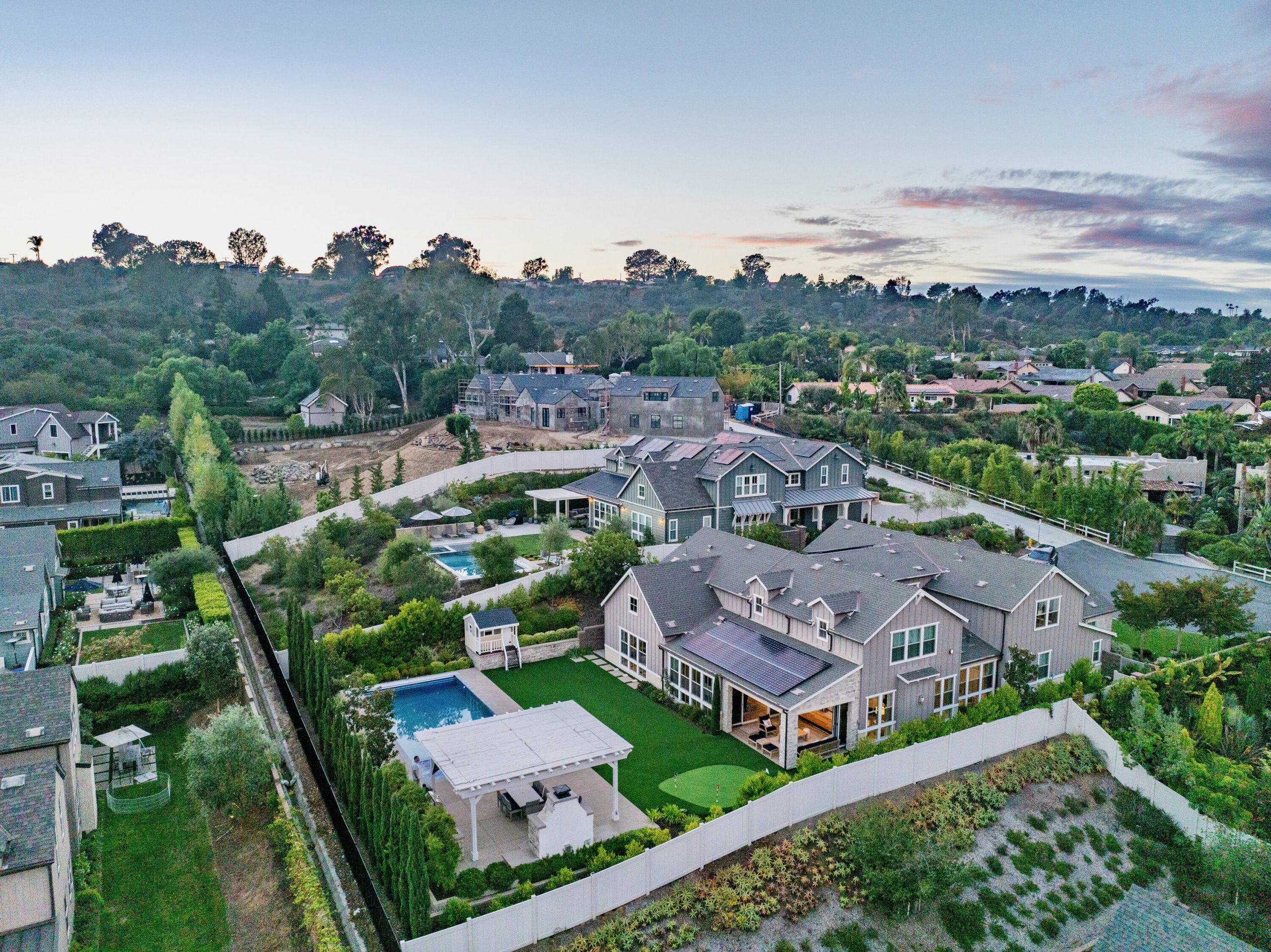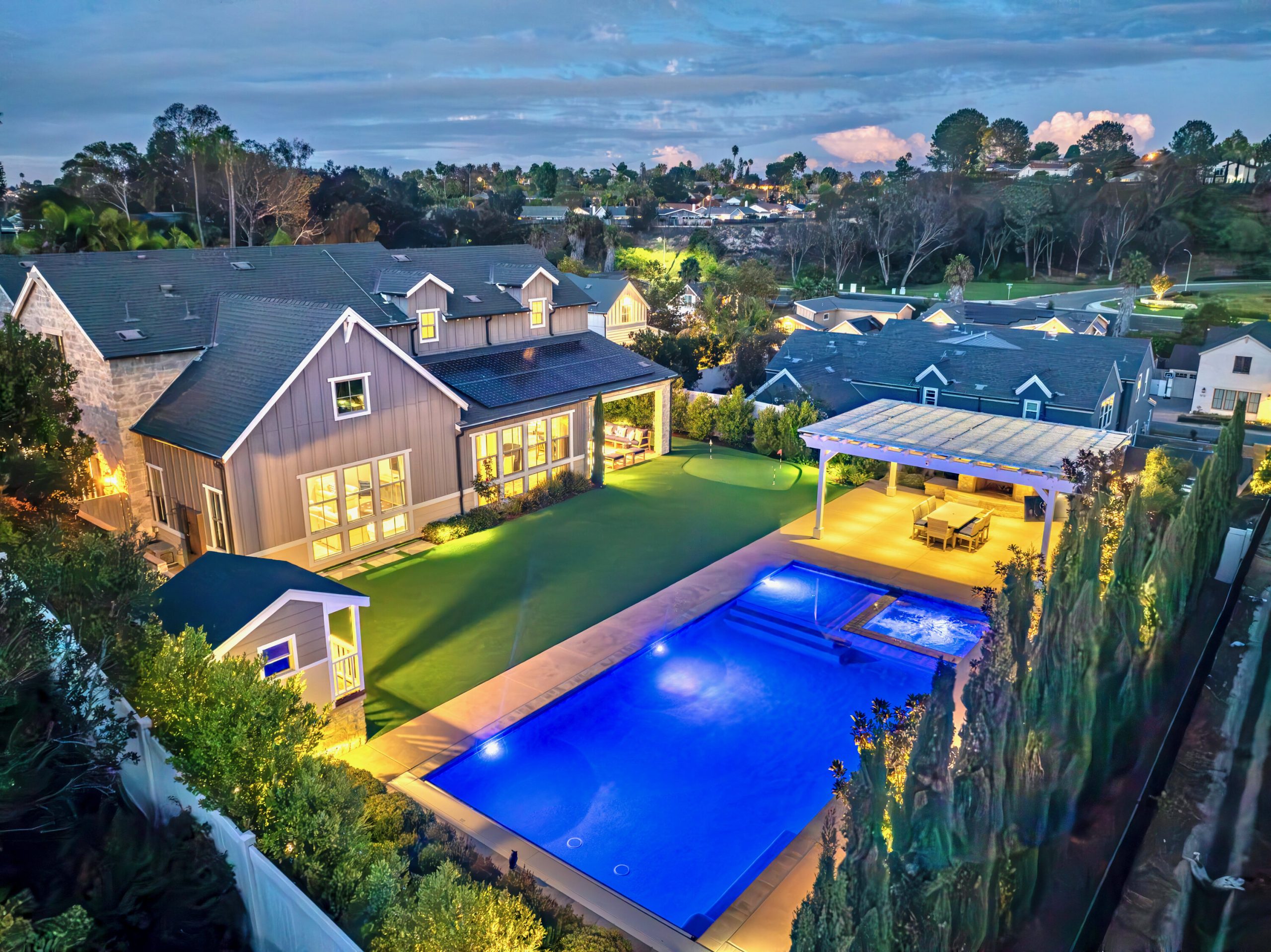 Welcome to 1259 Berryman, a modern coastal retreat in The Enclave, a private community of only 19 distinguished homes in Encinitas. Ideally located minutes to beaches, downtown, shopping, and dining, this property offers privacy and convenience. Set on a flat, 0.51-acre lot, the home features seamless indoor/outdoor living with a south-facing backyard that includes a pool & spa with automatic cover, putting green, outdoor shower, covered kitchen with BBQ + Green Egg grill, fireplace, TV, and a charming playhouse. The 5BR/5.5BA floor plan lives like a single level with dual primary suites—one on the main level and another upstairs—plus an attached ADU with private entry, kitchen, bedroom, and family room. Interiors are enhanced with over $175K in custom lighting, a La Cantina screen door, temperature-controlled wine room, and designer finishes throughout. Additional upgrades include Thermador appliances, Lutron lighting controls, motorized shades, custom drapery, soundproof windows, epoxy garage with EV rough-in, owned solar, and full smart-home integration. A rare blend of coastal convenience, thoughtful design, and resort-style amenities. Welcome to 1259 Berryman, a newer-construction residence, custom designed to deliver the ultimate blend of style, comfort, and convenience. Perfectly situated in The Enclave, an exclusive coastal community of just 19 luxury homes in Encinitas, this property offers a rare combination of privacy and central access. Just minutes from world-class beaches, vibrant downtown Encinitas, and renowned shopping and dining, the location ensures a lifestyle of ease without compromise. Set on a flat, 0.51-acre lot, the home is designed for true indoor/outdoor living. The sun-filled, south-facing backyard is an entertainer’s dream, featuring a sparkling pool & jacuzzi with automatic cover, putting green, outdoor shower, and a covered outdoor kitchen/entertainment center equipped with a BBQ, Green Egg grill, TV, fireplace, and a charming playhouse that children and adults alike will love. Fruit trees, irrigation throughout, and a Sonos 8-speaker system complete the outdoor retreat. Inside, the five-bedroom, five-and-a-half-bath floor plan offers the flexibility to live like a single level home with dual primary suites—a spacious primary retreat on the main level and a second on the upper level. This thoughtful design is ideal for multi-generational living, long-term guests, or simply enjoying the convenience of a main-level primary bedroom while preserving upstairs space for family or visitors. An attached ADU with private entry, kitchen, bedroom, and family room further enhances versatility, making it perfect for extended stays or independent living. Over $175,000 in custom lighting elevates every space, from warm-dim recessed can lights to statement chandeliers and curated landscape illumination. A custom La Cantina screen door connects interiors to the outdoors in dramatic fashion, while a temperature-controlled wine room with its own HVAC system delights collectors. Smart upgrades and modern conveniences are integrated throughout, including a Lutron Radio Ra lighting control system, motorized shades in the upstairs primary suite, whole-home custom drapery, upgraded soundproof windows, enhanced insulation, a surge protector on the main panel, an Erro internet system, and a Ring security system. The kitchen is outfitted with upgraded Thermador appliances—including a professional-grade stove and refrigerator—along with custom finishes and solid wood doors that speak to superior craftsmanship. The garage has been elevated with epoxy flooring, upgraded lighting, and a rough-in for an electric car charger. Owned solar panels ensure energy efficiency, making the home as practical as it is beautiful. The result is a rare offering that pairs coastal convenience with extraordinary design—a showcase of modern living in one of North County San Diego’s most coveted