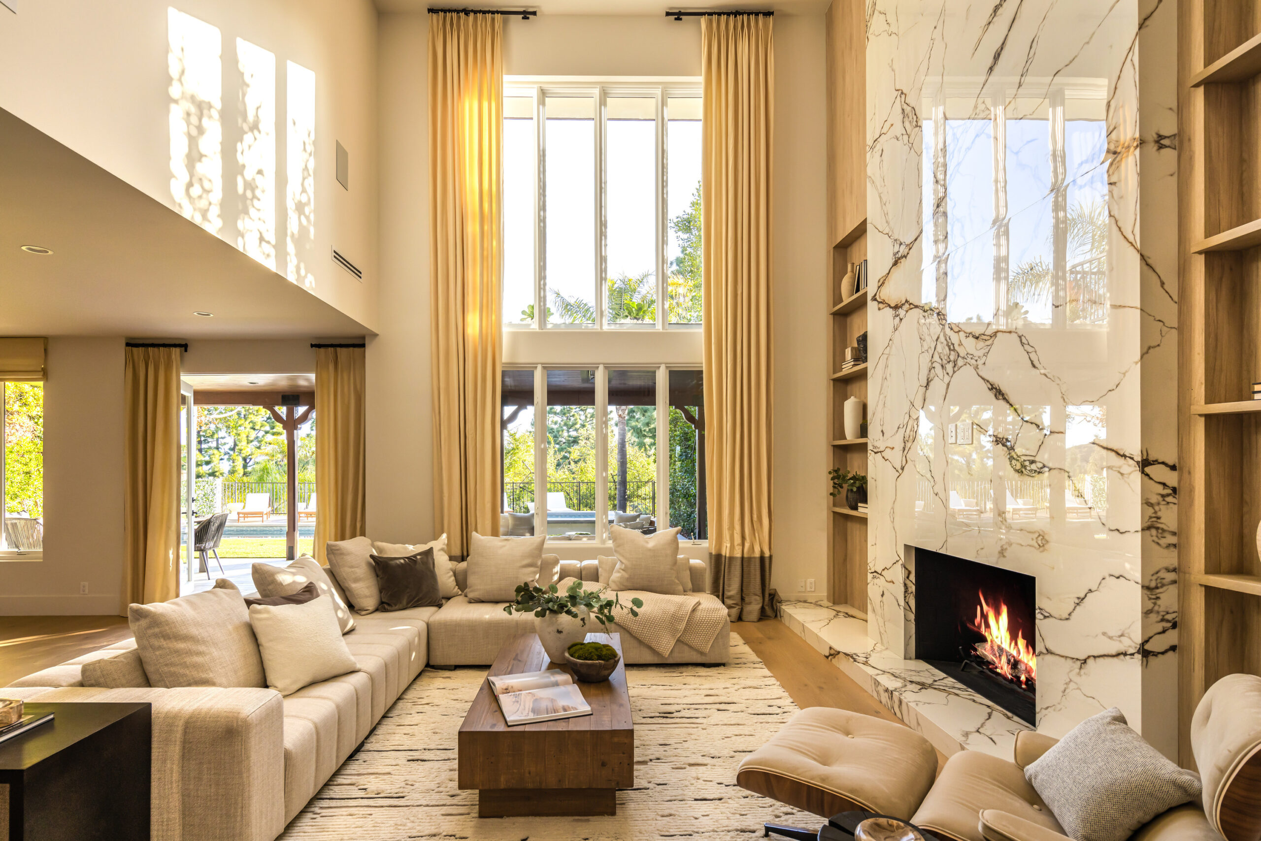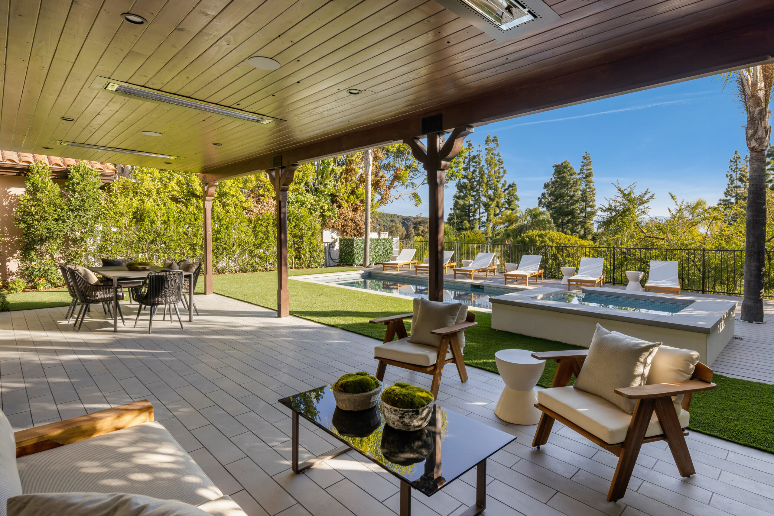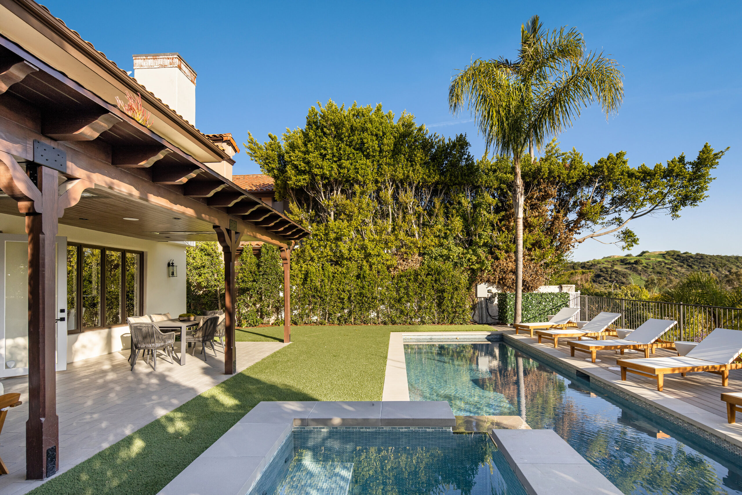 Masterfully reimagined 4-bedroom, 5-bathroom home in fully guard gated prestigious Mountaingate enclave Stoney Hill offers 5,001 sqft of luxurious living, designed and built by a seasoned builder for their personal residence. Every inch has been thoughtfully curated with top-tier finishes, premium materials, and a layout that blends flow, functionality, and elegance. The home includes spacious formal living areas, that include sitting room, bar area, and dining with back of house butlers pantry, in addition to normal indoor/ outdoor hangout areas, a flexible office/ pajama lounge, and additional den/media space. The primary suite is a true retreat, featuring DUAL bathrooms with MASSIVE his-and-hers walk-in closets a rare and highly desirable design.A full cosmetic remodel has transformed the home from top to bottom, including all new appliances, fixtures, surfaces, and a stunning custom kitchen. Outdoors, enjoy a brand-new pool and spa surrounded by mature privacy hedges and breathtaking views of the hills and cityscape.Residents benefit from controlled gate access, a community pool, and the rare combination of seclusion, security, and convenience, with easy access to the 405 and everything Brentwood has to offer.