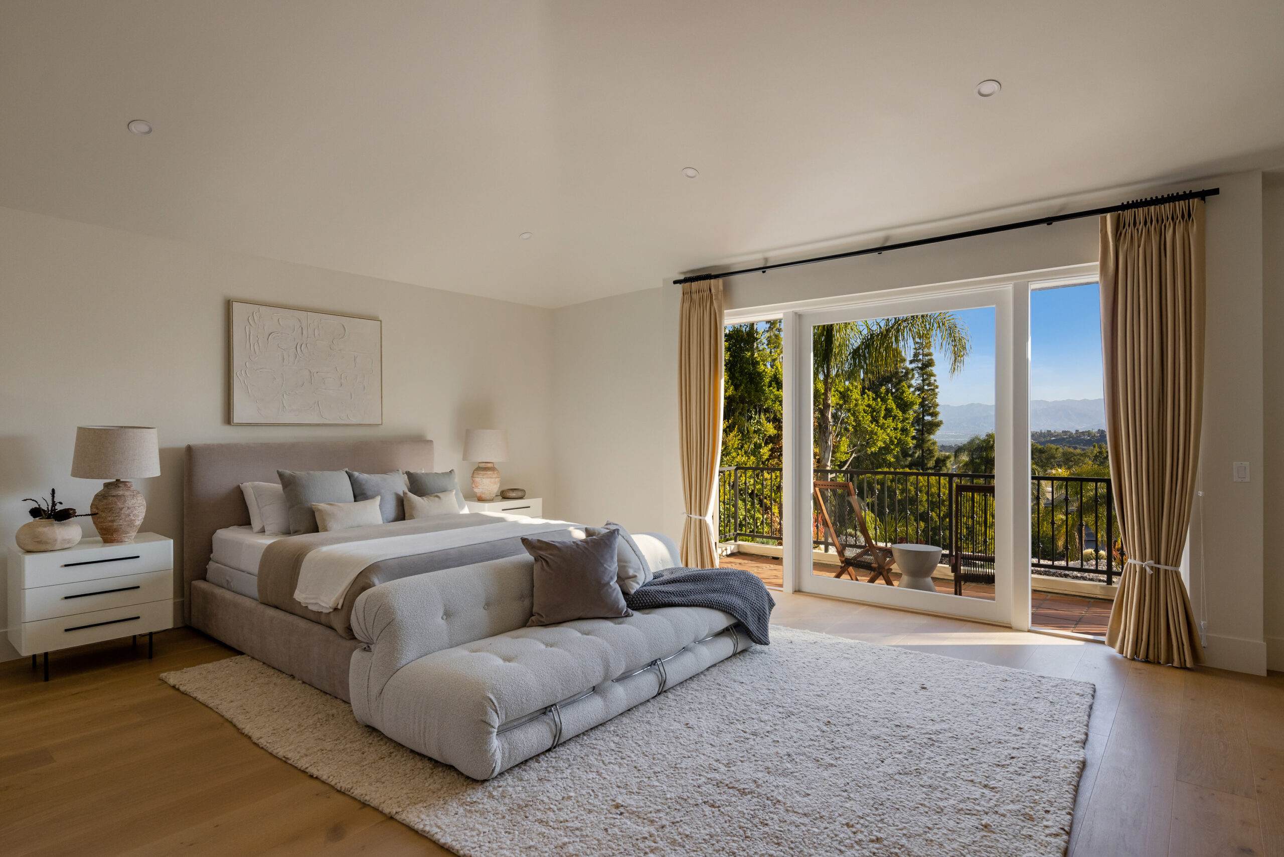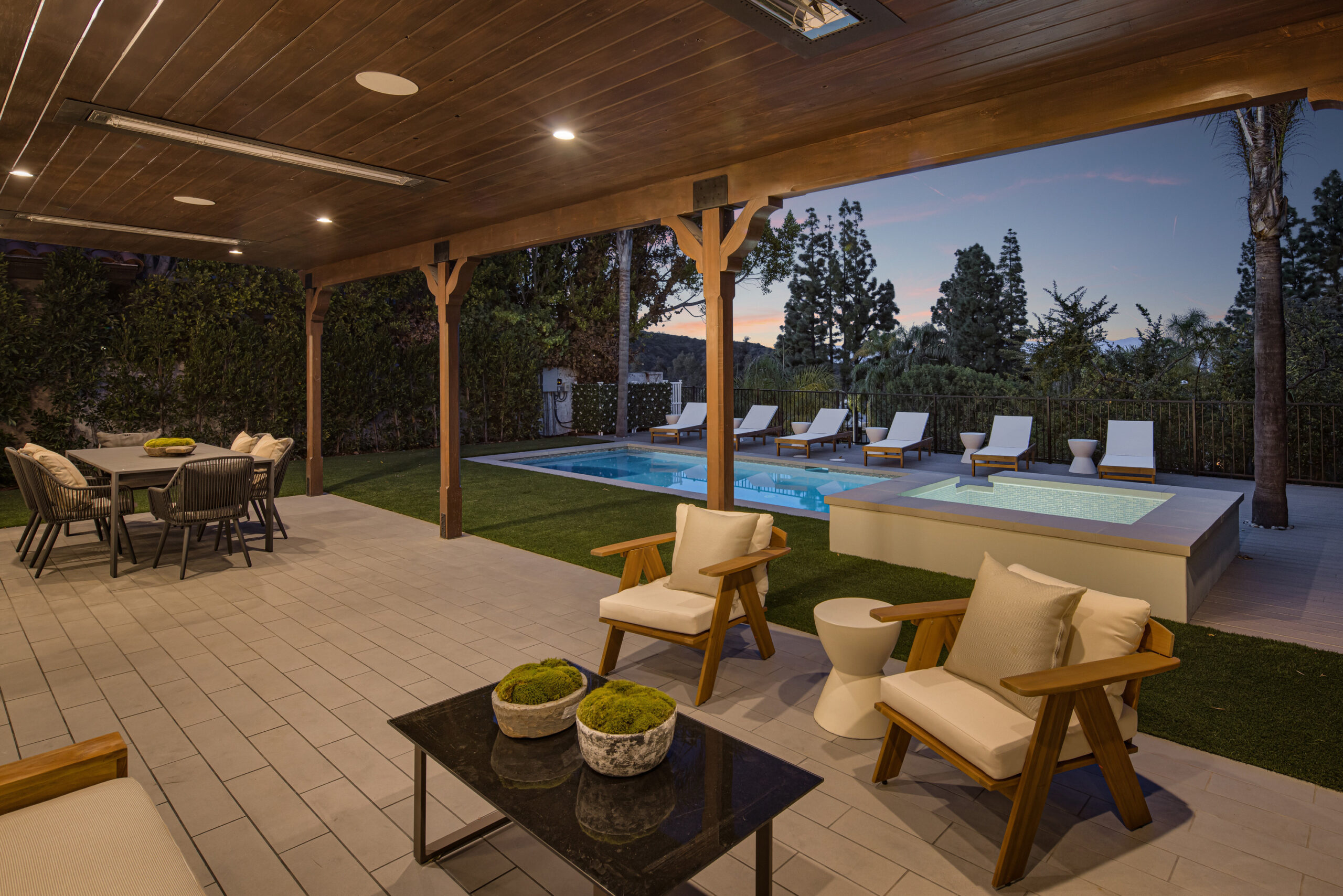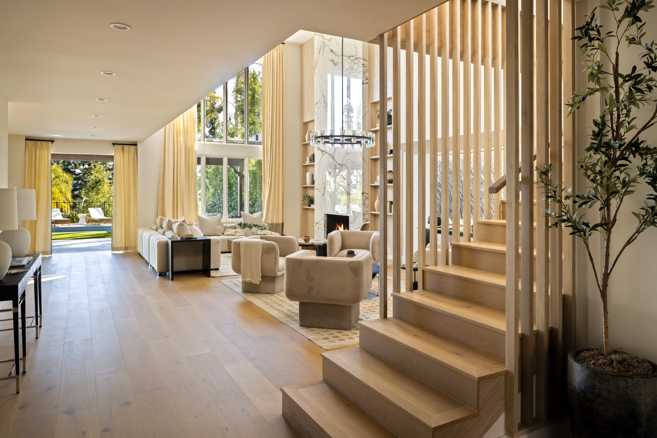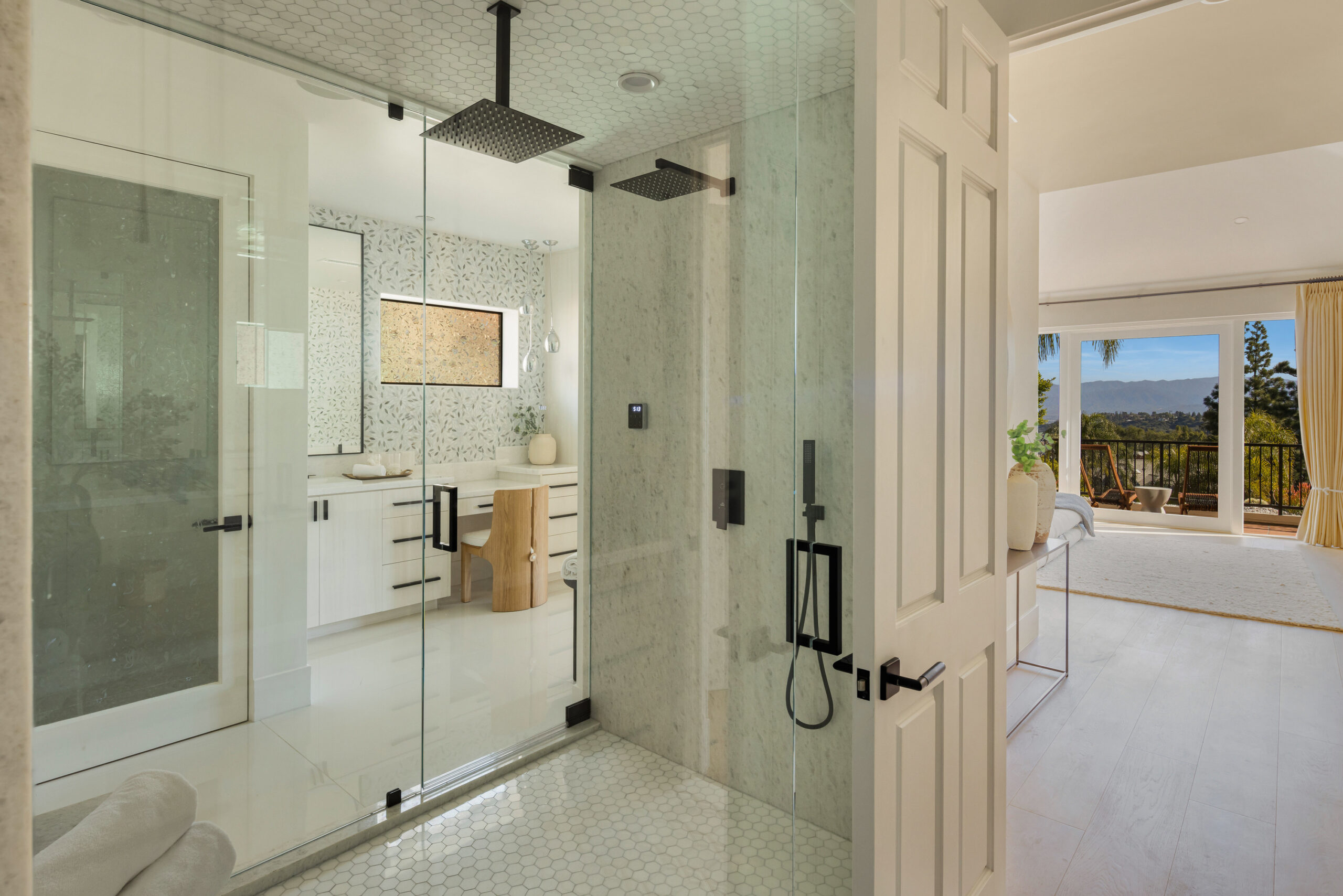 Masterfully reimagined 4-bedroom, 5-bathroom home in fully guard gated prestigious Mountaingate enclave Stoney Hill offers 5,001 sqft of luxurious living, designed and built by a seasoned builder for their personal residence. Every inch has been thoughtfully curated with top-tier finishes, premium materials, and a layout that blends flow, functionality, and elegance. The home includes spacious formal living areas, that include sitting room, bar area, and dining with back of house butlers pantry, in addition to normal indoor/ outdoor hangout areas, a flexible office/ pajama lounge, and additional den/media space. The primary suite is a true retreat, featuring DUAL bathrooms with MASSIVE his-and-hers walk-in closets a rare and highly desirable design.A full cosmetic remodel has transformed the home from top to bottom, including all new appliances, fixtures, surfaces, and a stunning custom kitchen. Outdoors, enjoy a brand-new pool and spa surrounded by mature privacy hedges and breathtaking views of the hills and cityscape.Residents benefit from controlled gate access, a community pool, and the rare combination of seclusion, security, and convenience, with easy access to the 405 and everything Brentwood has to offer.