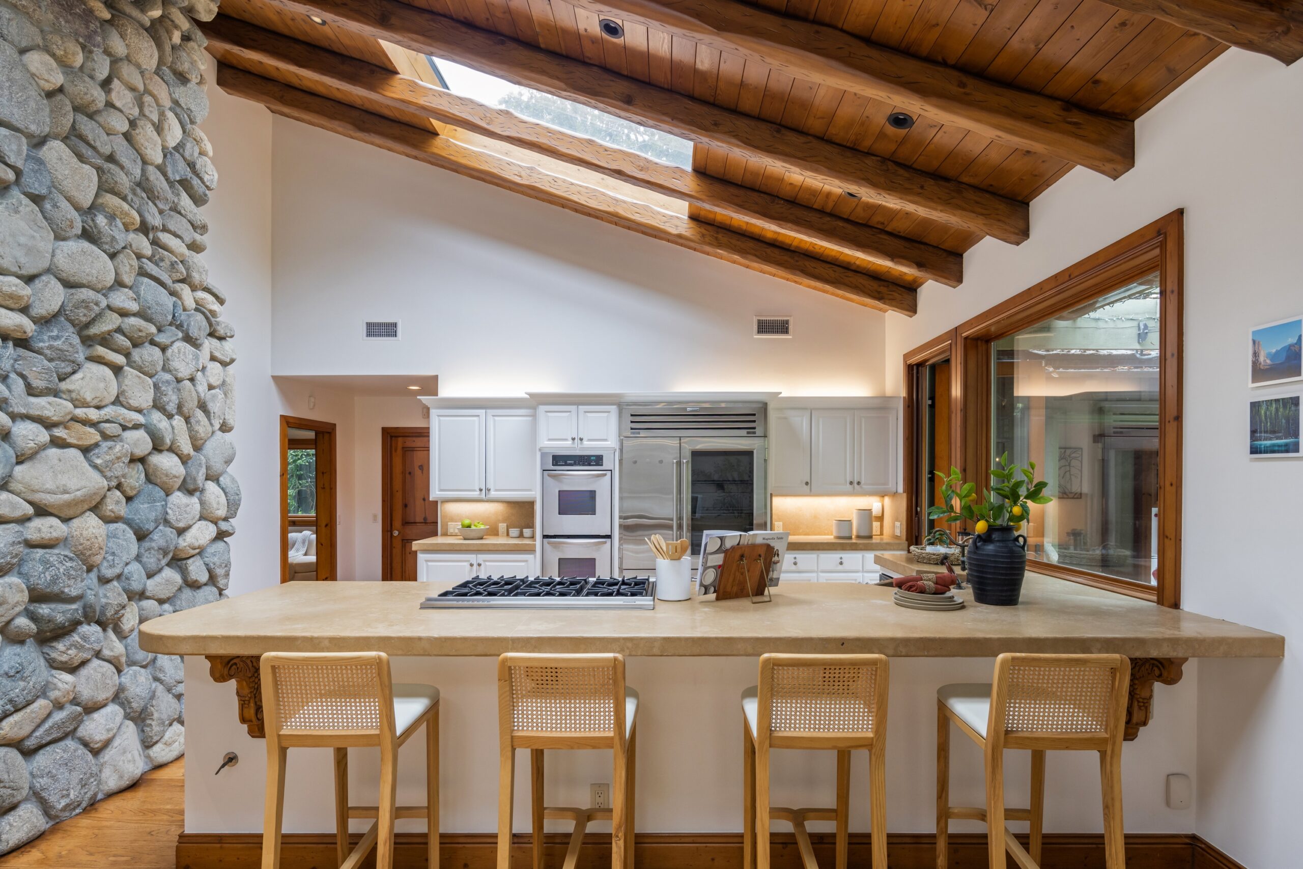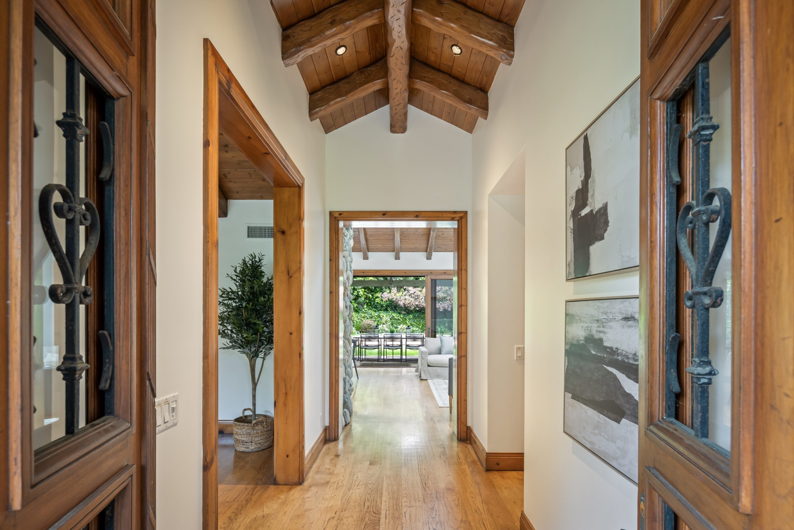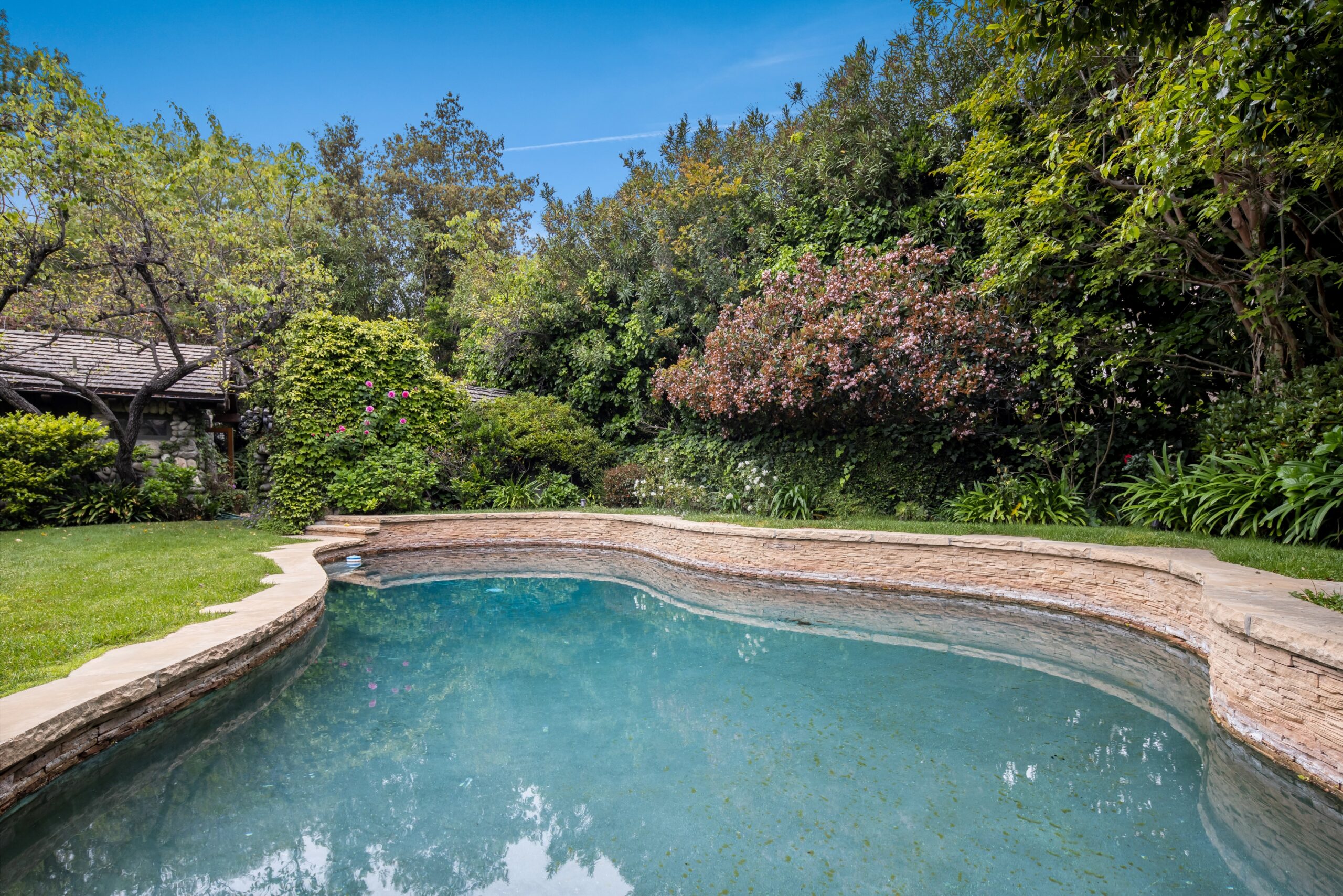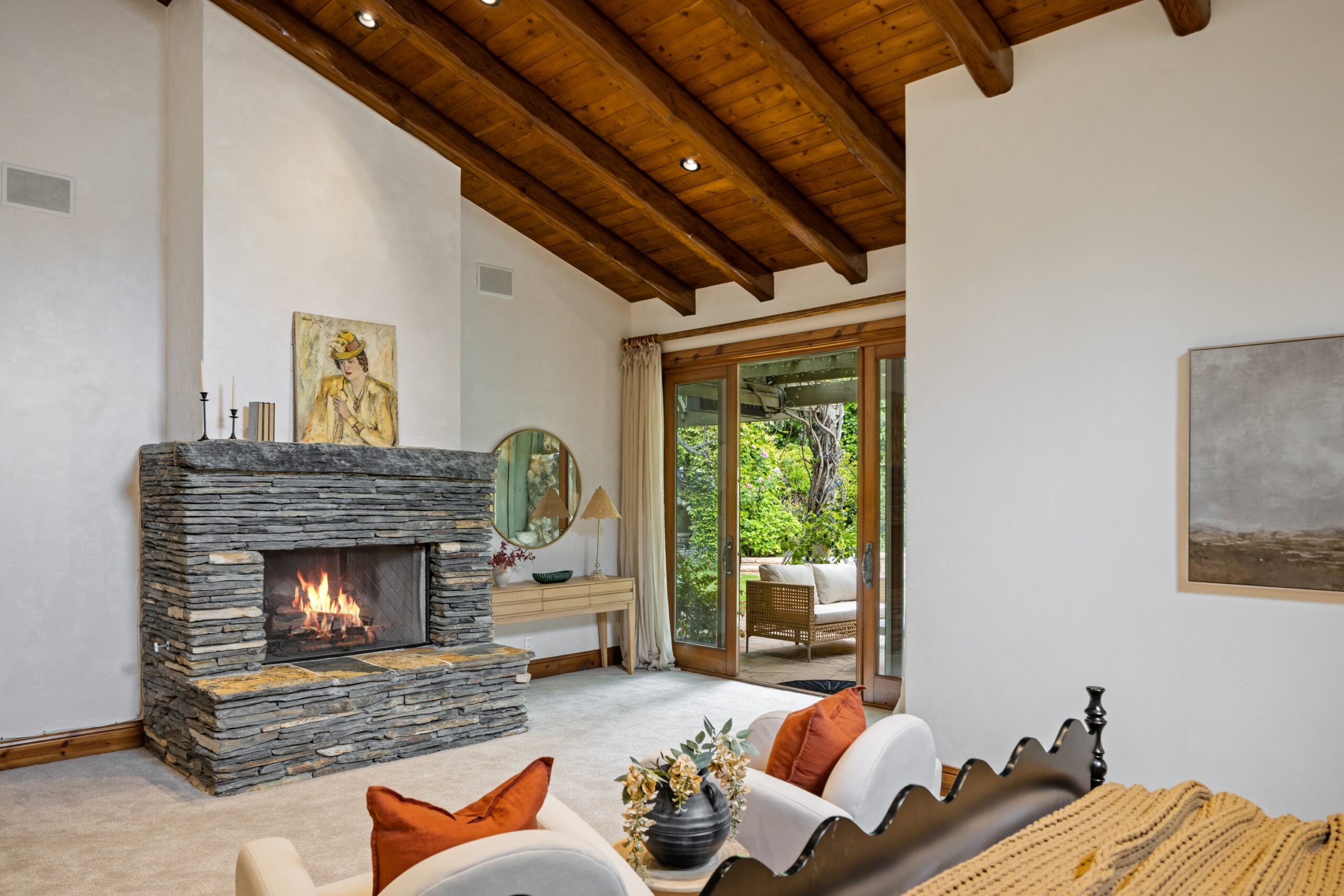 Sited in one of the most exclusive and coveted neighborhoods in the entirety of Los Angeles, 12733 Parkyns is an acclaimed estate that executes a harmonious blend of traditional and lodge style design and architecture. Crafted for those who want their home to feel just as such, this charming home gives you the feel of nature and tranquility while being mere minutes from world famous beaches, shopping, dining, and entertainment. Spanning 3,241 square feet on one level with 3 oversized bedrooms and 3.5 bathrooms, you will find grand vaulted and beamed ceilings throughout that pay homage to its special and unique design. Just outside of your fully outfitted kitchen are stunning lush gardens and landscaping that encase your pool fit for the most memorable of parties and get-togethers. A beautiful fireplace in the middle of the yard complements the spa area along with the rest of the yard, accompanied by another charming stone fireplace anchoring the outdoor dining area. Truly one of the most peaceful yet breathtaking homes in Los Angeles, 12733 Parkyns awaits its next owner to create their most memorable moments at home!