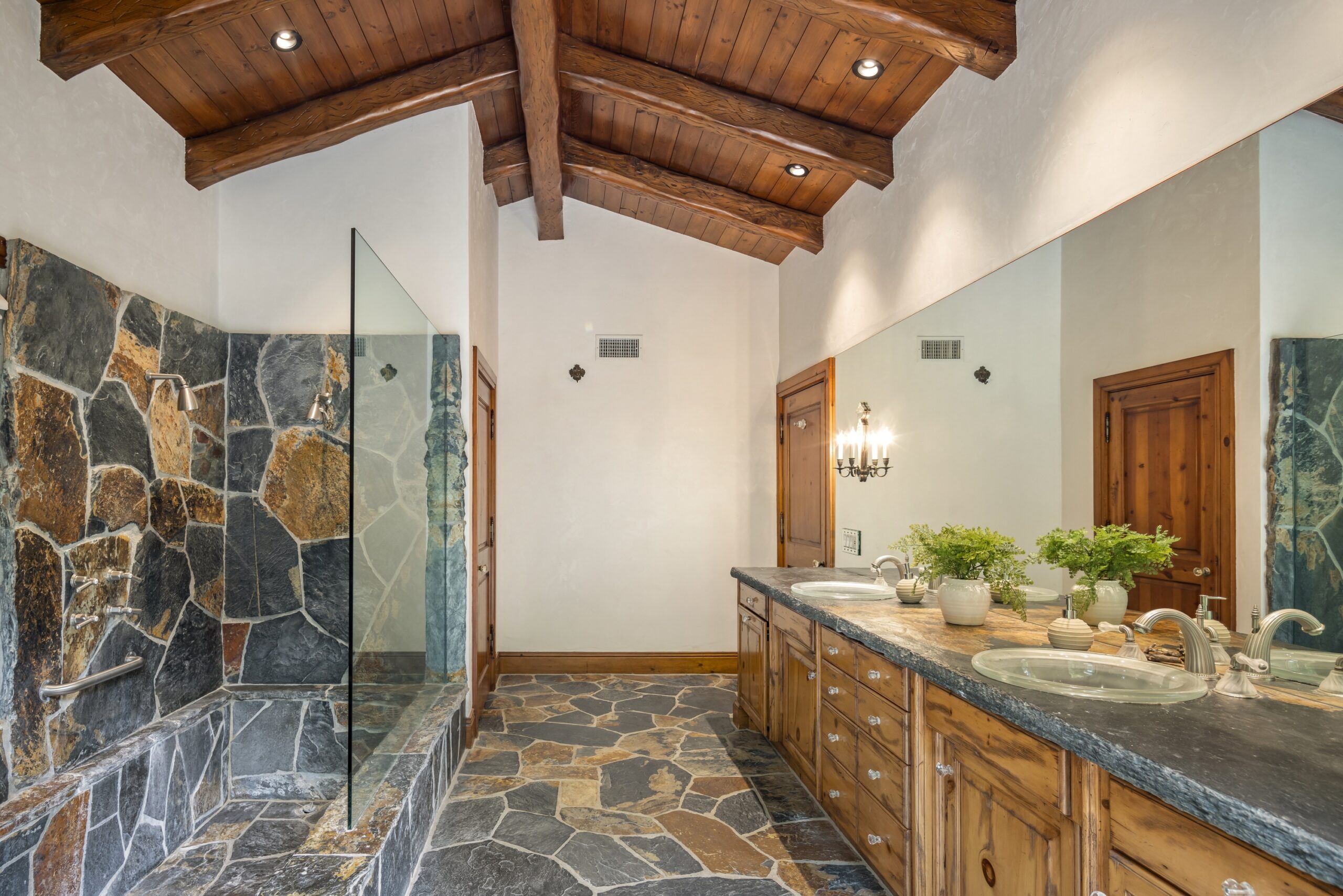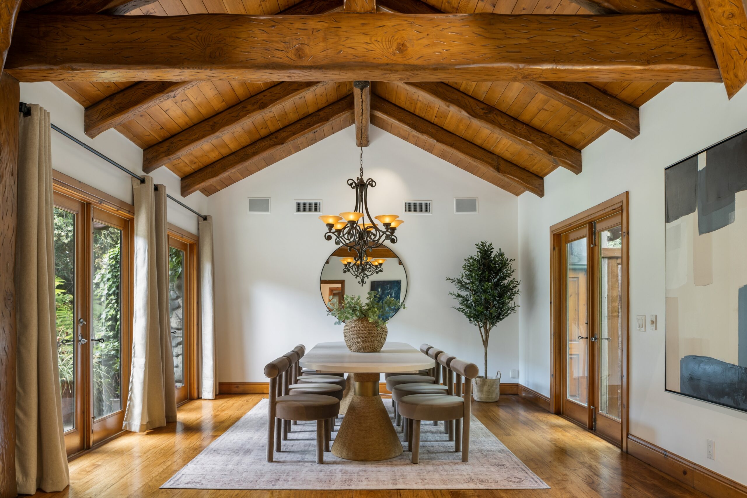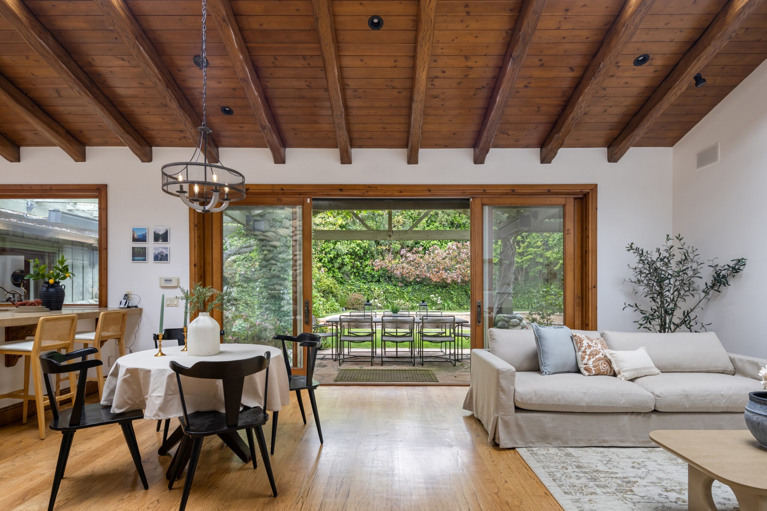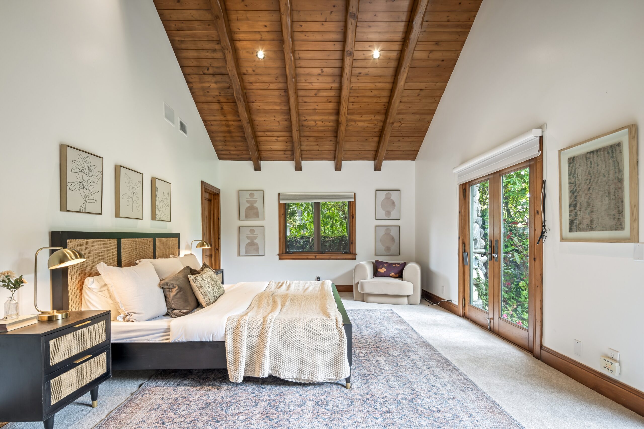 Sited in one of the most exclusive and coveted neighborhoods in the entirety of Los Angeles, 12733 Parkyns is an acclaimed estate that executes a harmonious blend of traditional and lodge style design and architecture. Crafted for those who want their home to feel just as such, this charming home gives you the feel of nature and tranquility while being mere minutes from world famous beaches, shopping, dining, and entertainment. Spanning 3,241 square feet on one level with 3 oversized bedrooms and 3.5 bathrooms, you will find grand vaulted and beamed ceilings throughout that pay homage to its special and unique design. Just outside of your fully outfitted kitchen are stunning lush gardens and landscaping that encase your pool fit for the most memorable of parties and get-togethers. A beautiful fireplace in the middle of the yard complements the spa area along with the rest of the yard, accompanied by another charming stone fireplace anchoring the outdoor dining area. Truly one of the most peaceful yet breathtaking homes in Los Angeles, 12733 Parkyns awaits its next owner to create their most memorable moments at home!