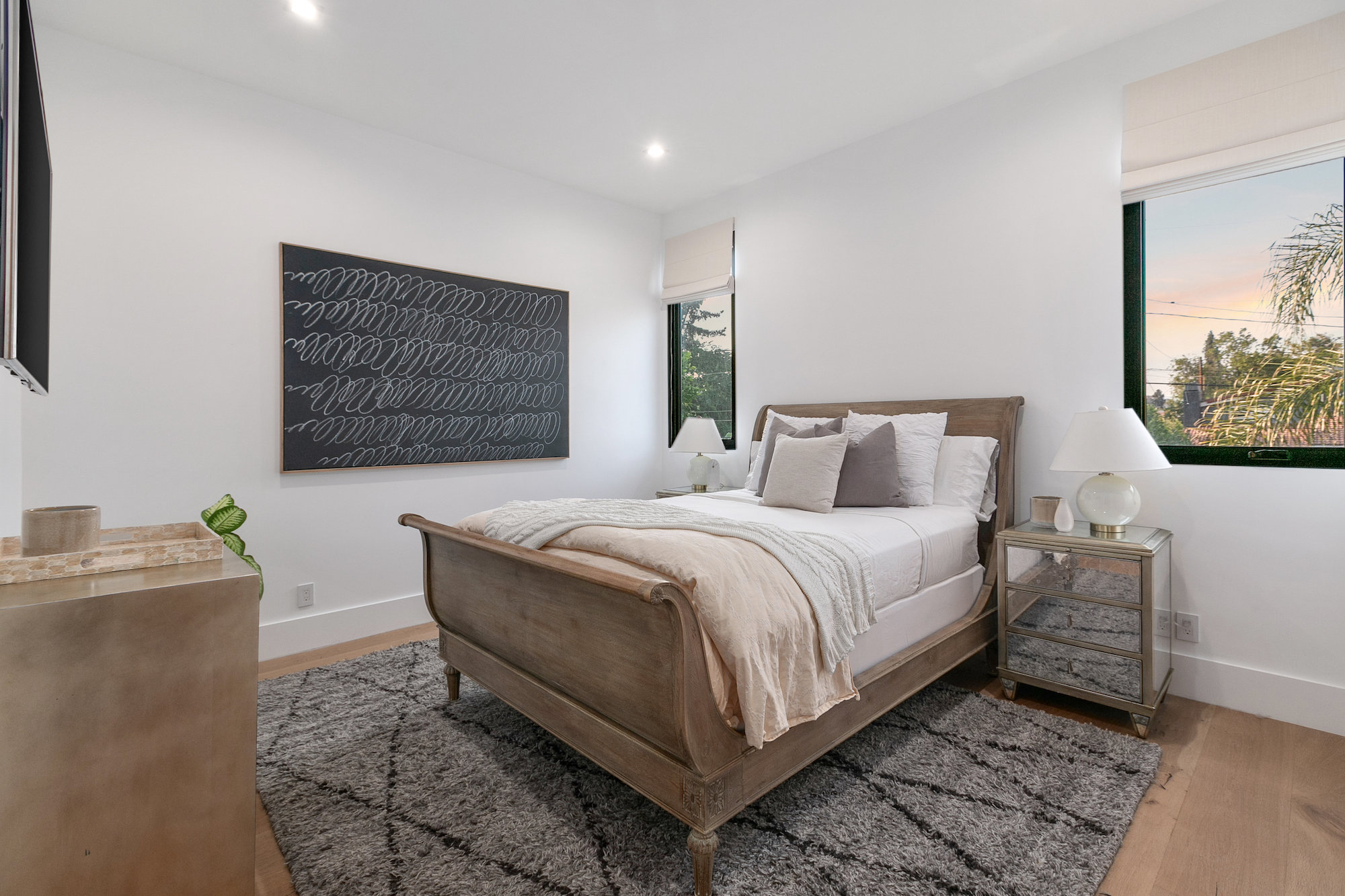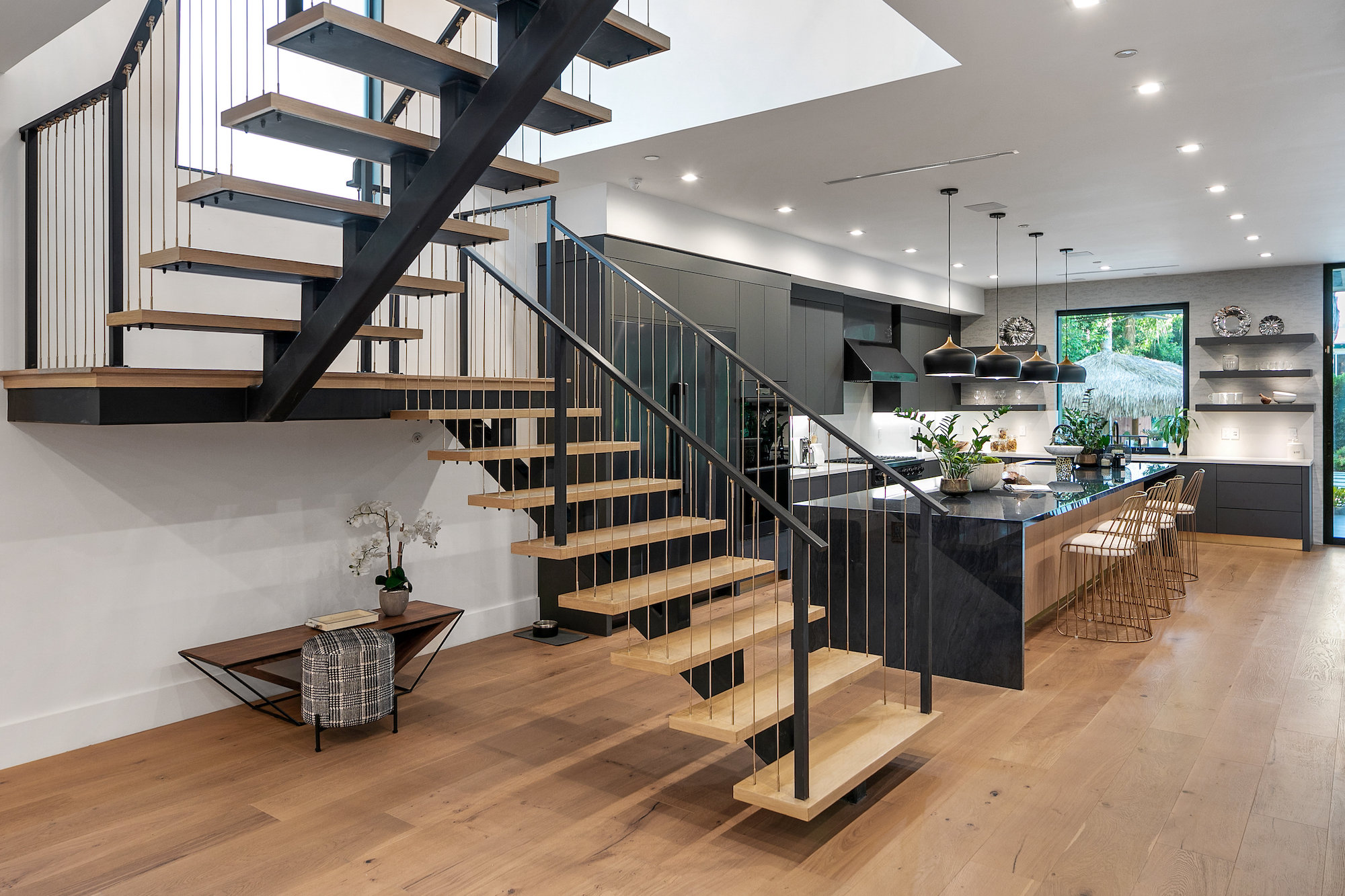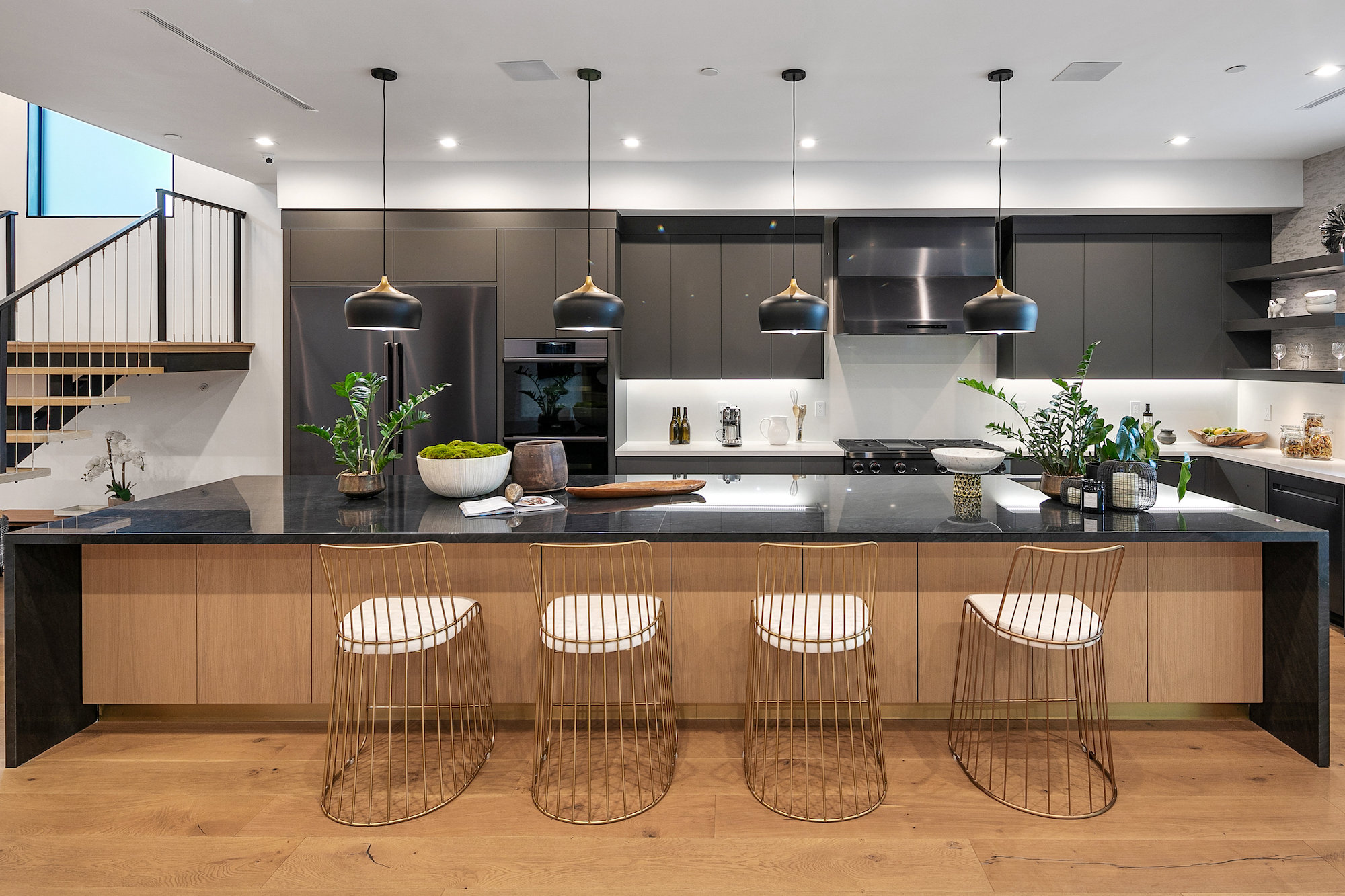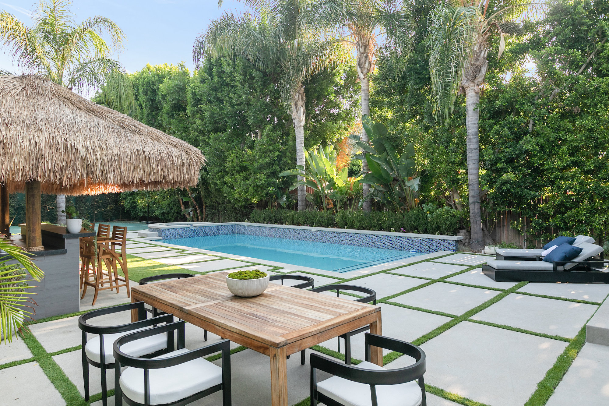 Style and sophistication are realized the moment the large pivot door opens revealing the stunning interior that spans over 4,740 square feet. Embraced with beautiful natural light & openness, your eyes are drawn directly down the elongated hallway and out to the backyard. You're welcomed into the grand formal living area with beautiful custom built-ins & a dining space with a wine display. The decadent chef's kitchen features an expansive island with Caesar stone waterfall countertops, modern cabinetry, brushed black appliances & a walk-in pantry. The kitchen is open to the family room, highlighting a modern fireplace & a porcelain accent wall. Through the floor-to-ceiling sliding pocket glass doors you make your way to a covered patio with heaters & a spacious backyard filled with tall hedging and mature landscape, a full covered bar with a BBQ, fire-pit, pool/spa & a sport court. The master suite features an accent wall with a floor-to-ceiling marble fireplace, custom built-ins, an attached deck with views of the backyard & a large walk-in closet. The luxurious master bathroom with custom tile-work, a soaking tub, double vanities, & an impressive walk-in shower resembles a spa. This home features surround sound, Lutron system, security system with cameras, is full solar panel & equipped with energy savings. Located in the heart of an upscale Studio City neighborhood, 12818 Landale St is close to the famous Beeman Park & Ventura Blvd, some of the best restaurants & prime entertainment in LA.