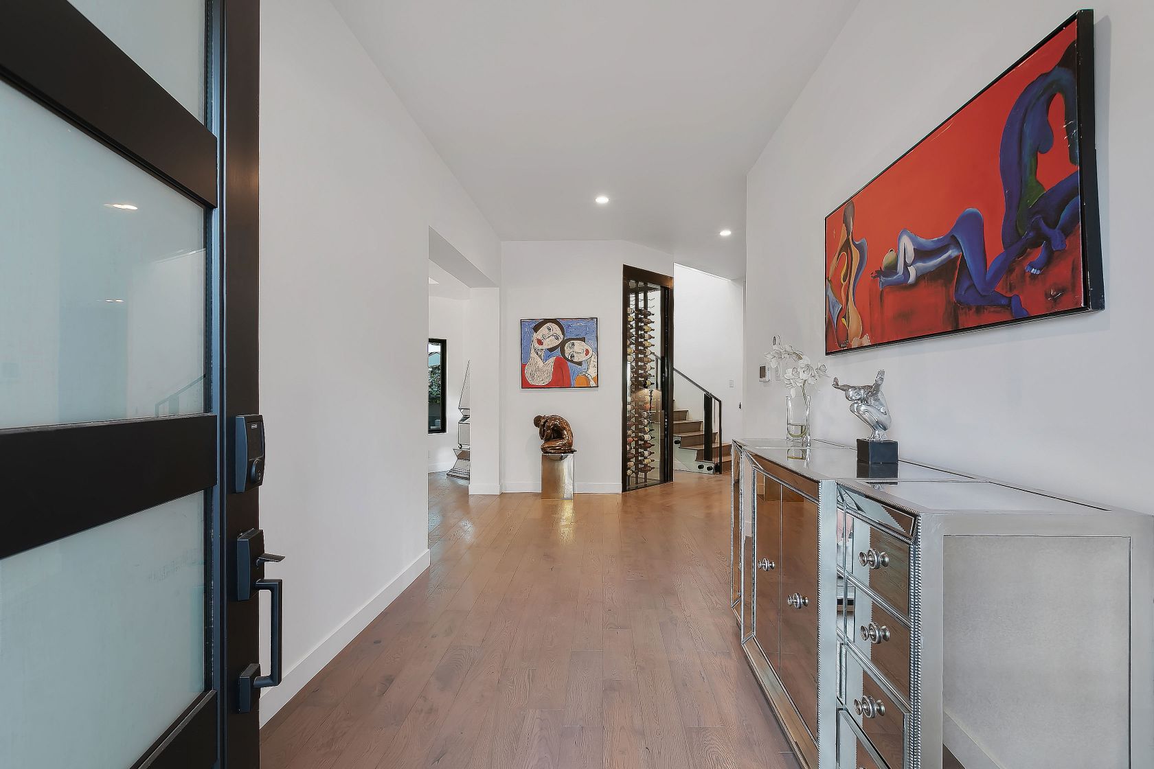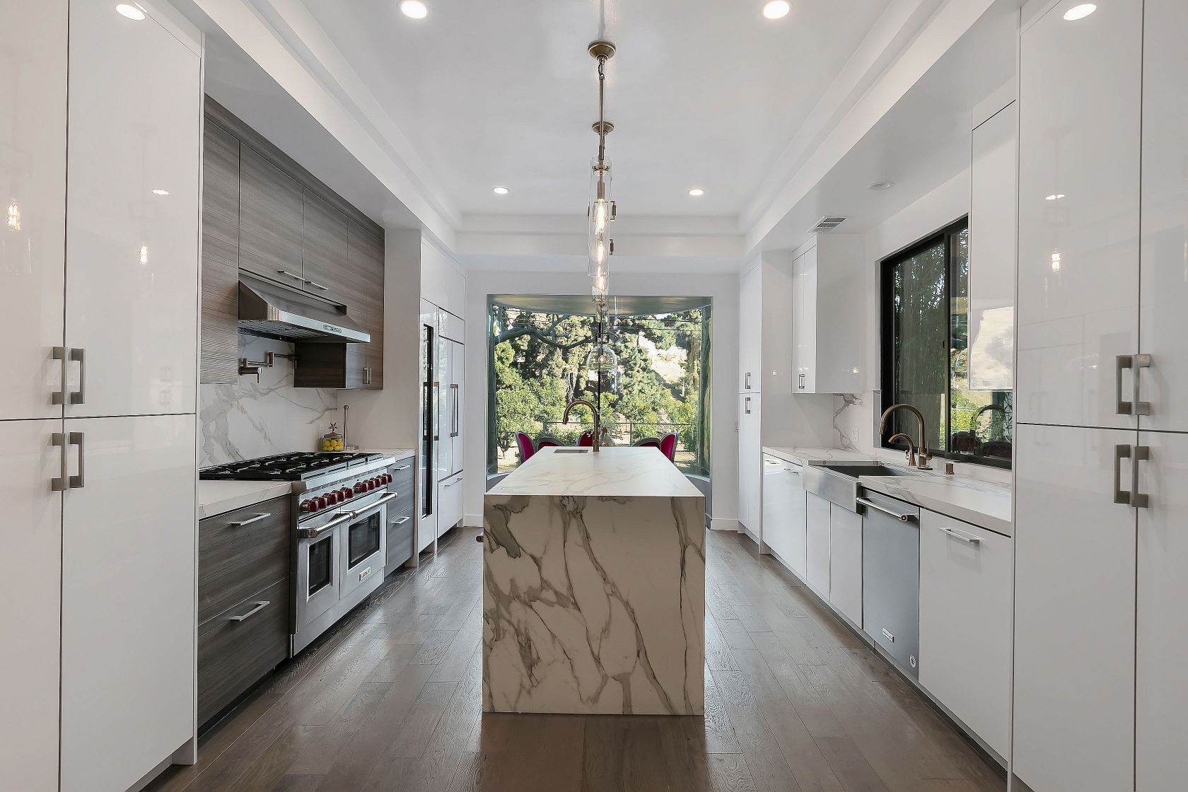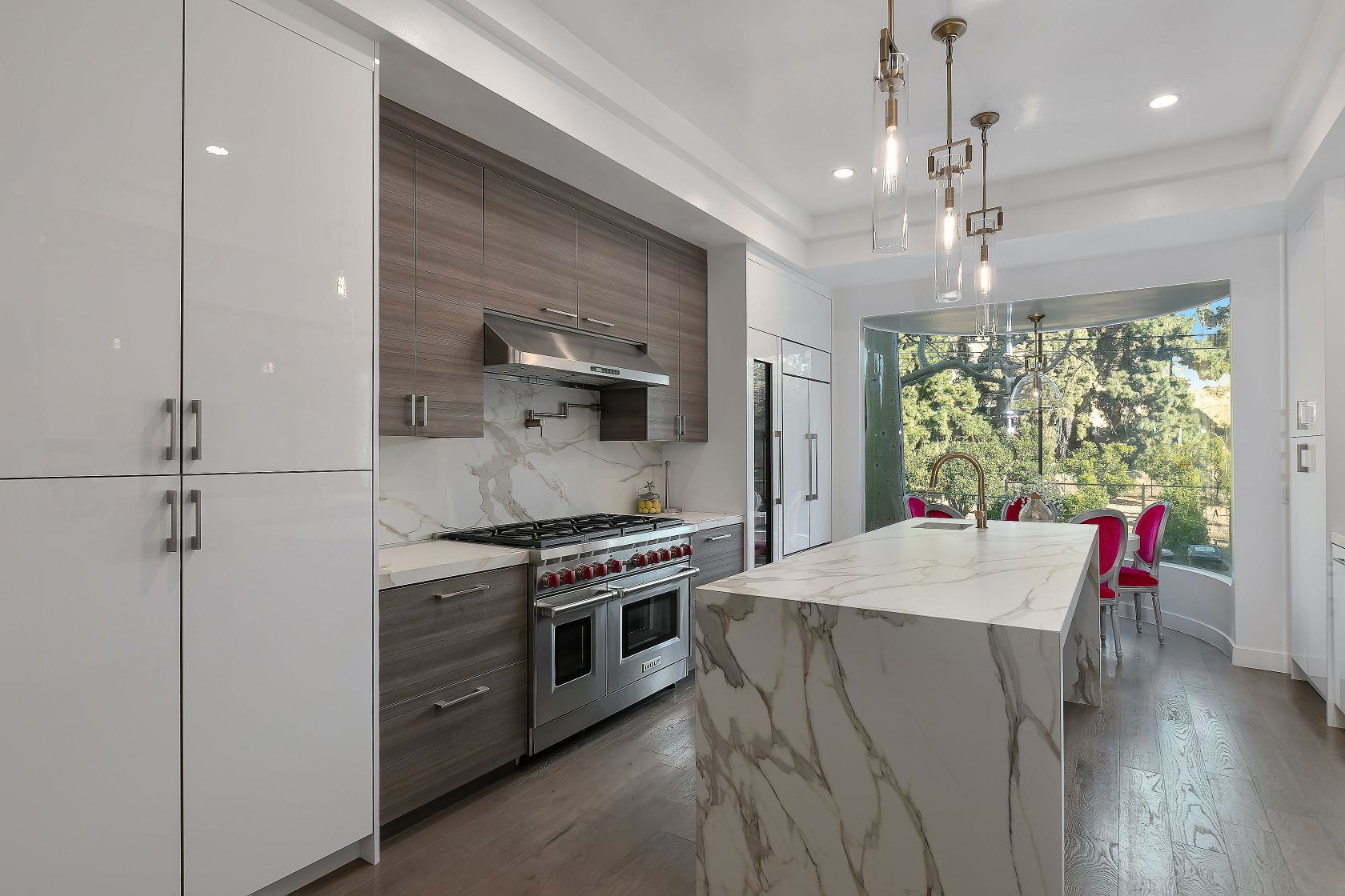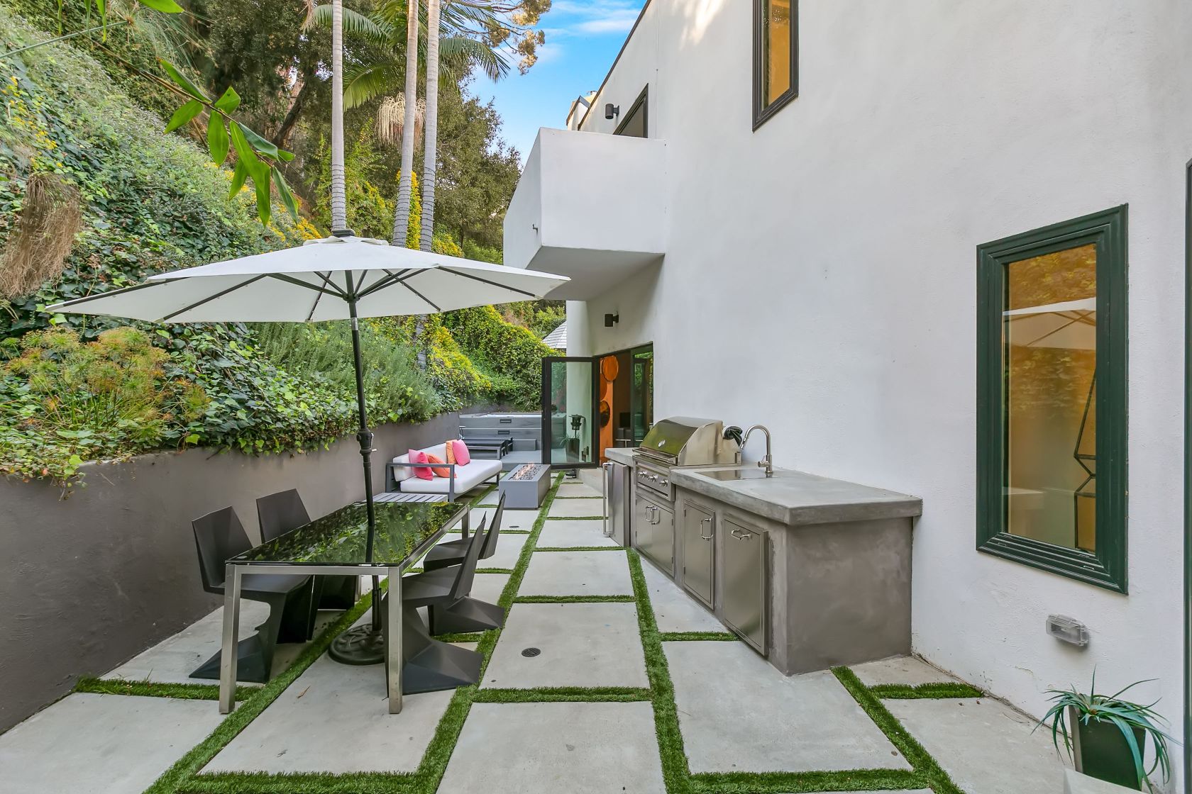 Having recently undergone a complete renovation, this contemporary smart home lies minutes from Coldwater Canyon Park, the Sunset Strip, and Beverly Hills. This home offers a thoughtful floor plan, warm interiors, high ceilings, and tranquil outdoor spaces. The massive gourmet kitchen boasts a center island and countertops constructed from Italian porcelain and top of the line Subzero and Wolf appliances. Travel upstairs past the custom wine cellar to the Master suite that is complete with a fireplace, private balcony, oversized walk-in closet, dual sinks, a large tub and stone filled shower. Relax or entertain in the backyard that boasts calming water features, a fire pit and outdoor spa. Coveted Warner Ave. school district.