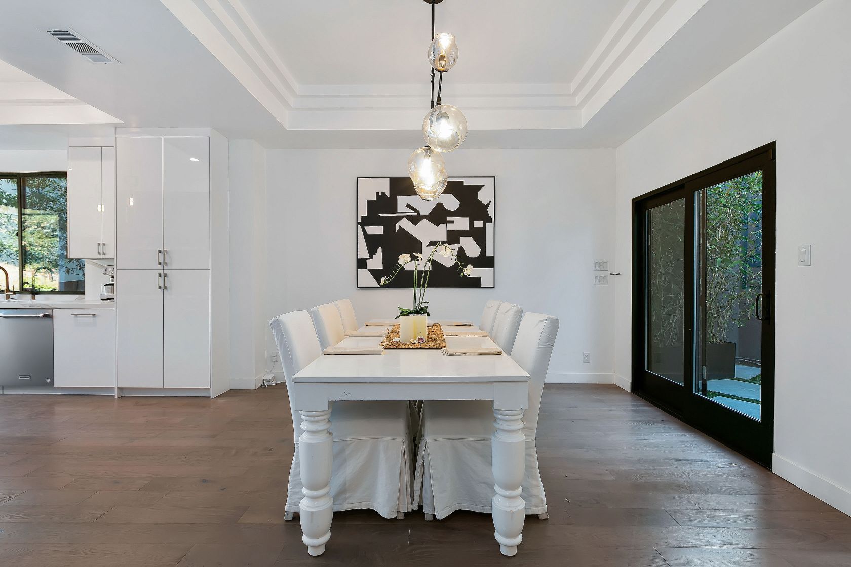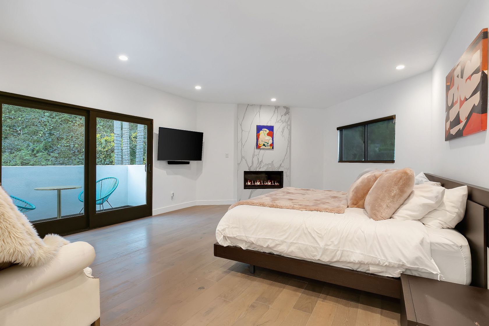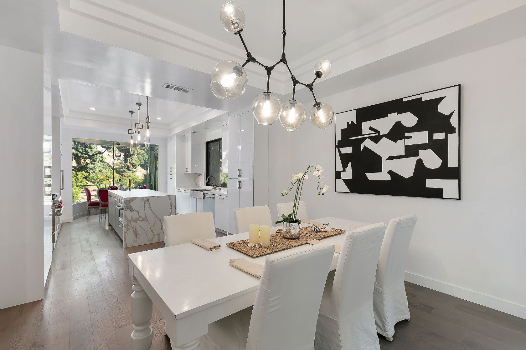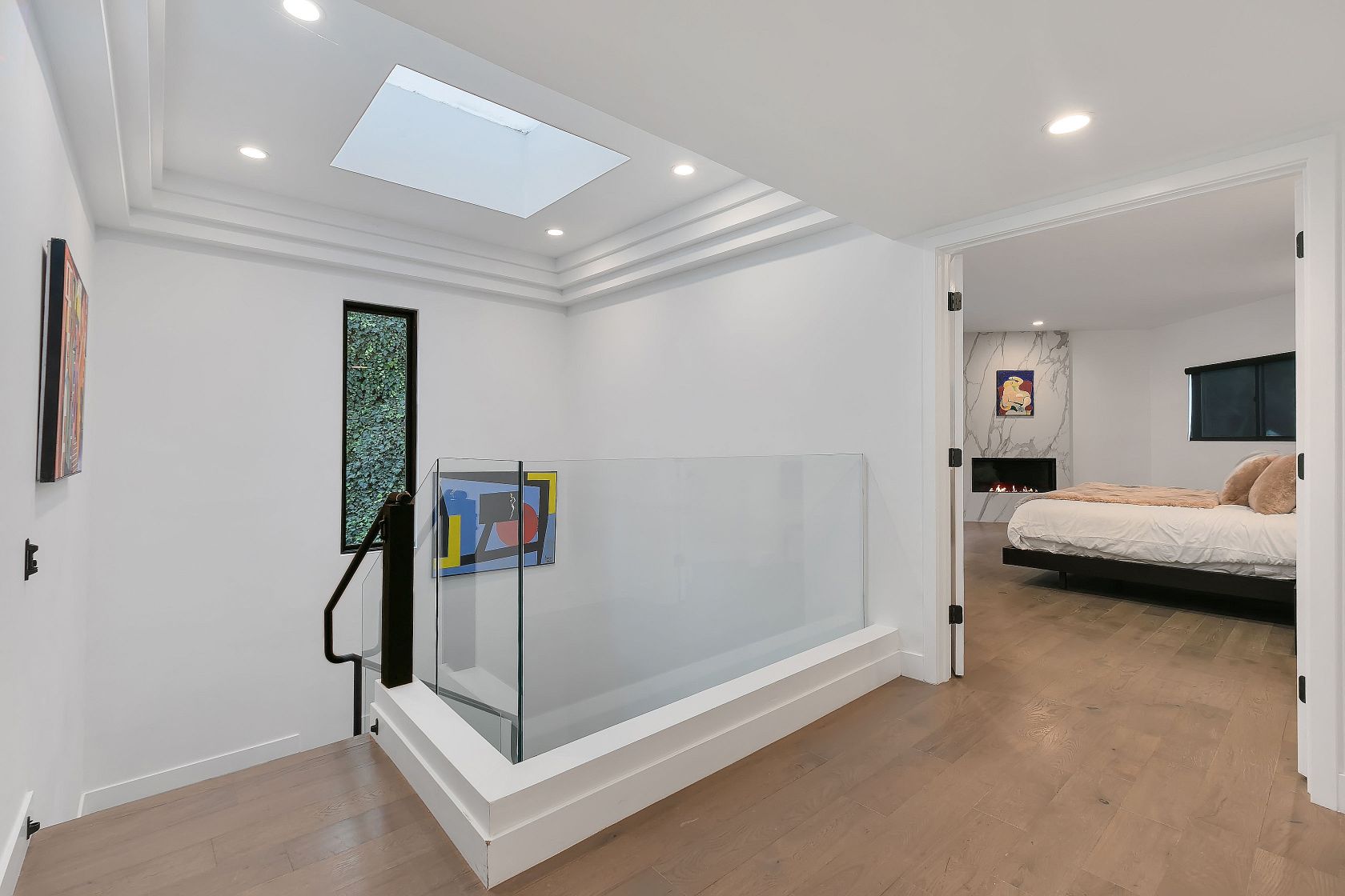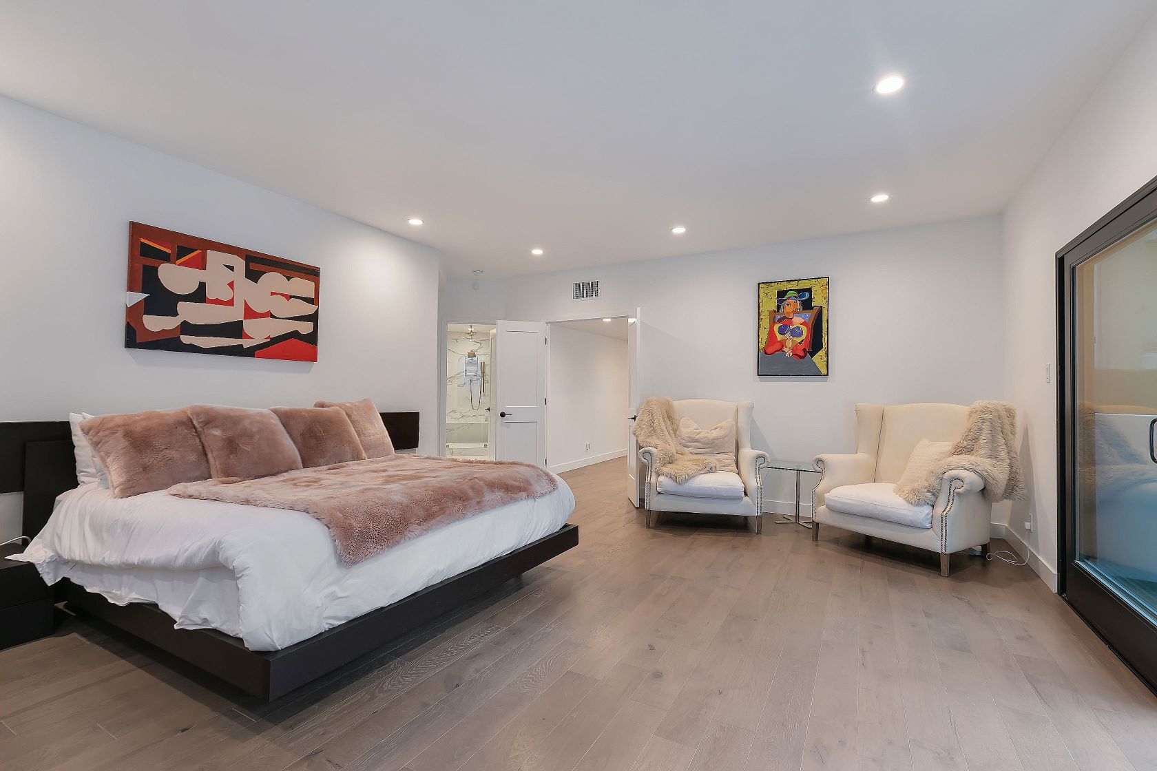Having recently undergone a complete renovation, this contemporary smart home lies minutes from Coldwater Canyon Park, the Sunset Strip, and Beverly Hills. This home offers a thoughtful floor plan, warm interiors, high ceilings, and tranquil outdoor spaces. The massive gourmet kitchen boasts a center island and countertops constructed from Italian porcelain and top of the line Subzero and Wolf appliances. Travel upstairs past the custom wine cellar to the Master suite that is complete with a fireplace, private balcony, oversized walk-in closet, dual sinks, a large tub and stone filled shower. Relax or entertain in the backyard that boasts calming water features, a fire pit and outdoor spa. Coveted Warner Ave. school district.