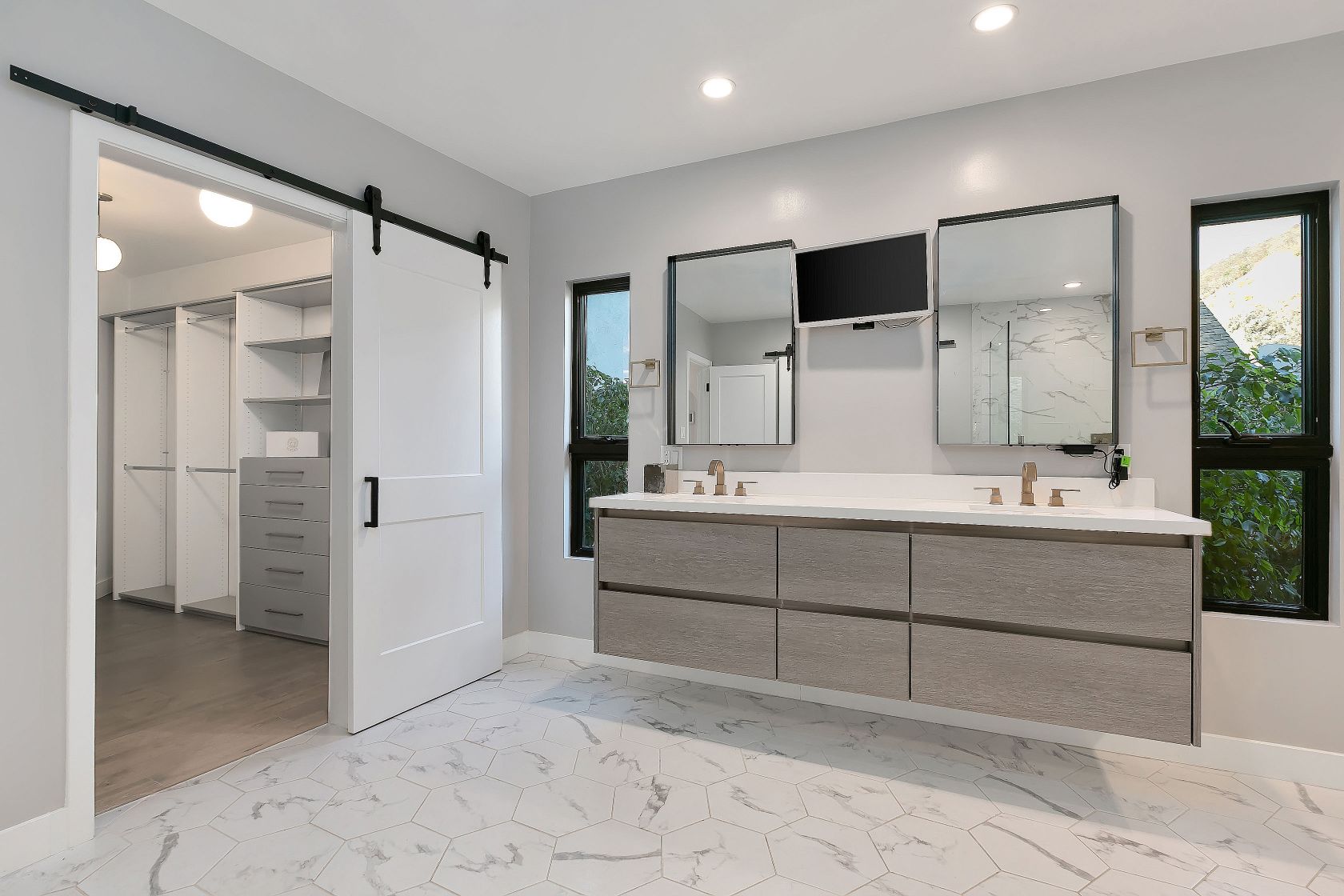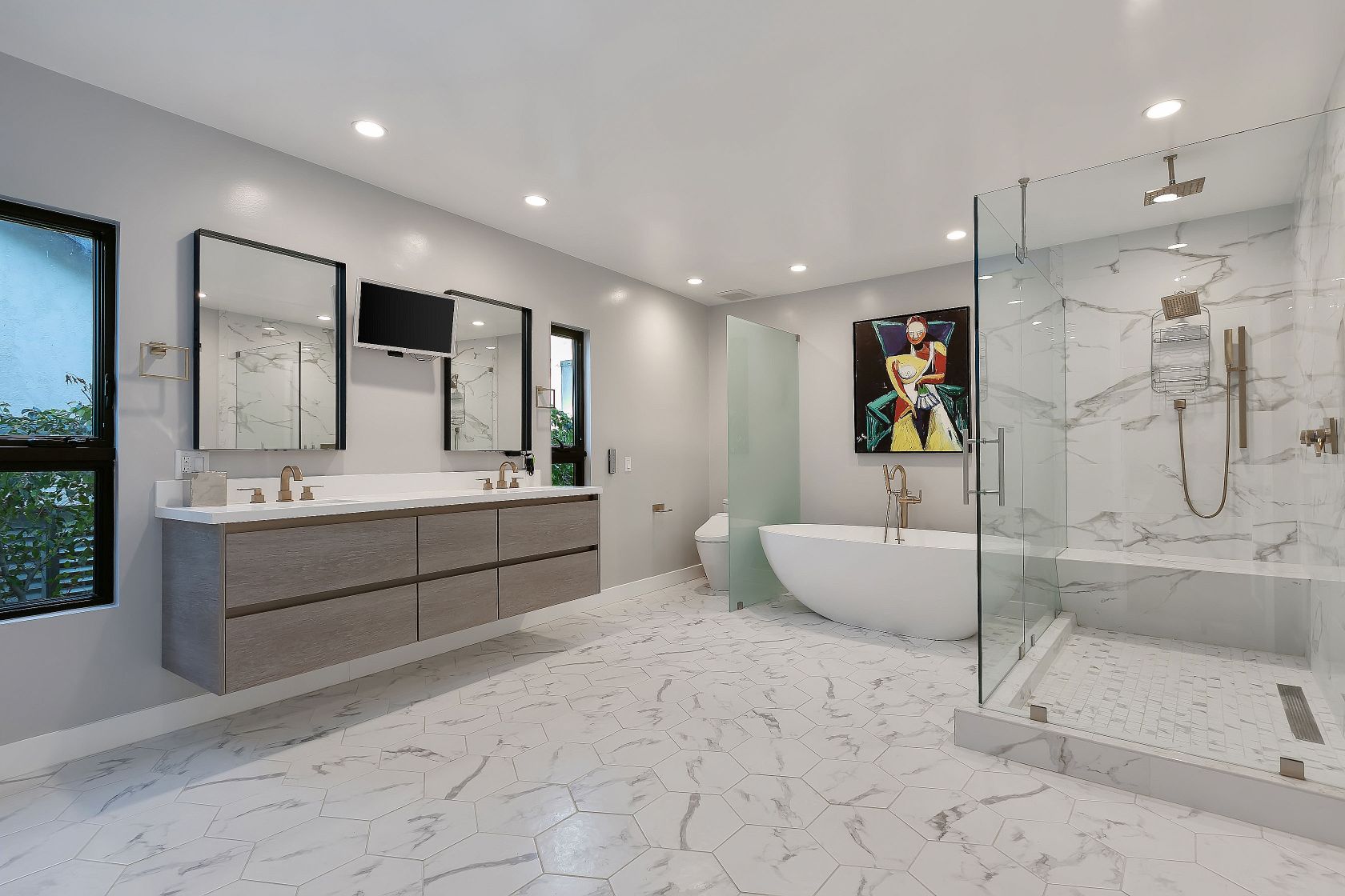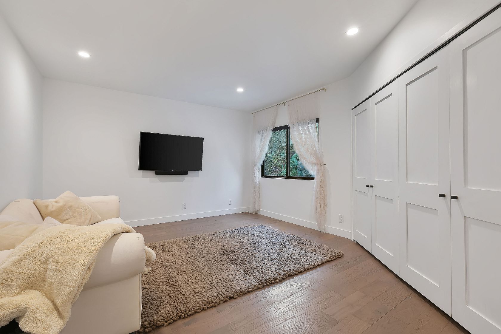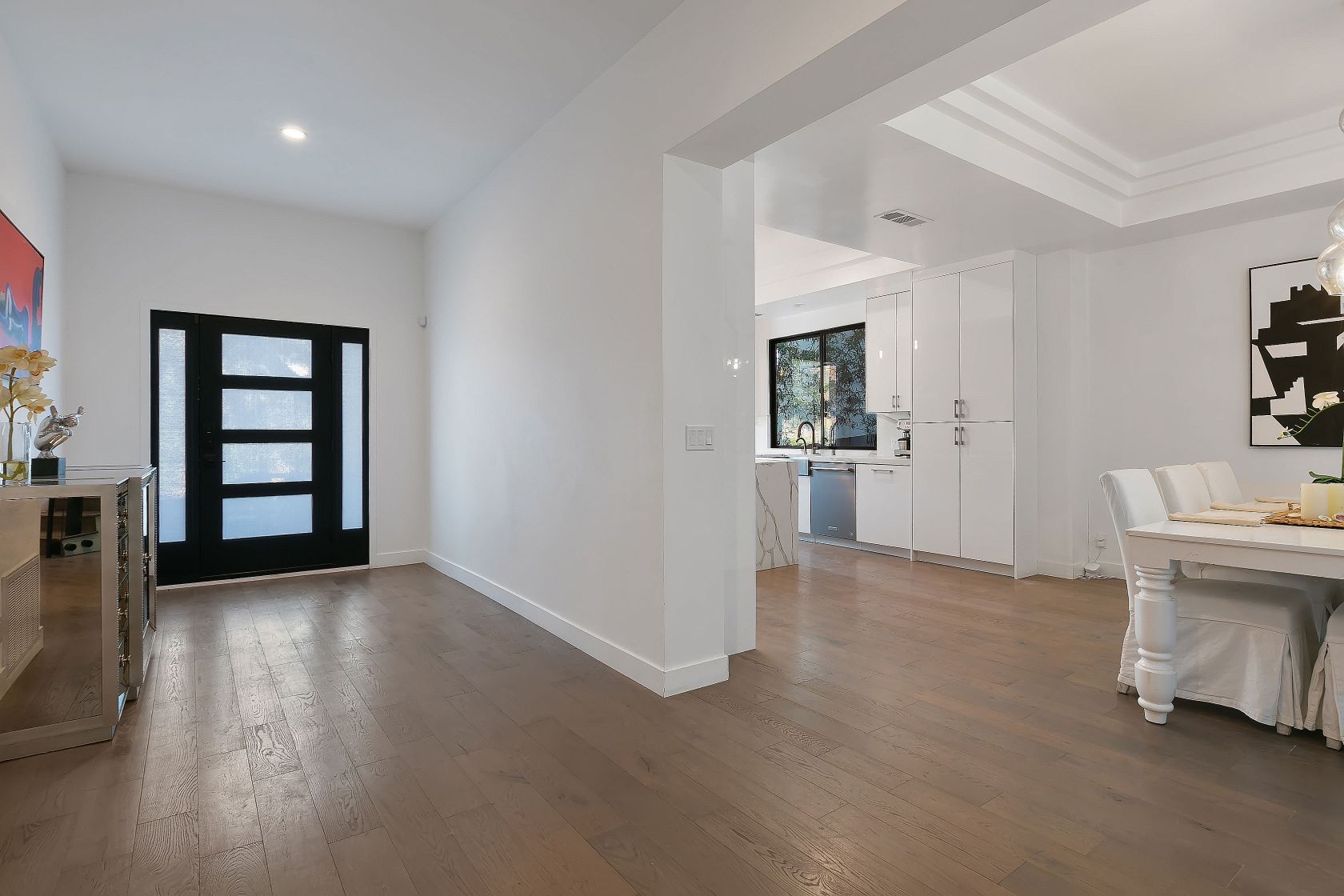 Having recently undergone a complete renovation, this contemporary smart home lies minutes from Coldwater Canyon Park, the Sunset Strip, and Beverly Hills. This home offers a thoughtful floor plan, warm interiors, high ceilings, and tranquil outdoor spaces. The massive gourmet kitchen boasts a center island and countertops constructed from Italian porcelain and top of the line Subzero and Wolf appliances. Travel upstairs past the custom wine cellar to the Master suite that is complete with a fireplace, private balcony, oversized walk-in closet, dual sinks, a large tub and stone filled shower. Relax or entertain in the backyard that boasts calming water features, a fire pit and outdoor spa. Coveted Warner Ave. school district.