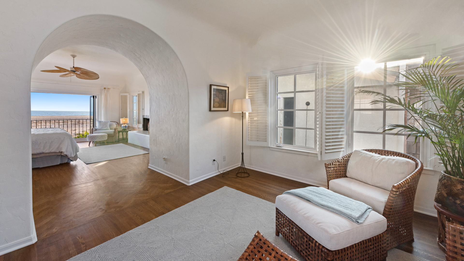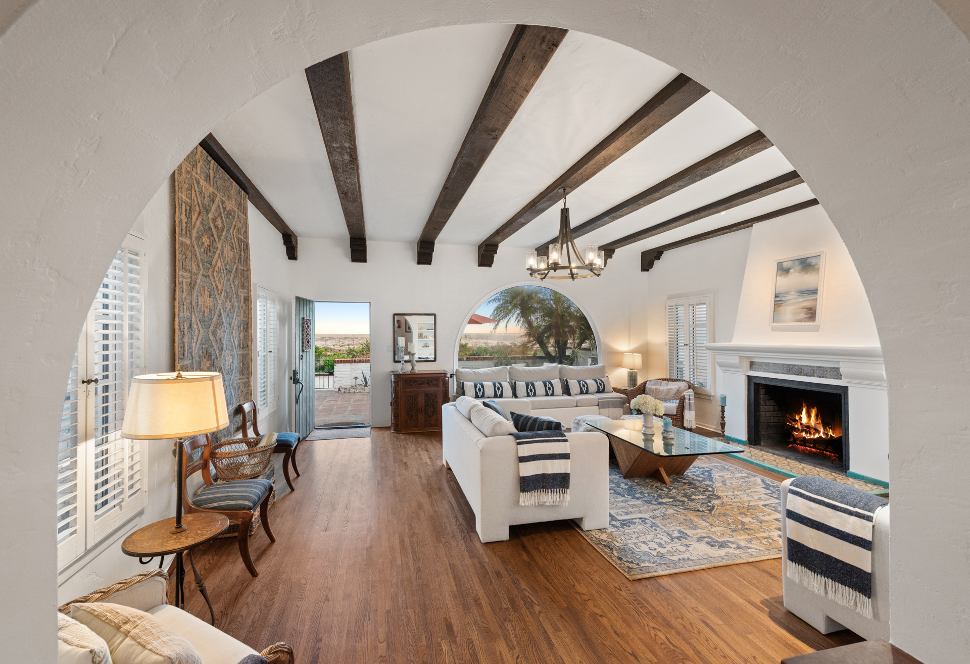Perfectly positioned within the sought-after Alphabet Streets of Balboa Peninsula, this captivating oceanfront property embodies the essence of luxurious coastal living. With its prime location near the end of the boardwalk, it offers a serene and picturesque retreat with sweeping panoramic ocean views. Originally built in 1930, this stunning Spanish-style home has been thoughtfully and recently upgraded while retaining its original charm. Upgrades include a new roof, new windows, a new heat pump and AC, fresh exterior and interior paint, and owned solar panels. As you enter through a private patio, you're greeted by a cozy living room with tall ceilings adorned with exposed wooden beams, a fireplace, and breathtaking views of the dunes and ocean. The primary suite serves as a personal retreat, featuring a secluded sitting room, a newly remodeled en-suite bathroom, and a private balcony all with ocean views. Notable features include stainless steel appliances in the kitchen, hand-painted tiles, a two-car garage, and charming Spanish aesthetics throughout. Experience the epitome of coastal living with close proximity to world-class dining, shopping, the renowned Wedge surf spot, and John Wayne Airport. 1305 E Balboa is not just a residence; it's a lifestyle.