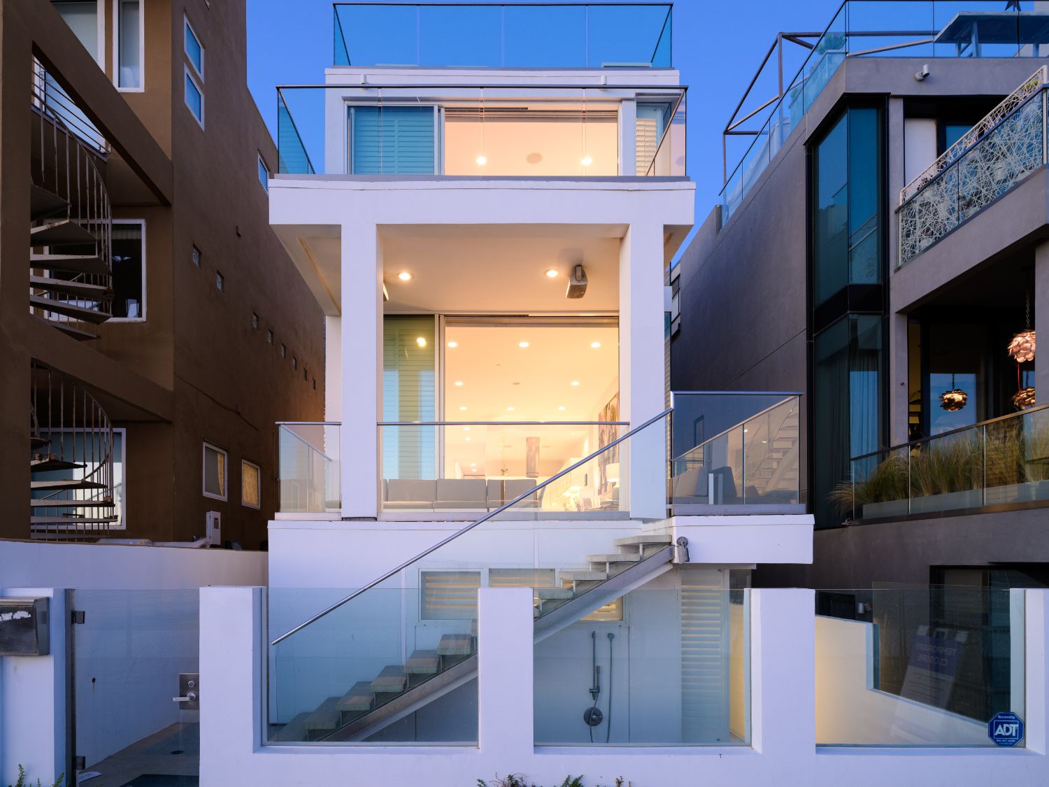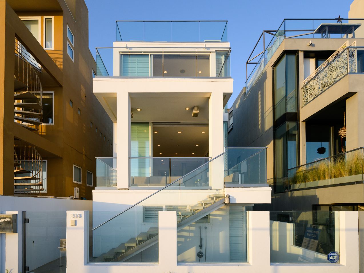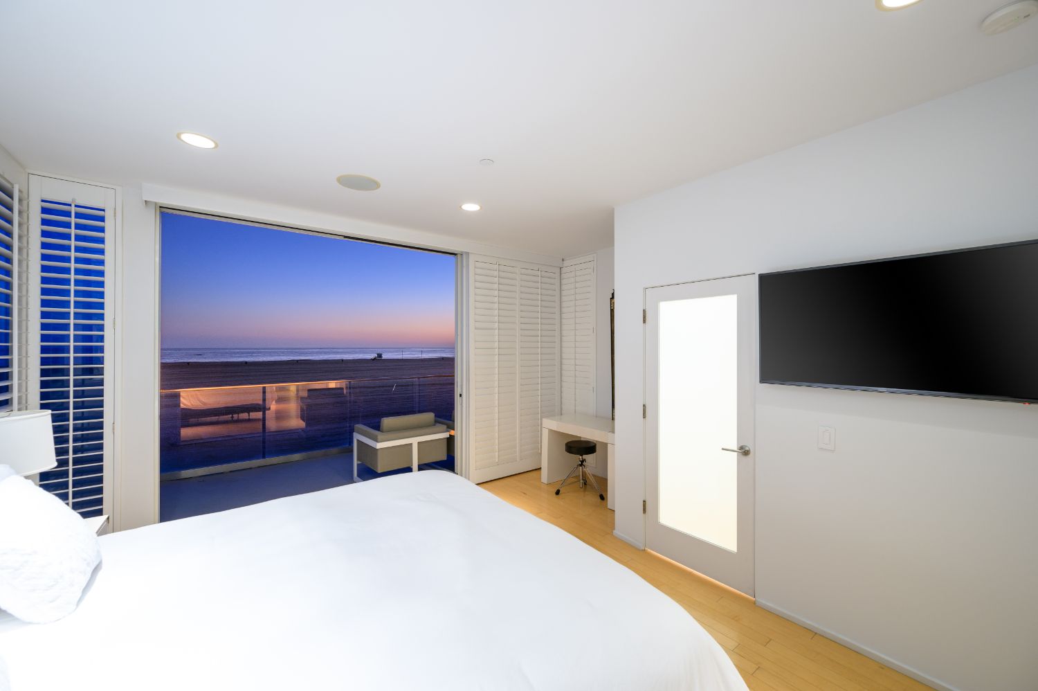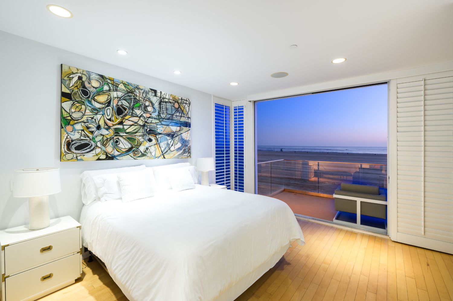 Rare architectural masterpiece situated perfectly on the sand of the Santa Monica Gold Coast coastline. Encompassing 3,363 sf, 5 bedrooms and 5 bathrooms the home displays 180 degree sweeping ocean and coastline views that include sand, surf, boardwalk, the famed Santa Monica Pier and Ferris wheel, and Catalina Island. The high-end design throughout includes walls of glass, a floating staircase and a glass elevator. The gourmet kitchen features top of the line appliances and all bathrooms feature Hansgrohe Axor Stark fixtures. The multiple decks, amazing roof-top patio and nearly all rooms have panoramic views capturing world class sunsets each evening. This is the perfect home for an entertainer as well as someone seeking a private escape. Top of the line technology and security systems secure the beachfront home. 1333 Palisades Beach Rd is in an unmatched location with immediate access to Ocean Avenue, Third Street Promenade, Santa Monica Place, Farmers market, movie theaters & more.