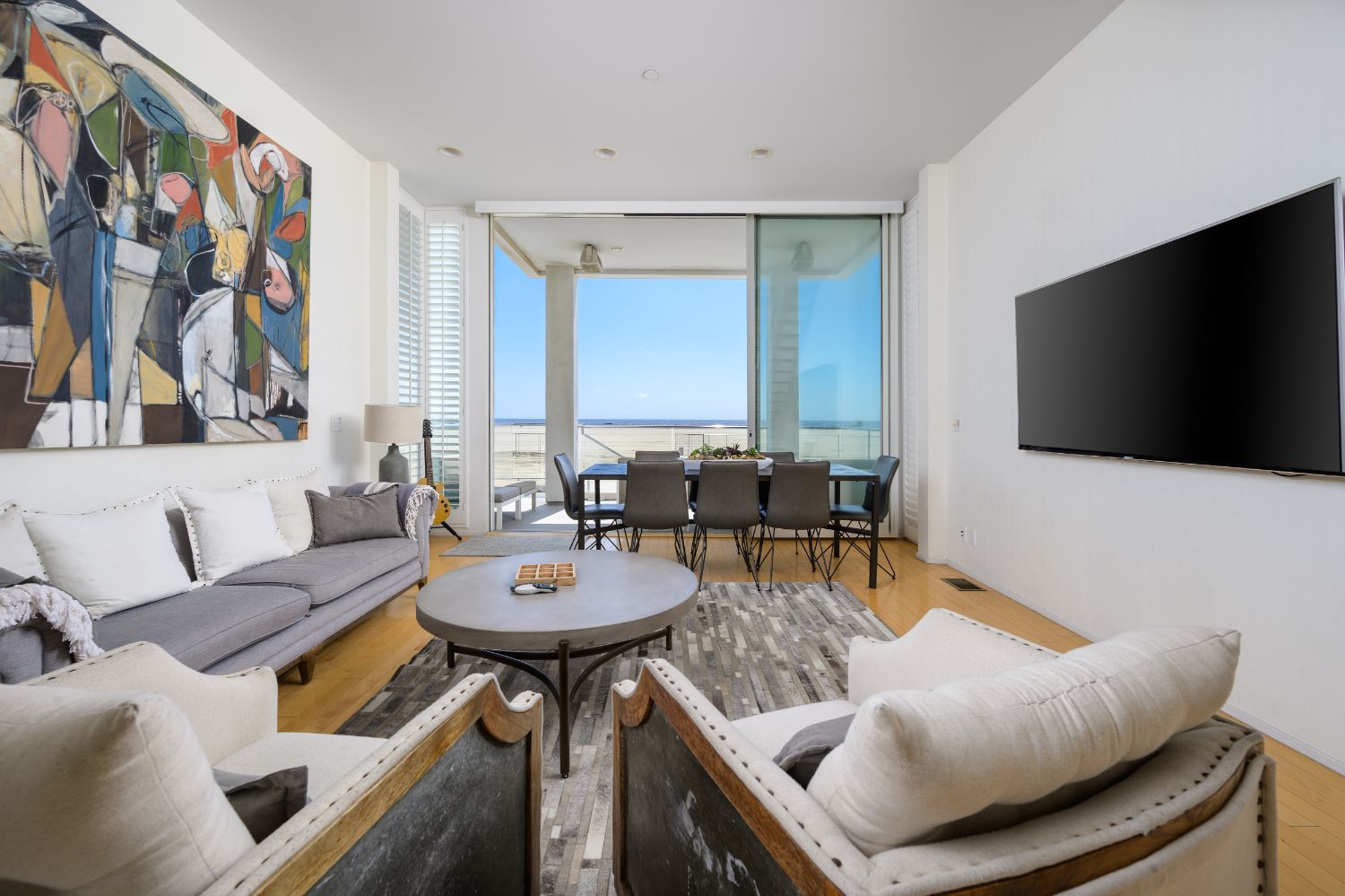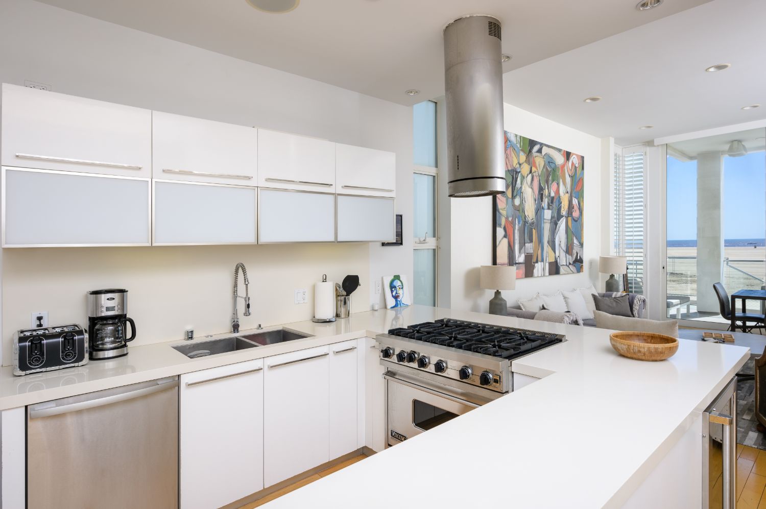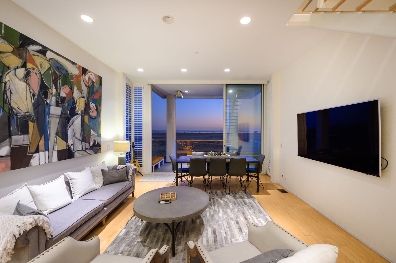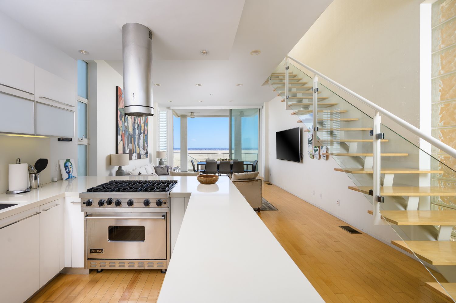 Rare architectural masterpiece situated perfectly on the sand of the Santa Monica Gold Coast coastline. Encompassing 3,363 sf, 5 bedrooms and 5 bathrooms the home displays 180 degree sweeping ocean and coastline views that include sand, surf, boardwalk, the famed Santa Monica Pier and Ferris wheel, and Catalina Island. The high-end design throughout includes walls of glass, a floating staircase and a glass elevator. The gourmet kitchen features top of the line appliances and all bathrooms feature Hansgrohe Axor Stark fixtures. The multiple decks, amazing roof-top patio and nearly all rooms have panoramic views capturing world class sunsets each evening. This is the perfect home for an entertainer as well as someone seeking a private escape. Top of the line technology and security systems secure the beachfront home. 1333 Palisades Beach Rd is in an unmatched location with immediate access to Ocean Avenue, Third Street Promenade, Santa Monica Place, Farmers market, movie theaters & more.