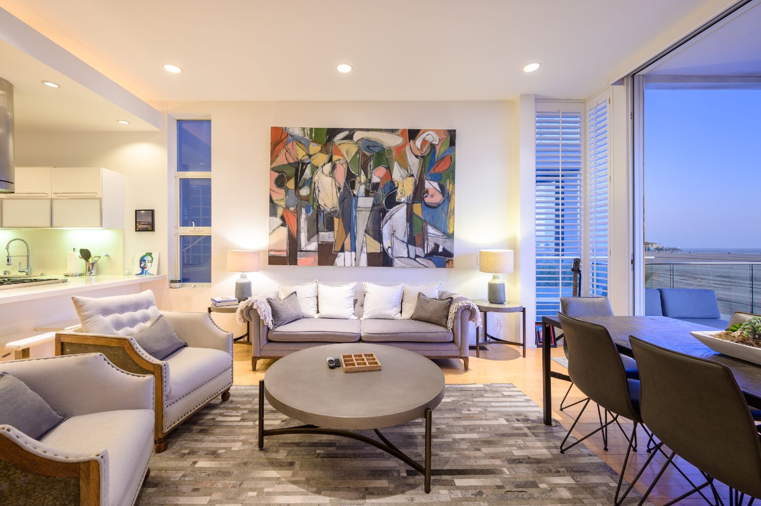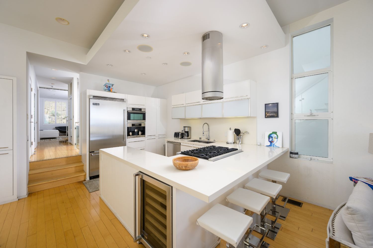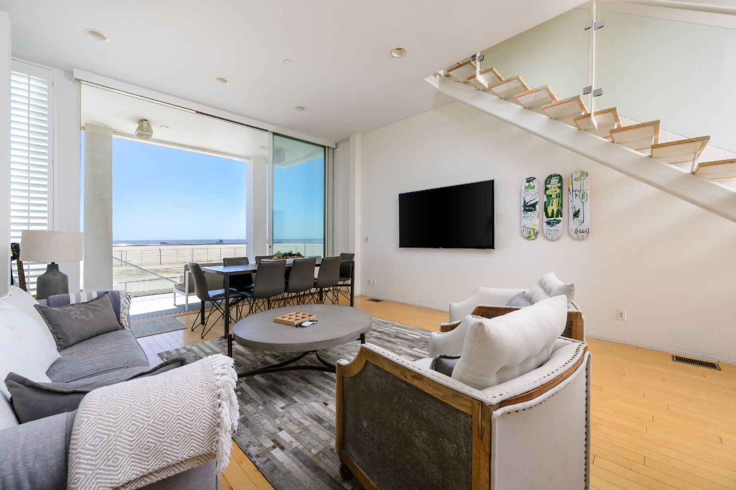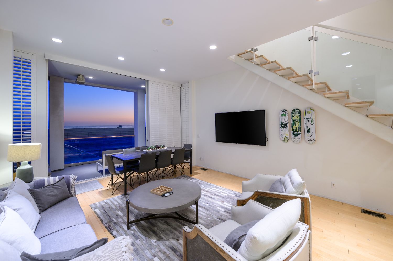 Rare architectural masterpiece situated perfectly on the sand of the Santa Monica Gold Coast coastline. Encompassing 3,363 sf, 5 bedrooms and 5 bathrooms the home displays 180 degree sweeping ocean and coastline views that include sand, surf, boardwalk, the famed Santa Monica Pier and Ferris wheel, and Catalina Island. The high-end design throughout includes walls of glass, a floating staircase and a glass elevator. The gourmet kitchen features top of the line appliances and all bathrooms feature Hansgrohe Axor Stark fixtures. The multiple decks, amazing roof-top patio and nearly all rooms have panoramic views capturing world class sunsets each evening. This is the perfect home for an entertainer as well as someone seeking a private escape. Top of the line technology and security systems secure the beachfront home. 1333 Palisades Beach Rd is in an unmatched location with immediate access to Ocean Avenue, Third Street Promenade, Santa Monica Place, Farmers market, movie theaters & more.