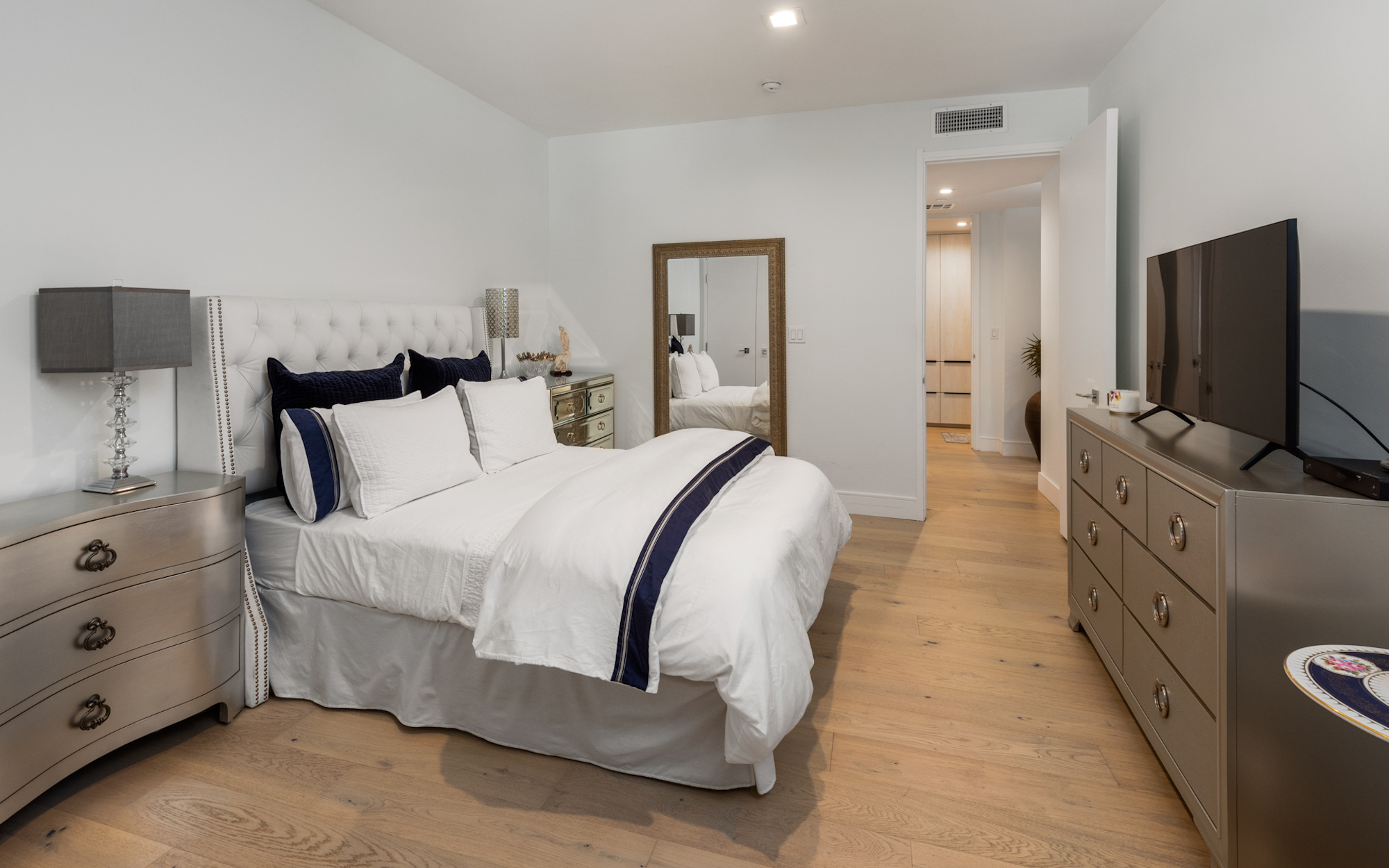 Completely renovated and designed 3 bed/3 bath luxury residence by Dream Design LLC in the heart of Beverly Hills! Walking distance to the best shopping, dining, entertainment, the world renowned 'Two Rodeo' shopping district, and the most desirable schools. This absolutely turnkey home features custom cabinetry in the kitchen, bathrooms and closets, high end finishes, Italian porcelain counter tops, infinity hand made kitchen sink, Bosch appliances, white oak herringbone hardwood floors, and designer wallpaper from exotic cork to linen wall coverings. The oversized primary suite, with its own private balcony, includes multiple walk-in closets, a spa-like luxuriously-appointed bathroom with double vanities, massive shower and soaking tub. Offering 2 side by side large parking spaces, plentiful guest parking and large private storage room with direct access to the lobby and on-site concierge, this is truly the perfect place to call home!